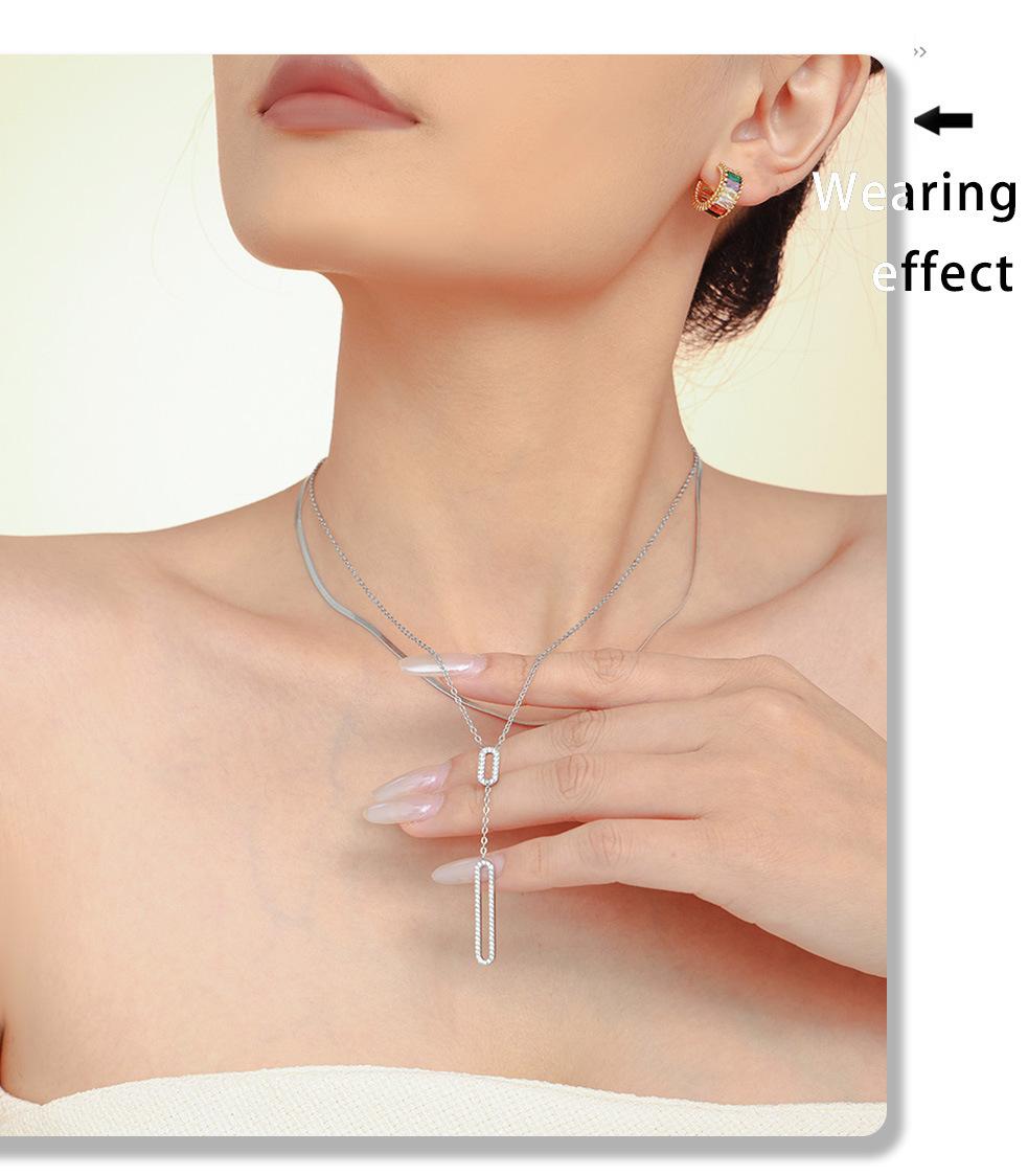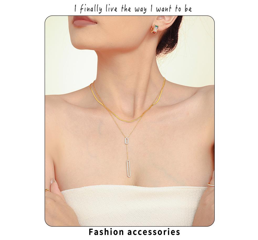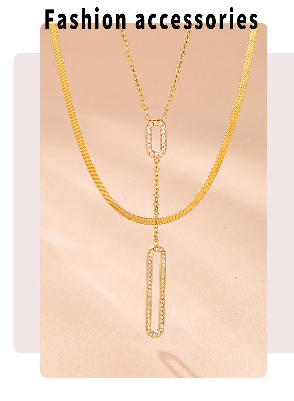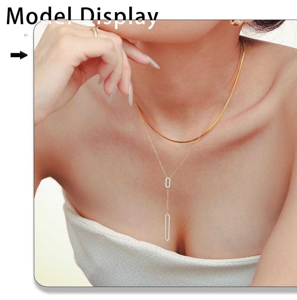 Collar de doble clavícula con circonita hueca rectangular europea y americana de Sugar Cross-border, joyería de acero de titanio chapada en oro de 18 quilates en stock