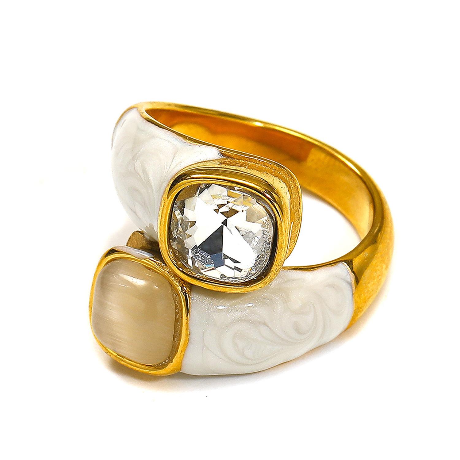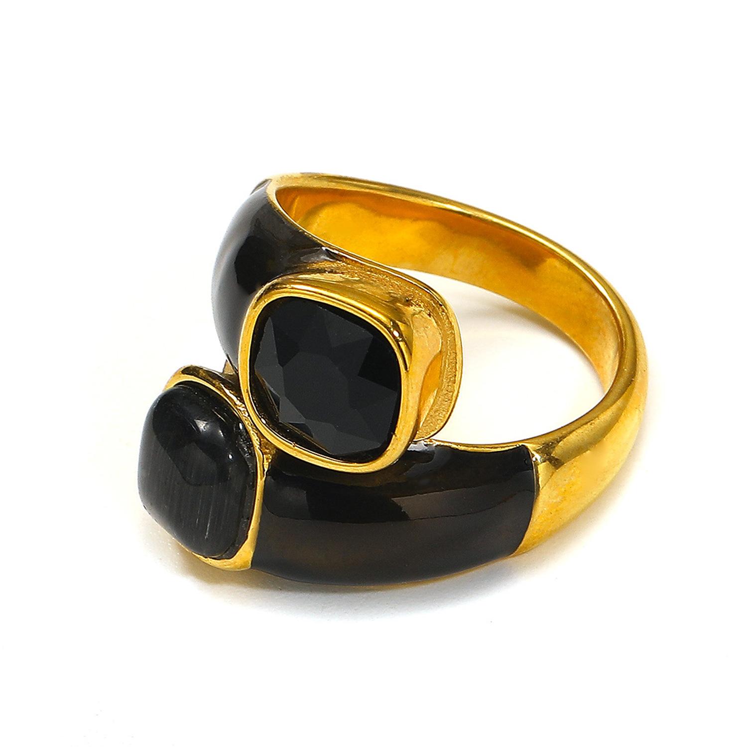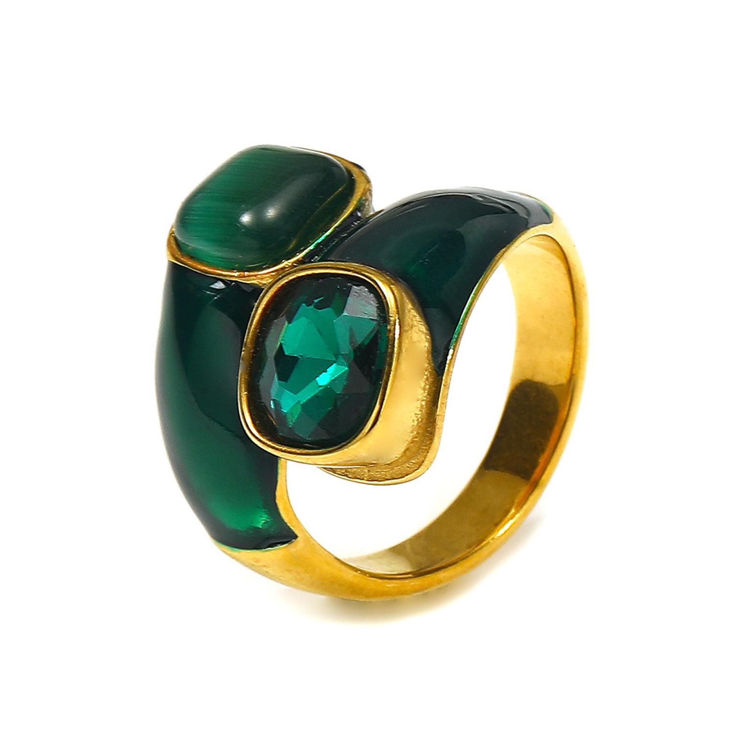 Compra Nuevo anillo escalonado con incrustaciones de diamantes de lujo ligero transfronterizo para mujer, anillo de dedo de acero de titanio de oro de 18 quilates con gotas de aceite de alta calidad con inserciones europeas y americanas. al por mayor en Joom.pro