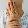 Nuevo anillo escalonado con incrustaciones de diamantes de lujo ligero transfronterizo para mujer, anillo de dedo de acero de titanio de oro de 18 quilates con gotas de aceite de alta calidad con inserciones europeas y americanas.