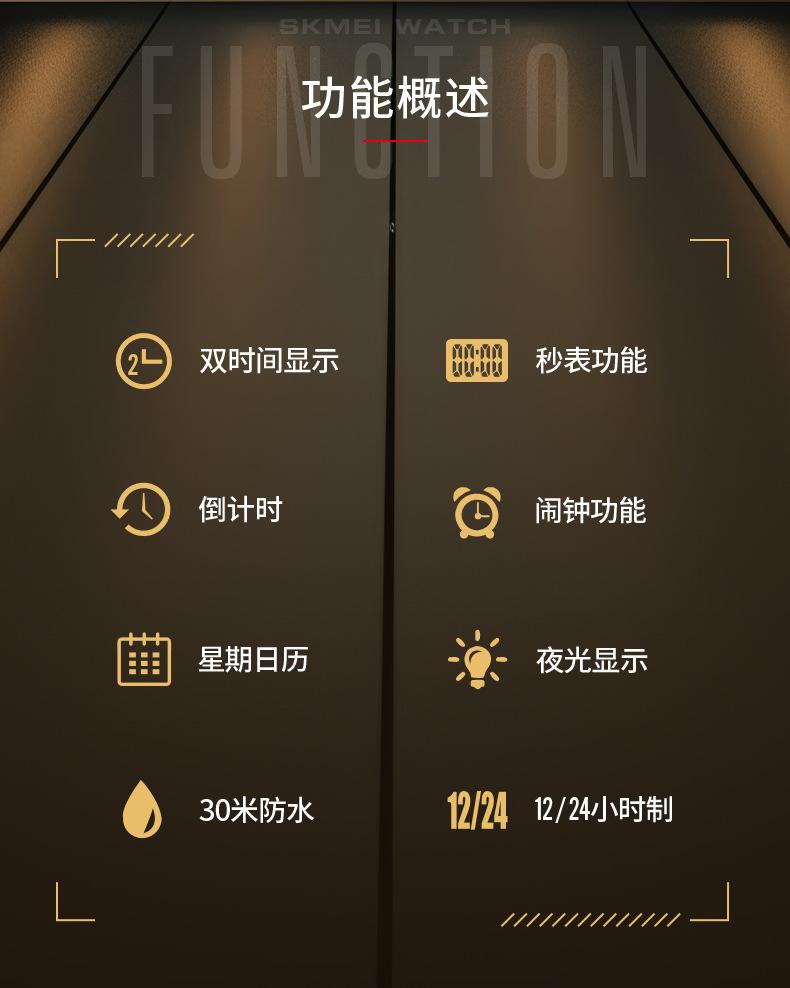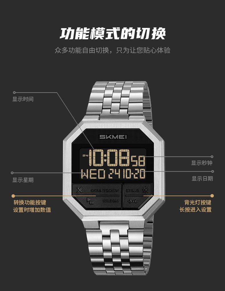 2 time, stopwatch timing, el luminous, date display, alarm clock, day of the week display, hourly time, 12/24 ...