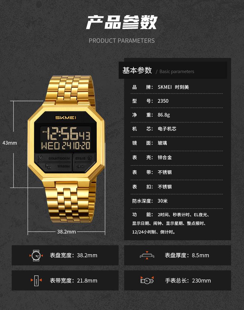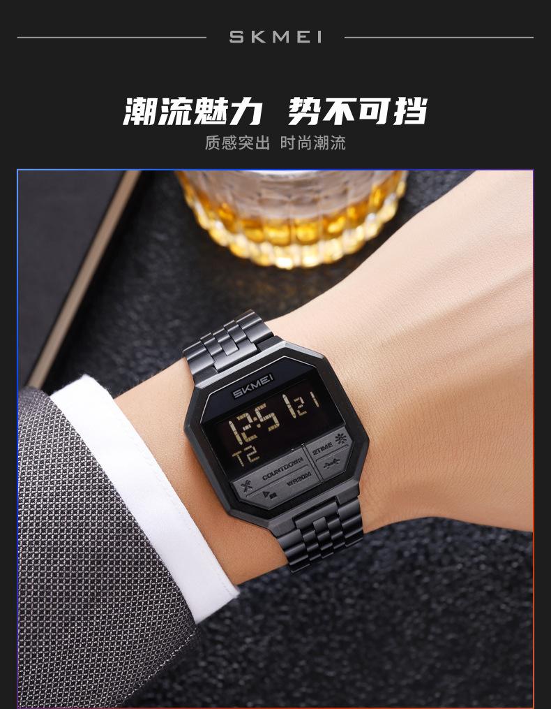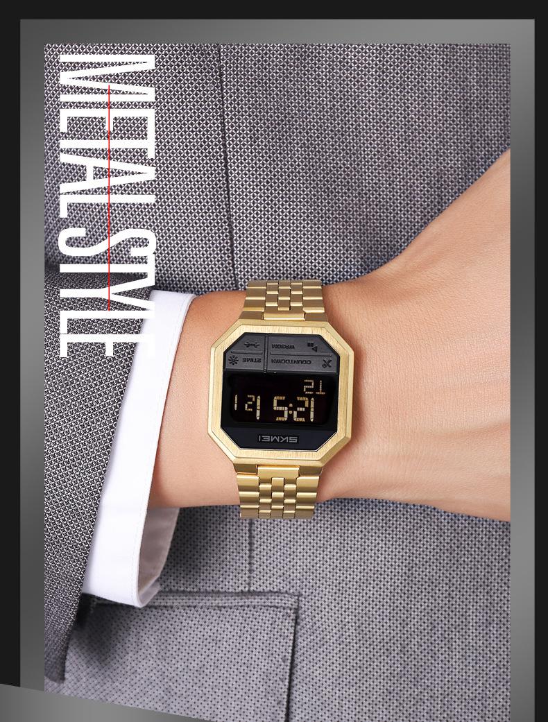 Reloj electrónico deportivo resistente al agua con tira de acero transfronteriza de metal de comercio exterior al por mayor de EE. UU.