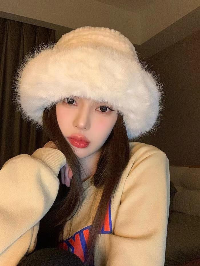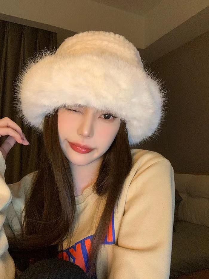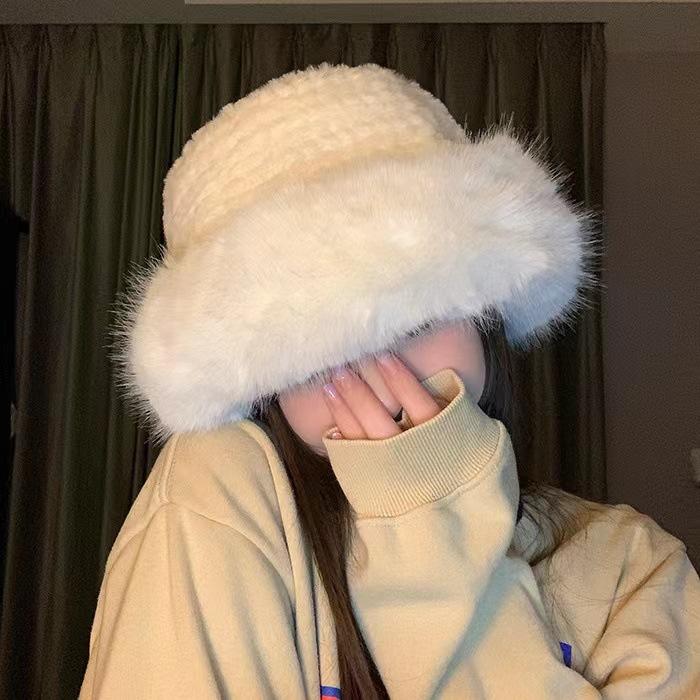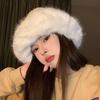 Sombrero de pescador de ala ancha de felpa nuevo de Otoño e Invierno con atmósfera de alta gama hace que la cara se vea pequeña con forro polar grueso cálido combinable Moda