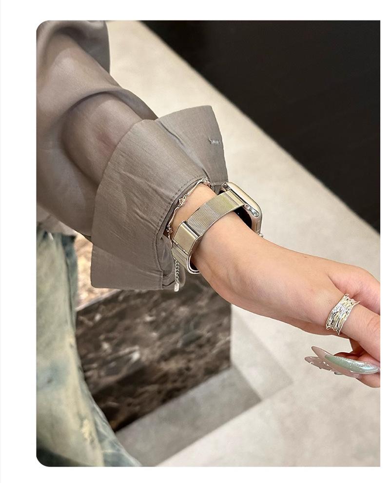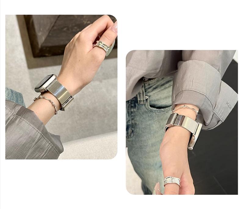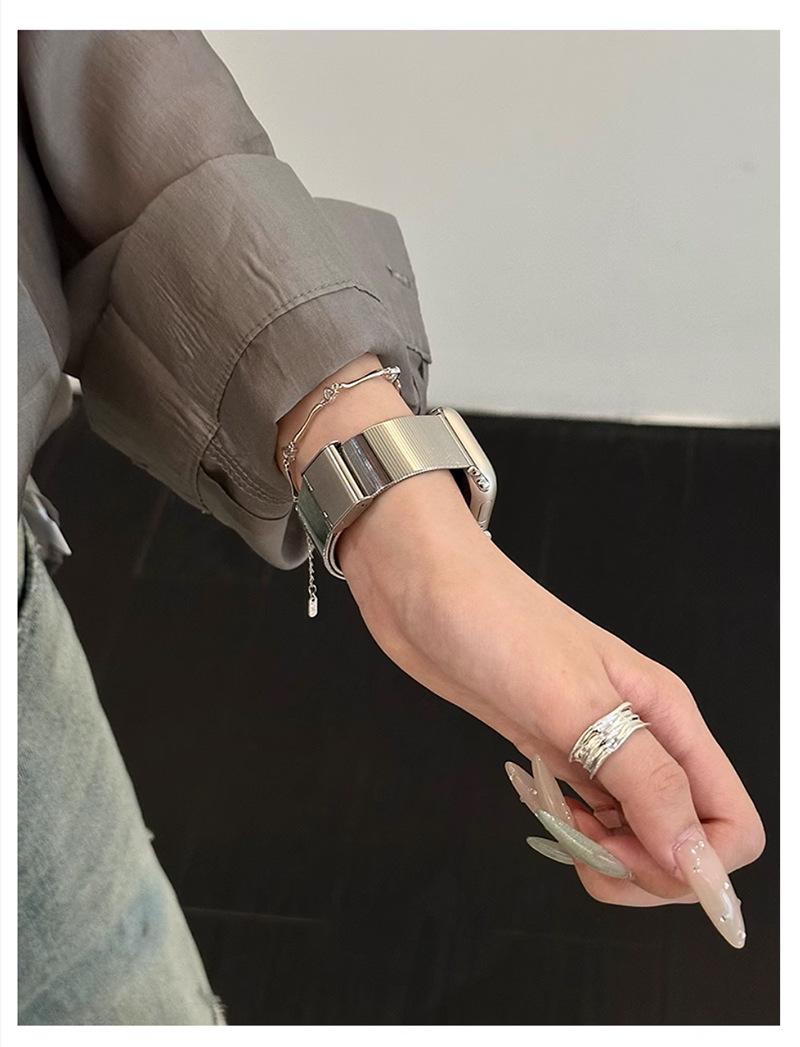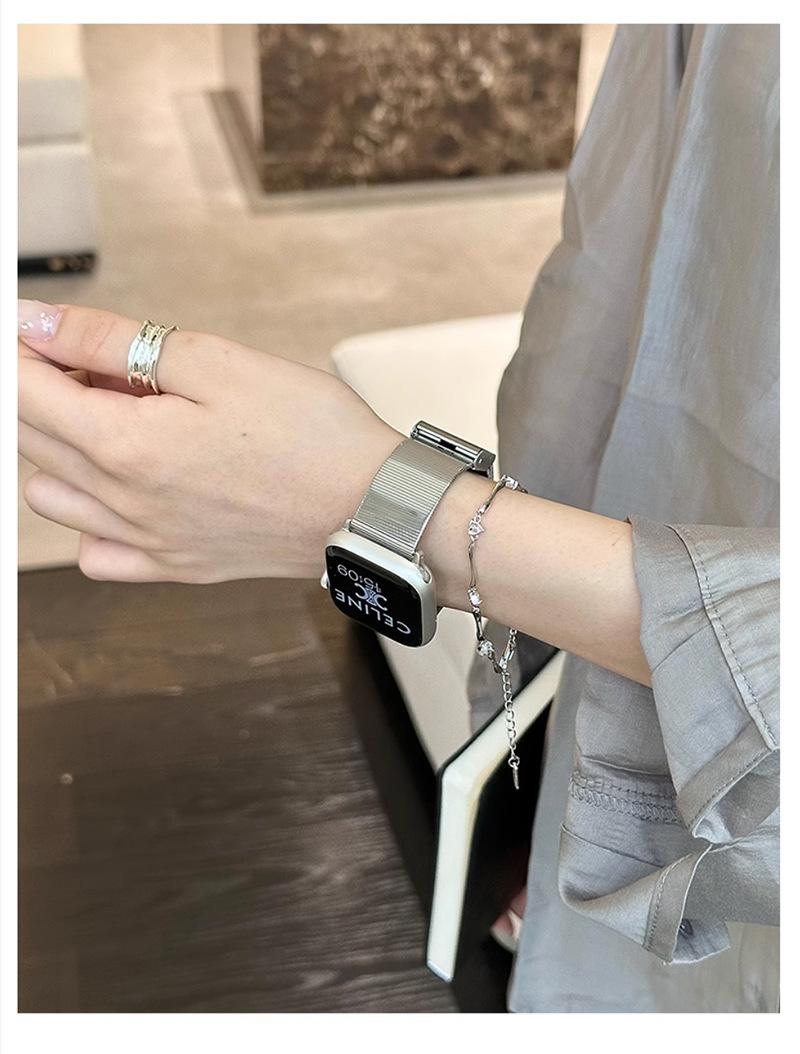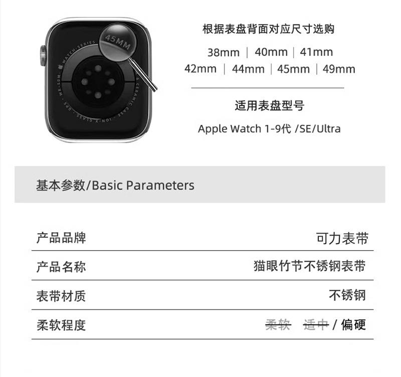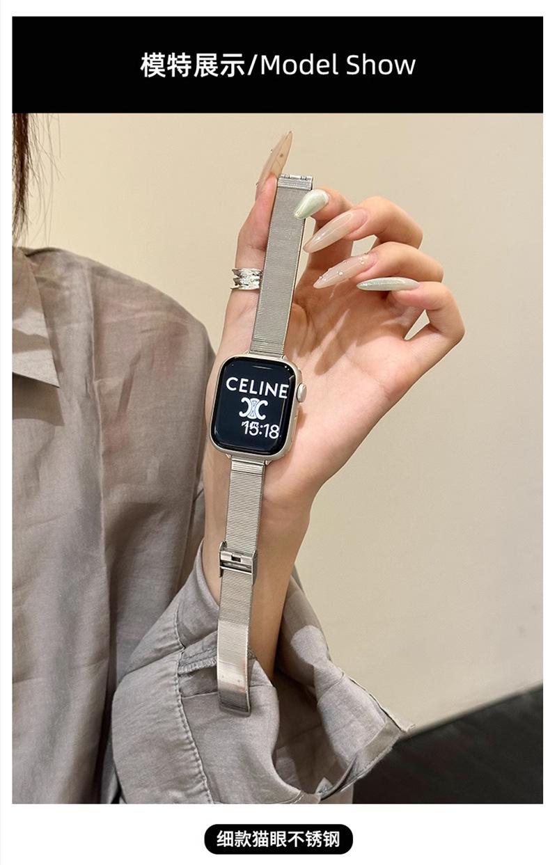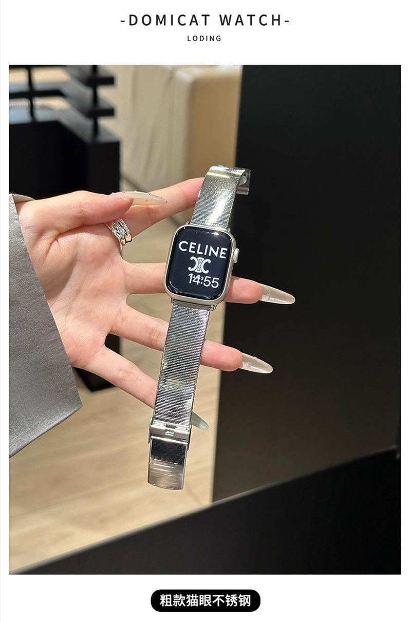 Correa de Reloj de Acero Inoxidable Transfronteriza Nueva de 25 Años Adecuada para Applewatch10 Apple Iwatch9 Correa de Reloj de Acero Ojo de Gato