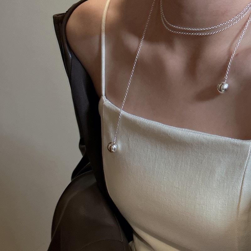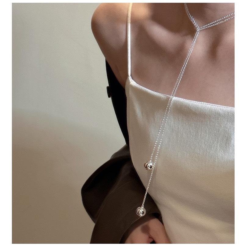Cadena suéter de bola de plata esterlina S925 estilo blogger ins japonés y coreano diseño nicho múltiples formas de uso collar largo de otoño e invierno