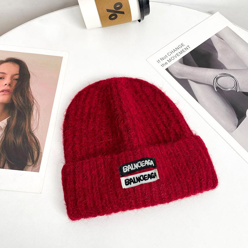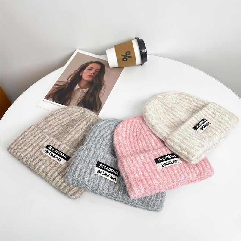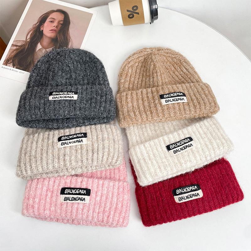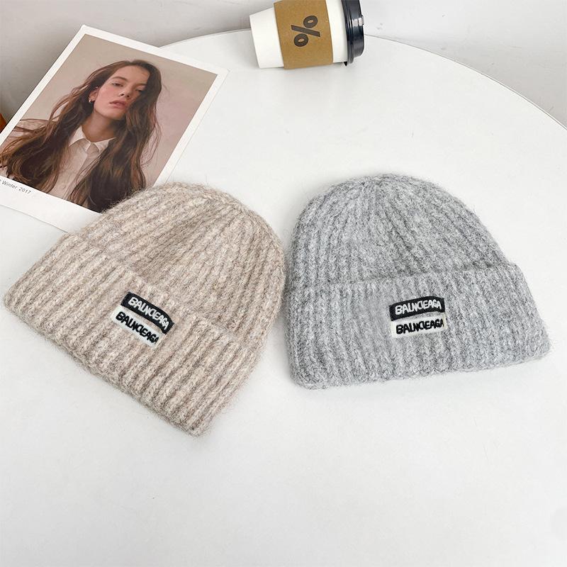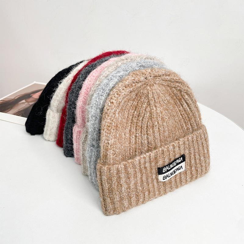 A- 598 beige thick cloth label knit cap, A- 598 coffee thickened color cloth label knitted hat, A- 598 dark gr...