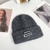 Gorro de punto con etiqueta de tela sencilla para mujer, cálido, con protección para los oídos, para otoño e invierno, para montar a caballo, estilo europeo y americano, para deportes al aire libre, de lana, para hombre.