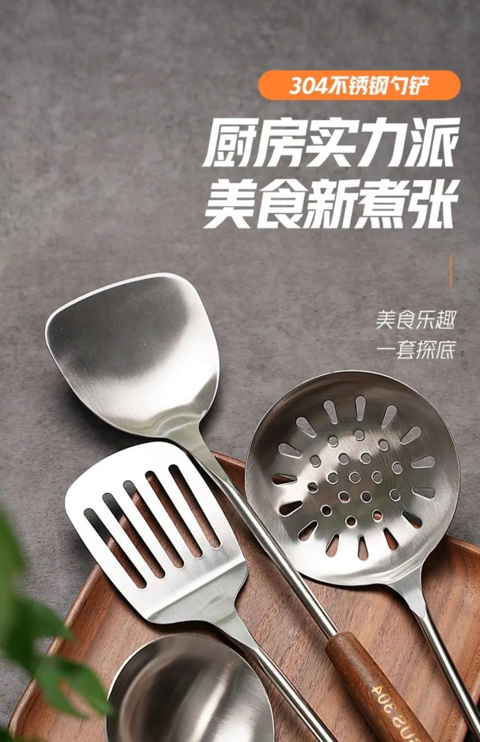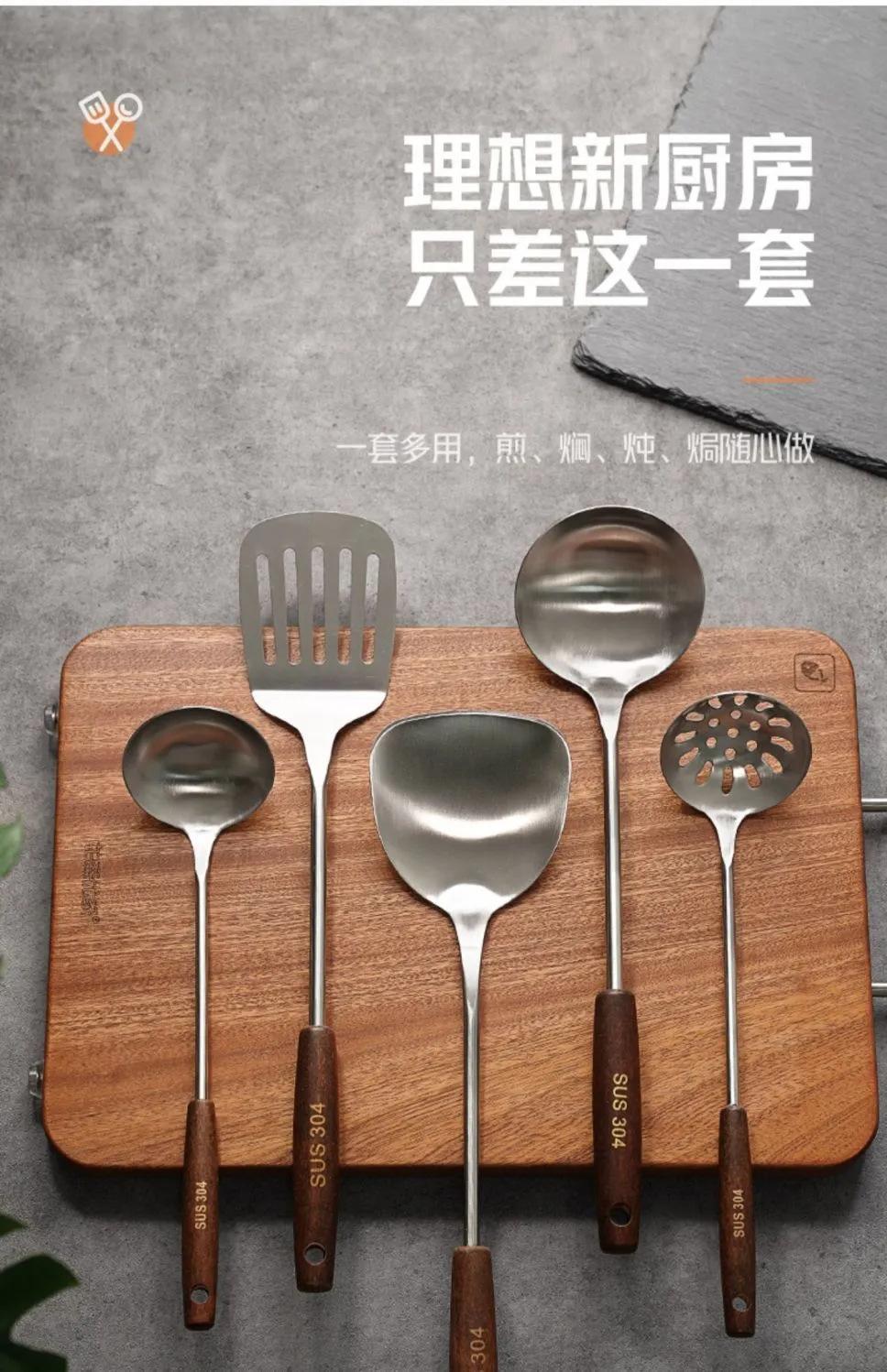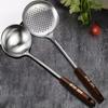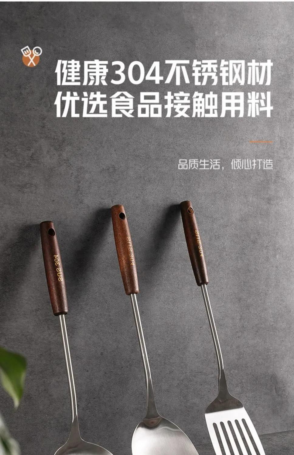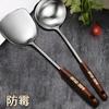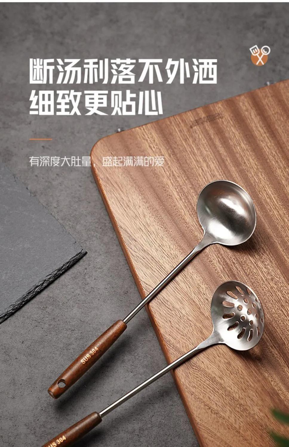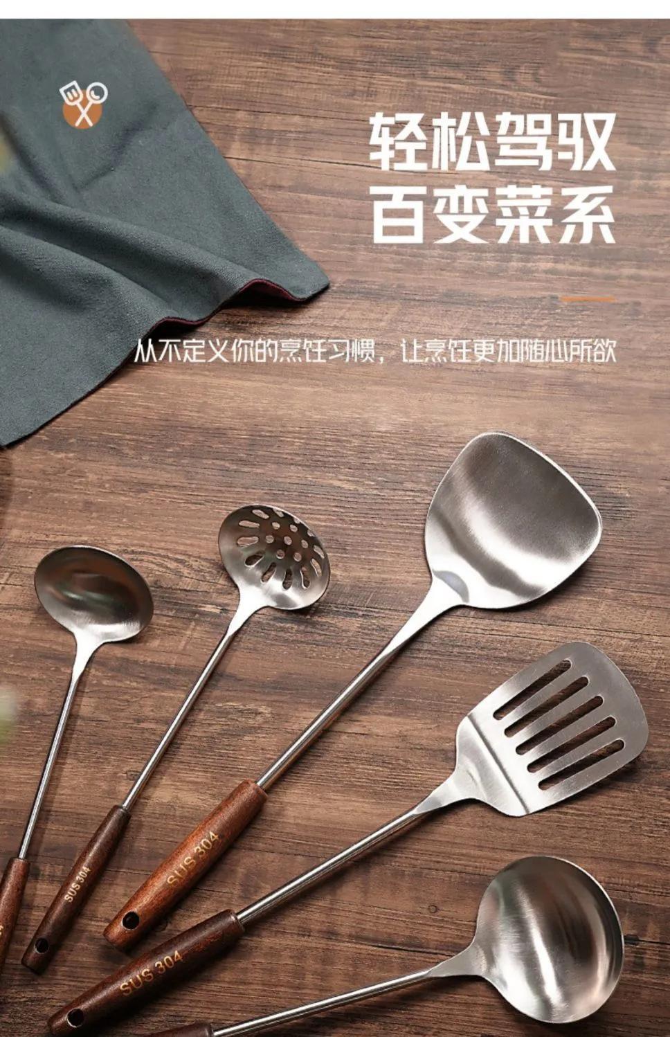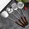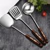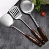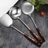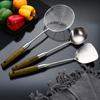Espátula de acero inoxidable 304, pala para saltear, cuchara sopera con mango de madera vintage, colador, aislamiento térmico, pala doméstica, cuchara, traje