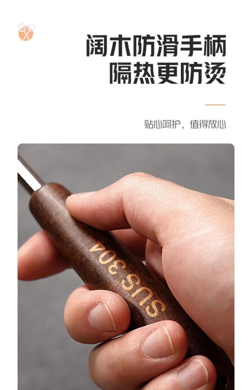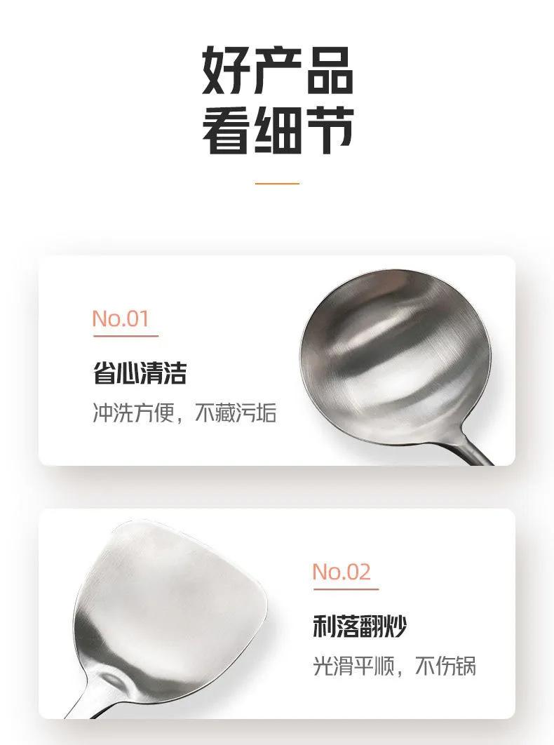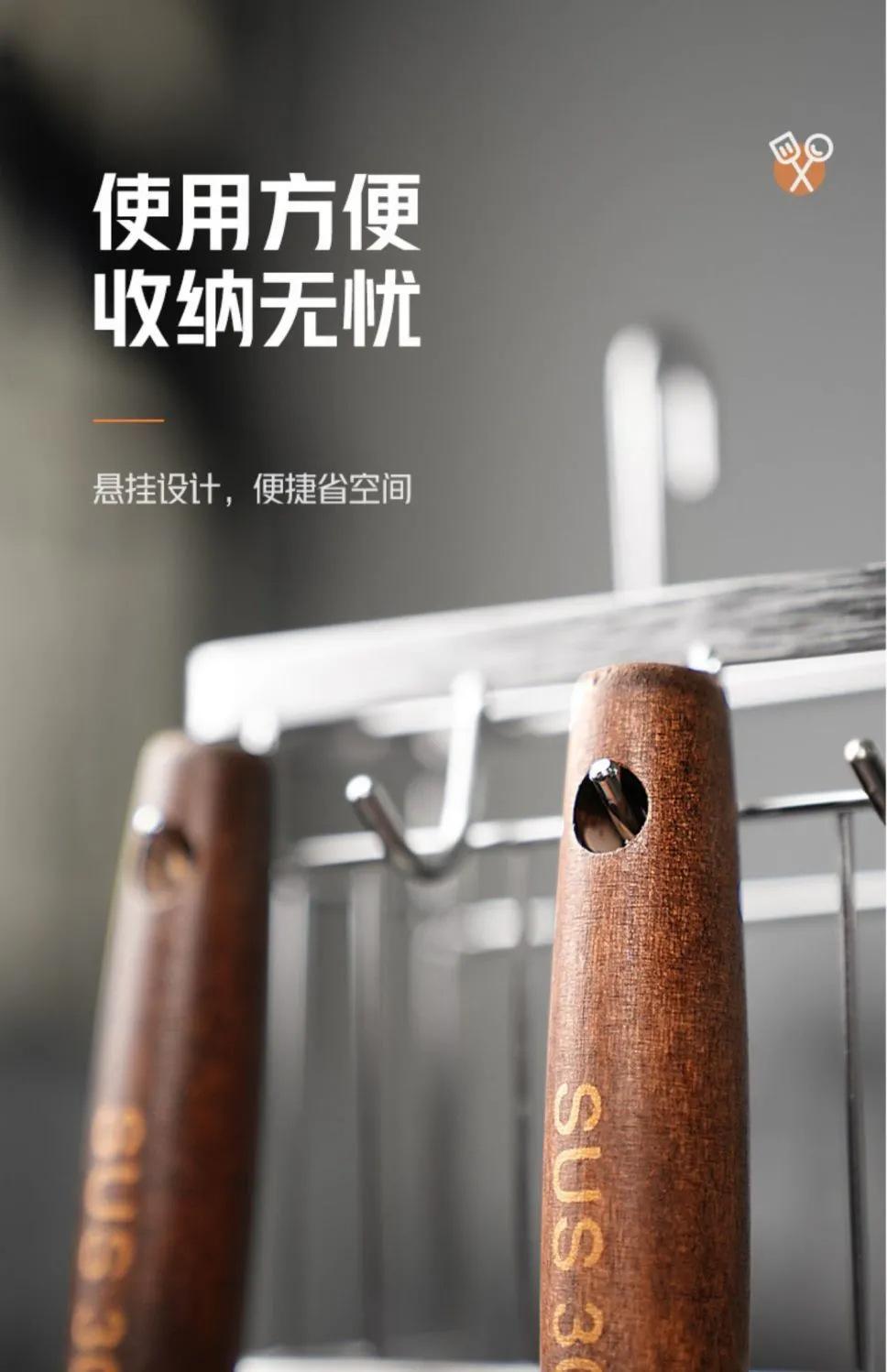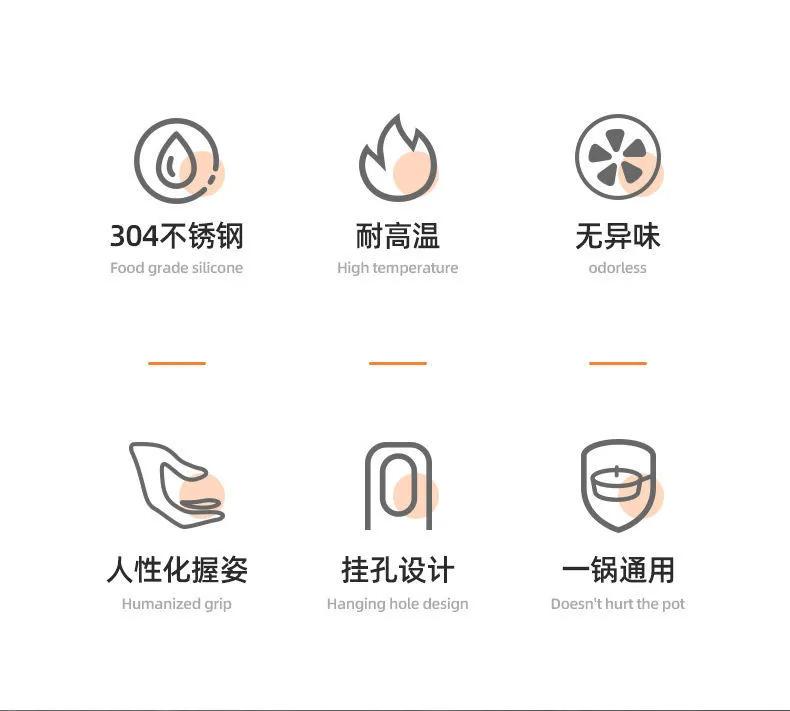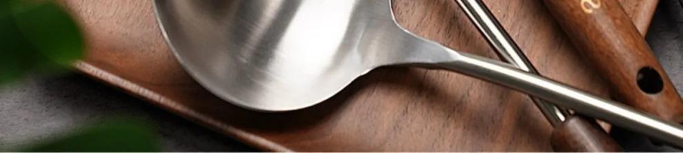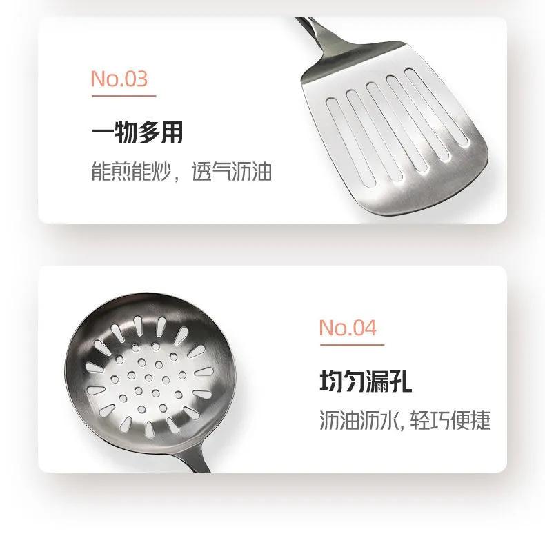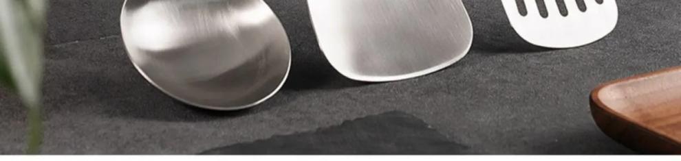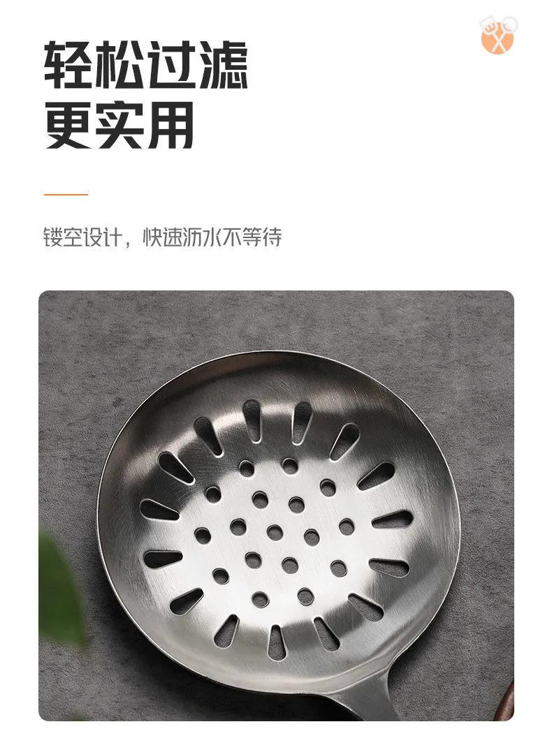 Espátula de acero inoxidable 304, pala para saltear, cuchara sopera con mango de madera vintage, colador, aislamiento térmico, pala doméstica, cuchara, traje
