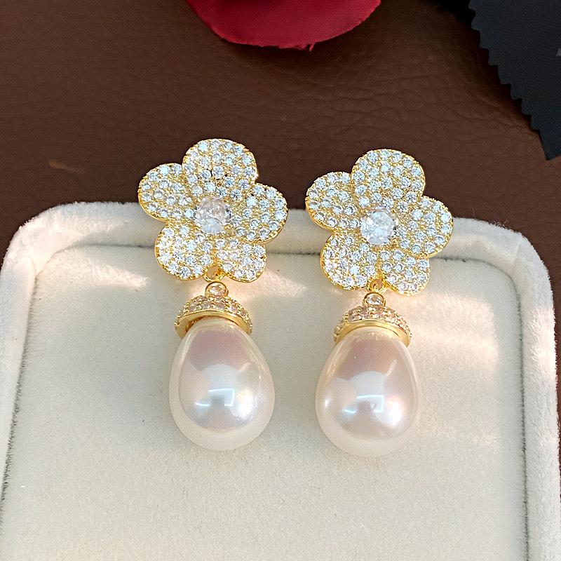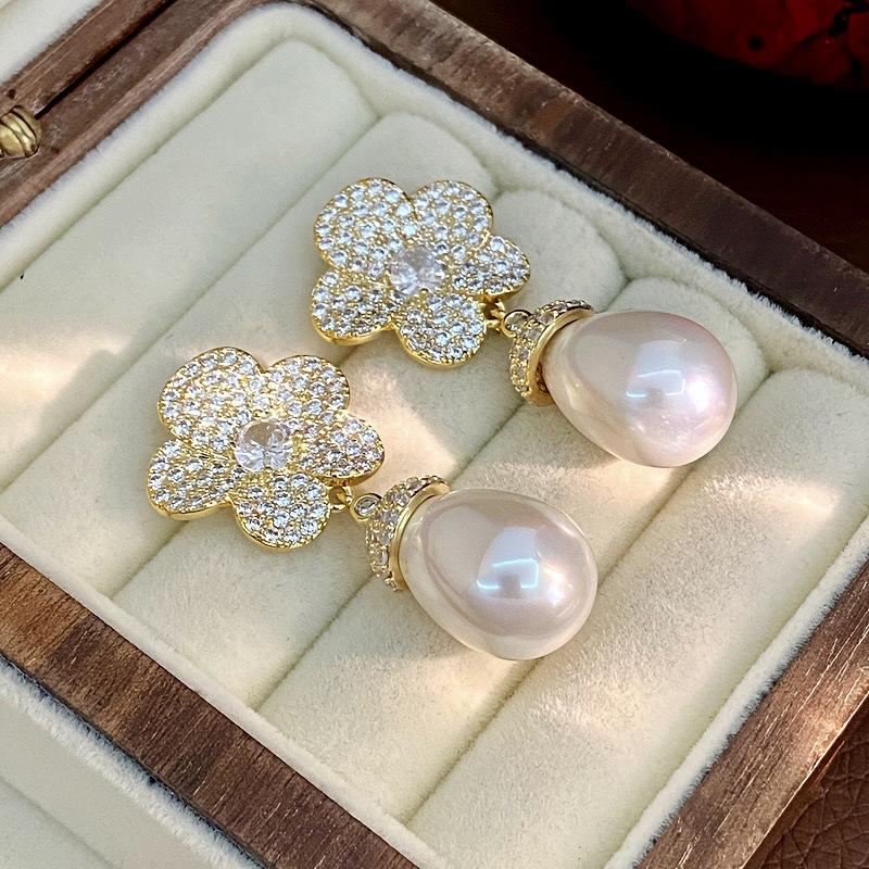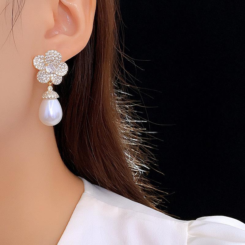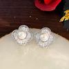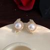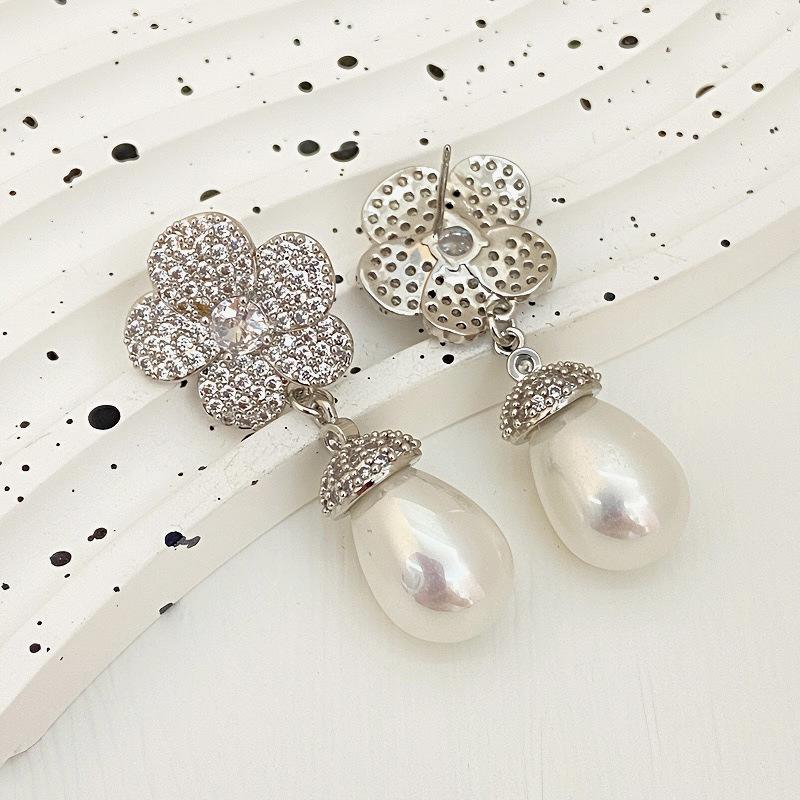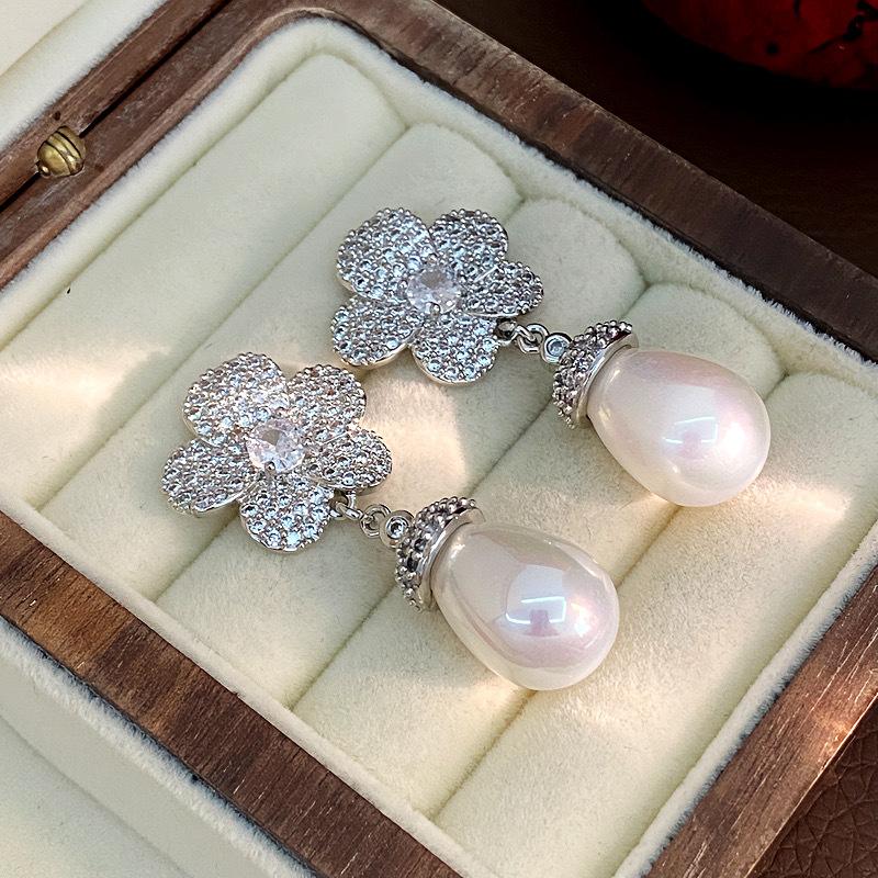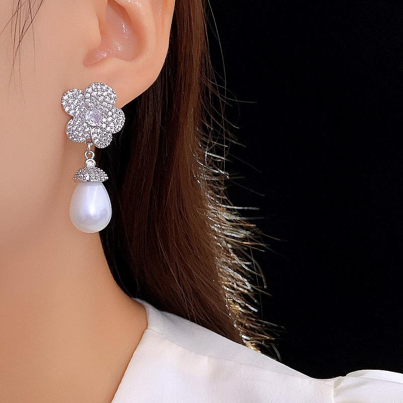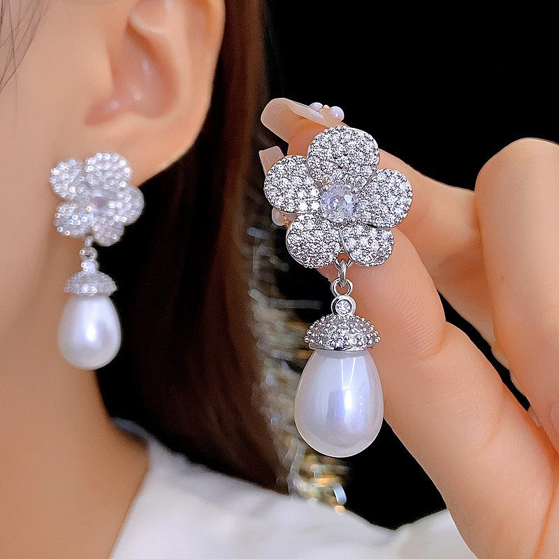 Pendientes de perla con microincrustaciones de circonita estilo corte francés, ligeros, lujosos, elegantes y con un toque de elegancia. Pendientes de aguja de plata con un toque de sentido avanzado.