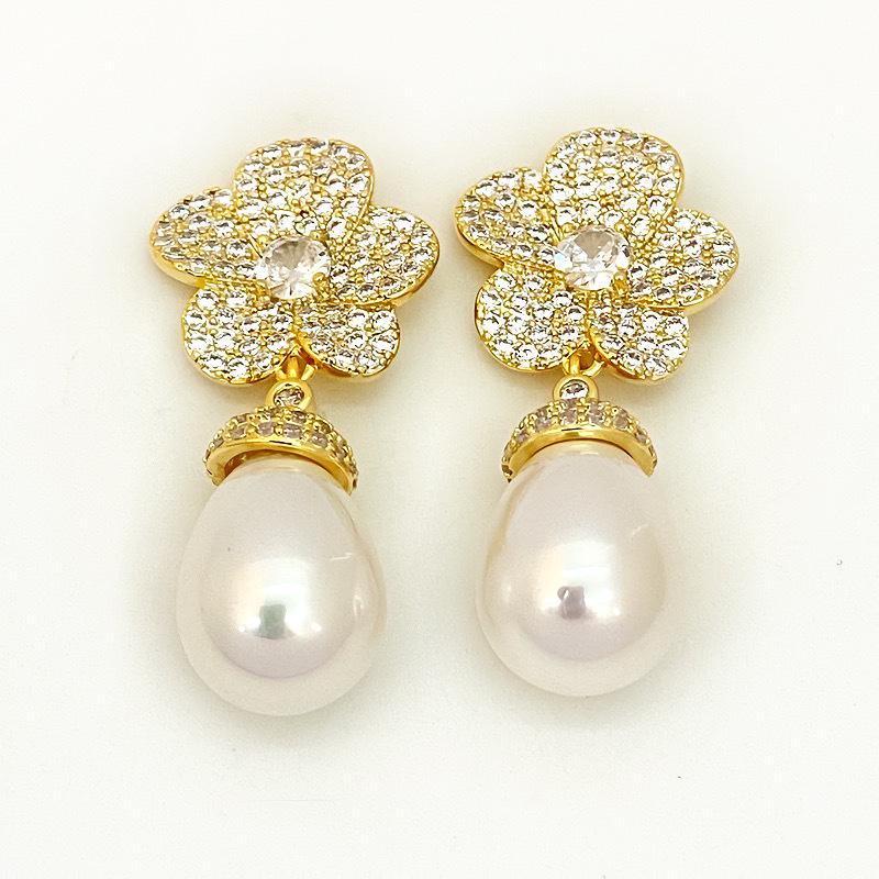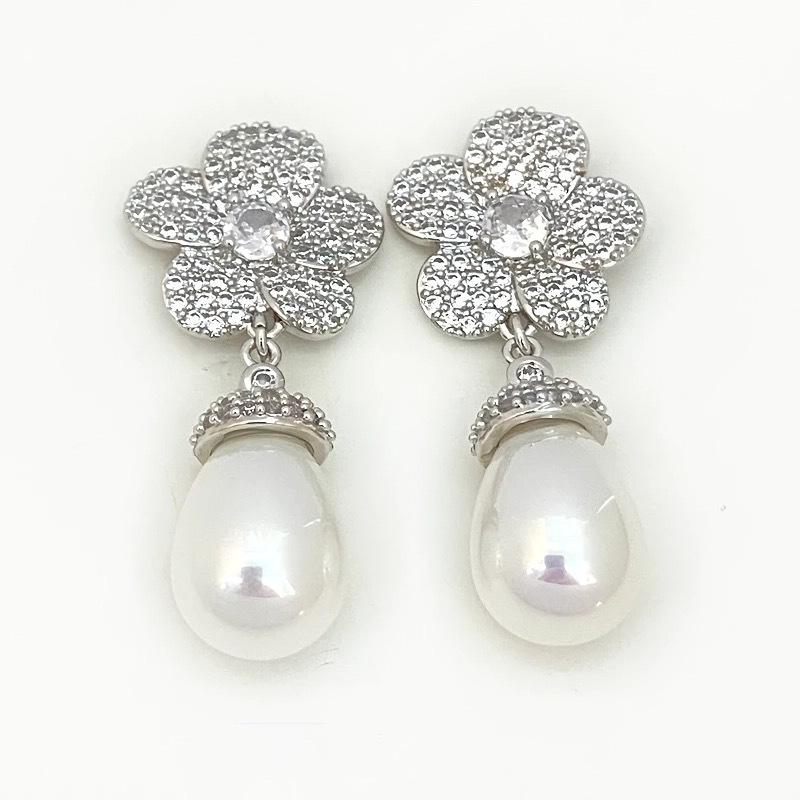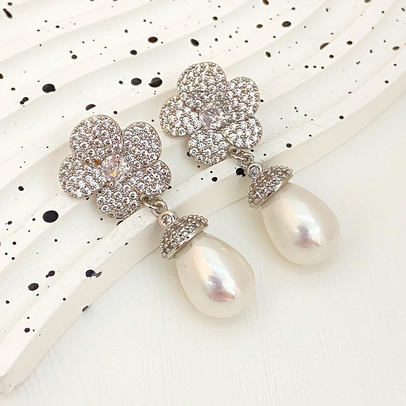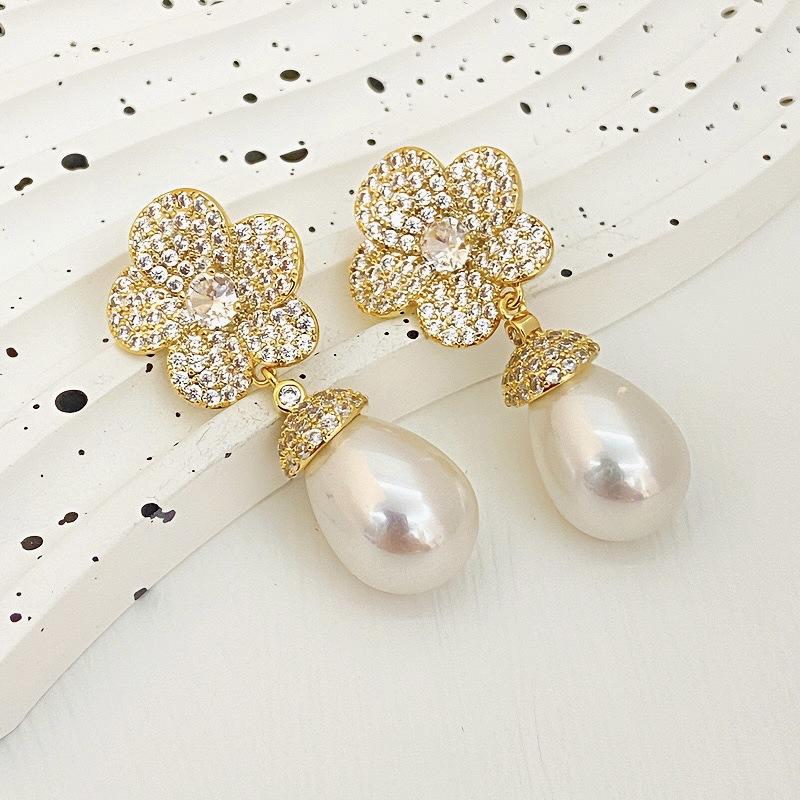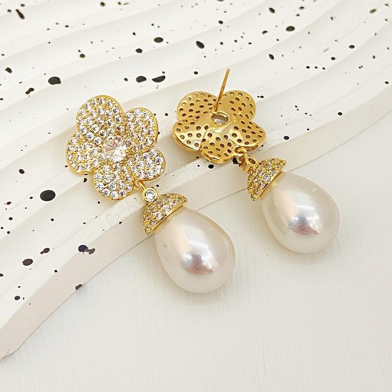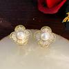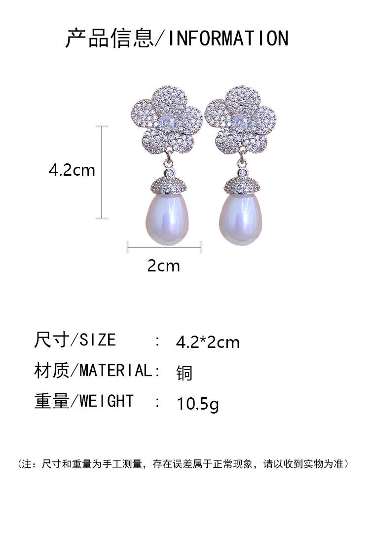Pendientes de perla con microincrustaciones de circonita estilo corte francés, ligeros, lujosos, elegantes y con un toque de elegancia. Pendientes de aguja de plata con un toque de sentido avanzado.