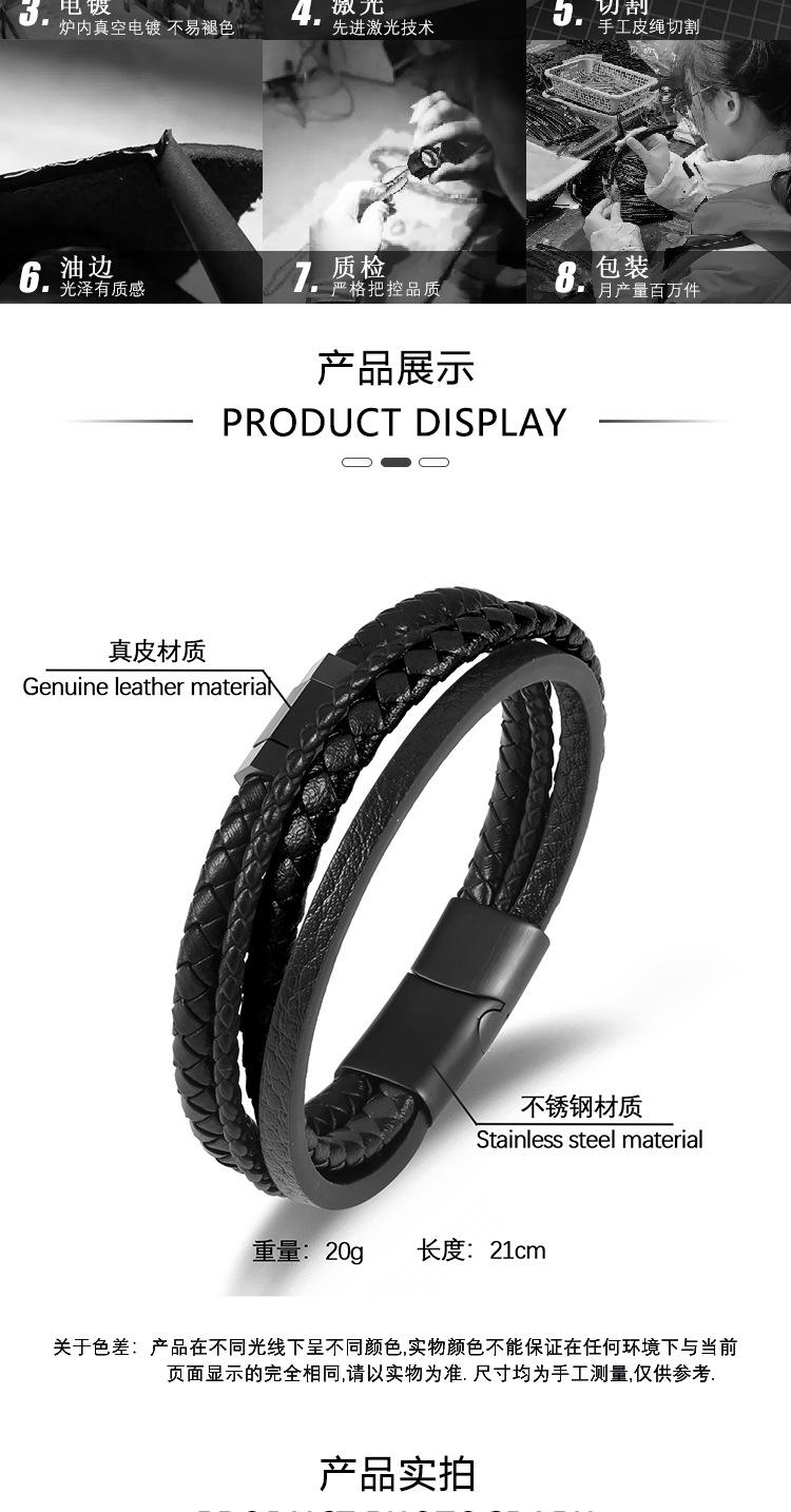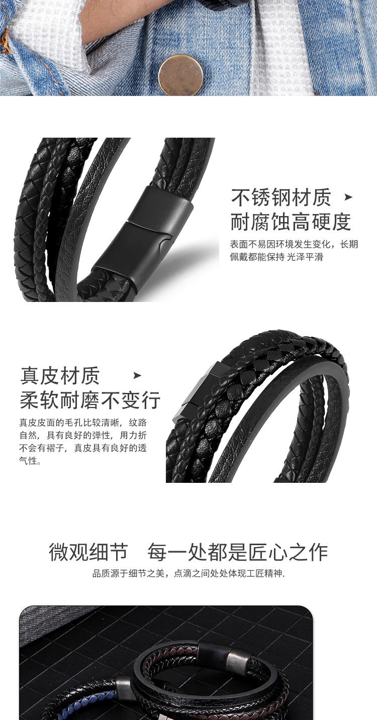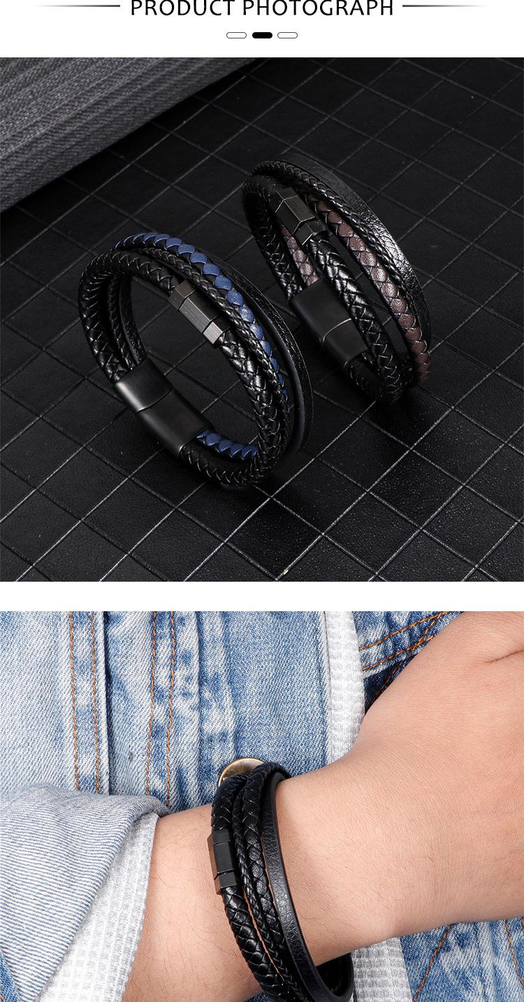 Compra Nueva pulsera tejida a juego para hombre, de acero inoxidable, con accesorios geométricos, estilo europeo y americano, de cuero multicapa. al por mayor en Joom.pro