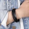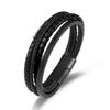 Nueva pulsera tejida a juego para hombre, de acero inoxidable, con accesorios geométricos, estilo europeo y americano, de cuero multicapa.