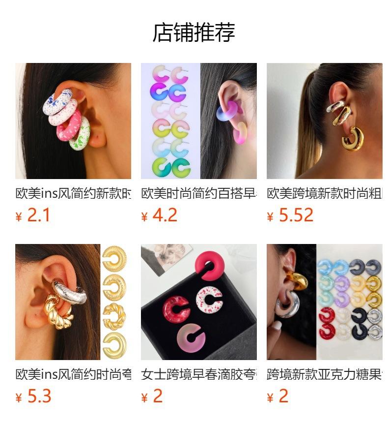 Lote de pendientes con clip en forma de C, huecos y gruesos, de gran venta transfronteriza entre Europa y Estados Unidos, con clip para la oreja, gruesos y lisos, sin orificio para la oreja