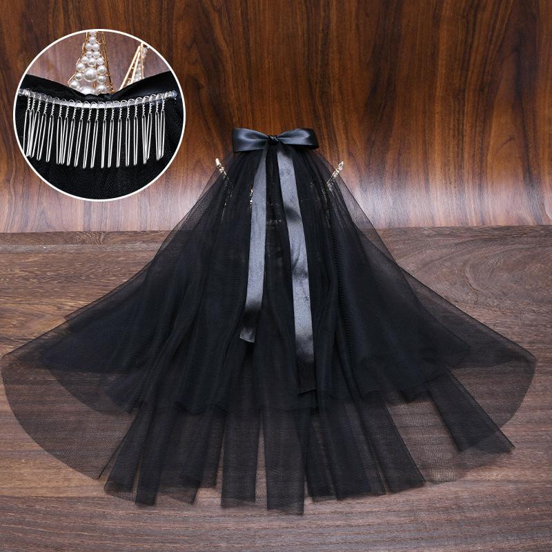 Accesorios para Fotos de Velo Negro Halloween Tocado Lazo Retro Velo de Bruja Sexy Foto Actuación Accesorios para el Cabello