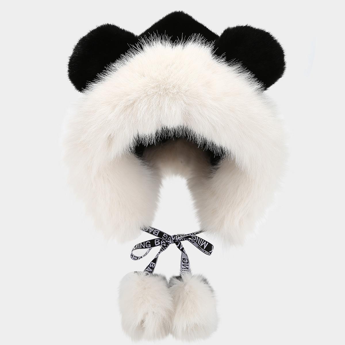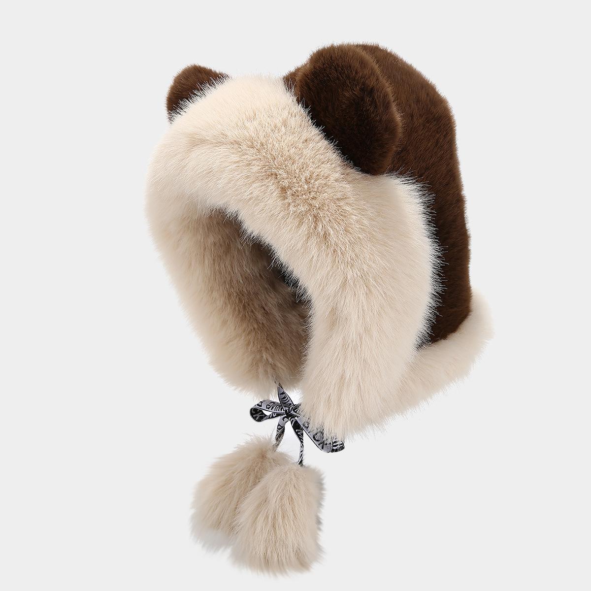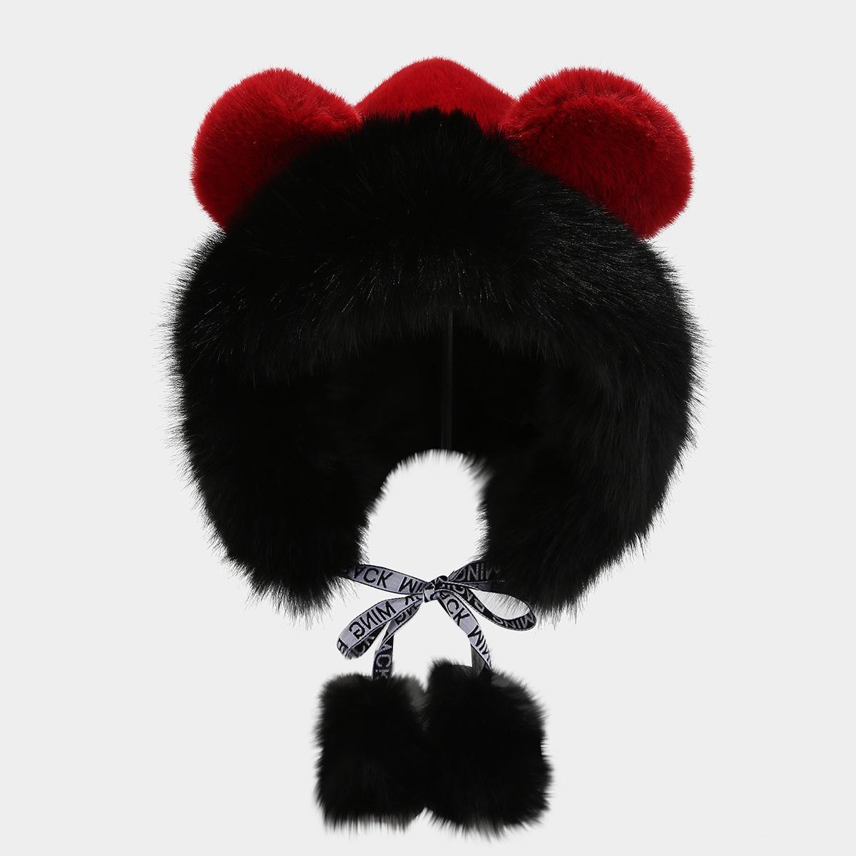 Gorro de invierno con orejas de zorro de peluche, cálido y suave, de Lei Feng, para mujer, con protección para las orejas de piel de conejo sintética, ideal para el frío.