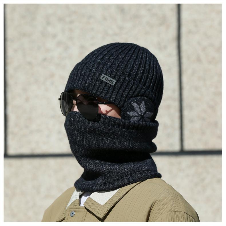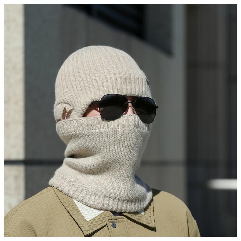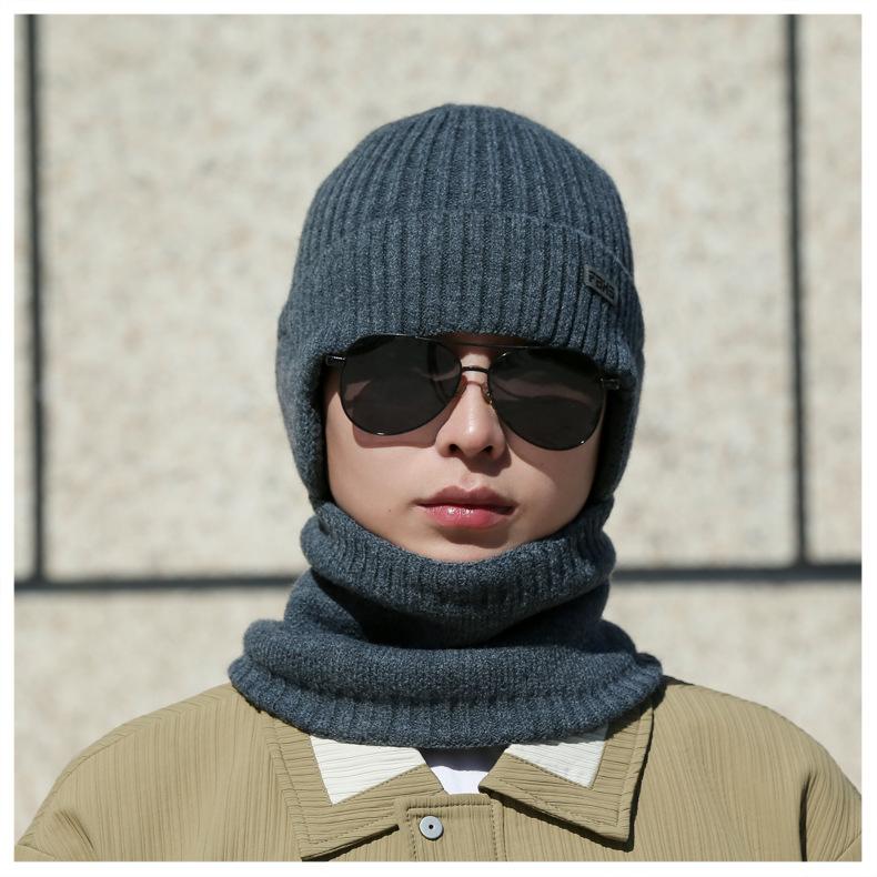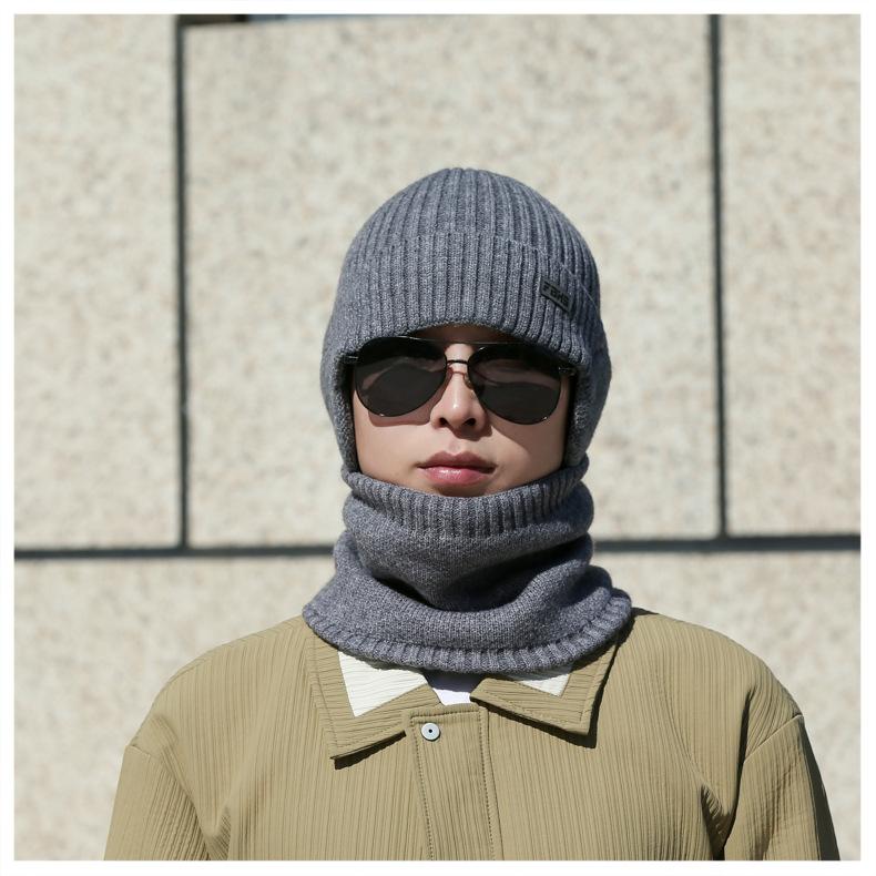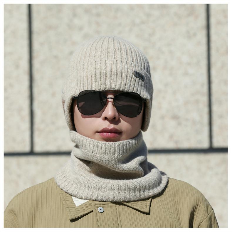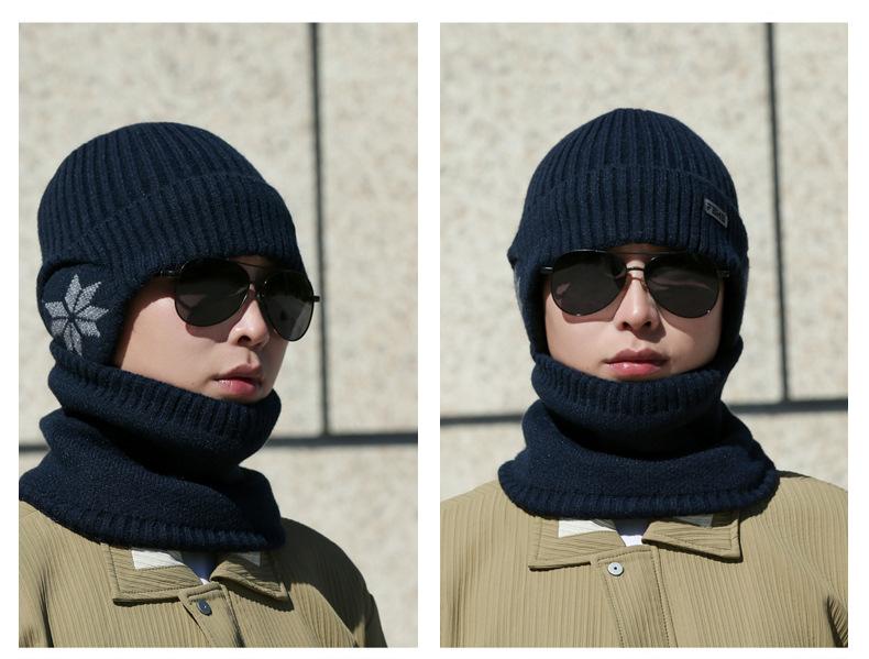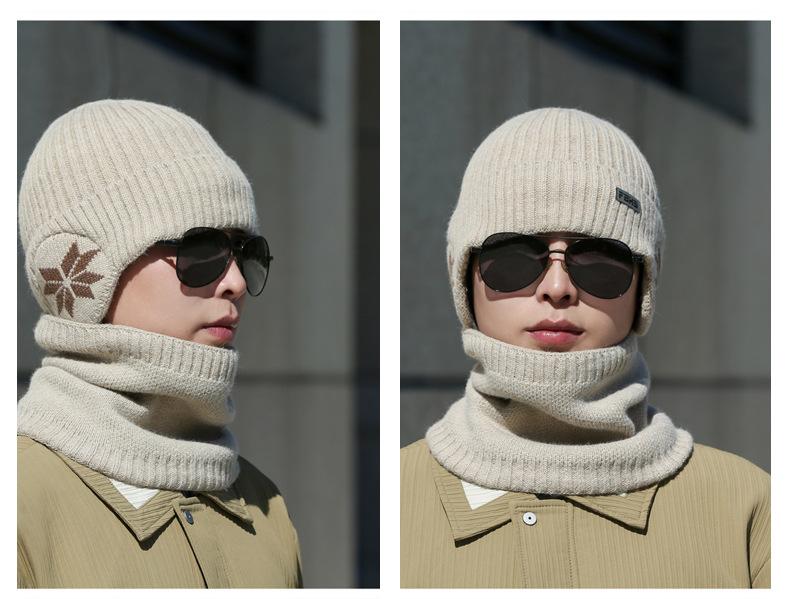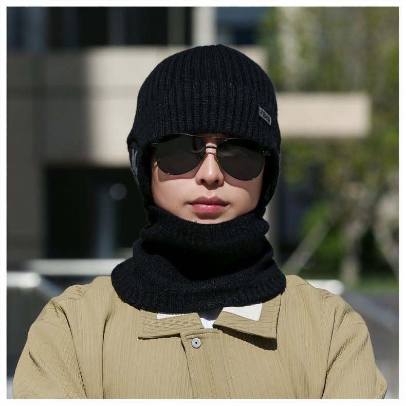 Gorro de invierno para hombre, forro polar grueso, cálido, con protección para el cuello, tejido, para los oídos, de lana resistente al frío, para ciclismo