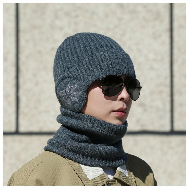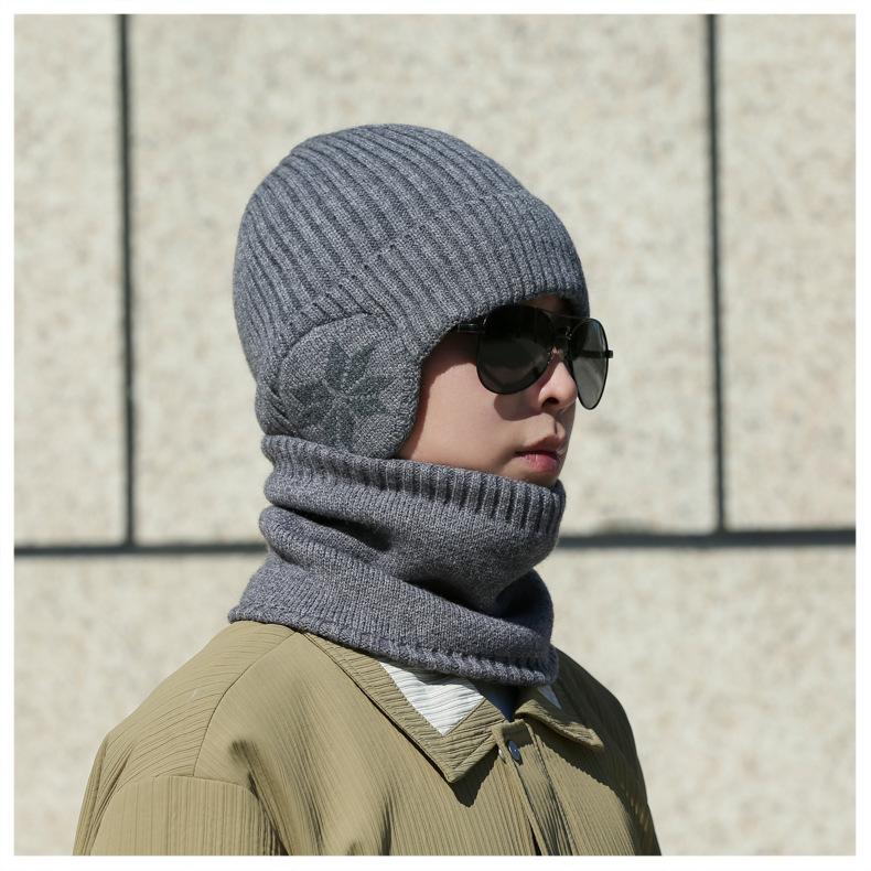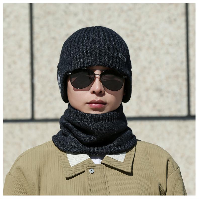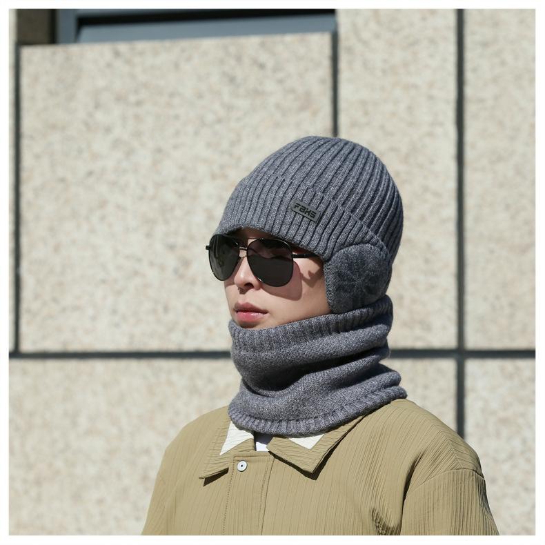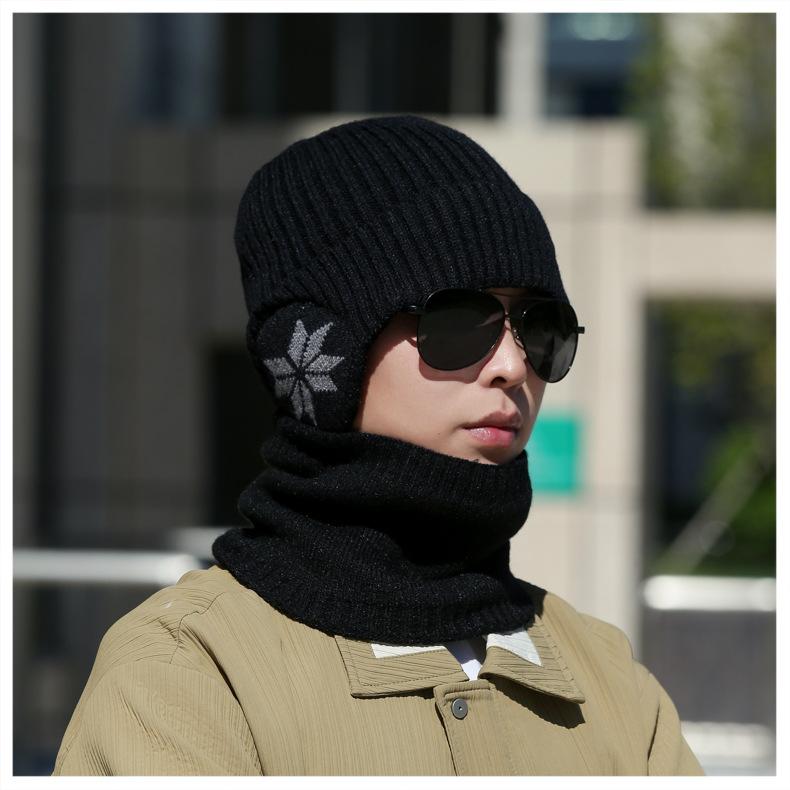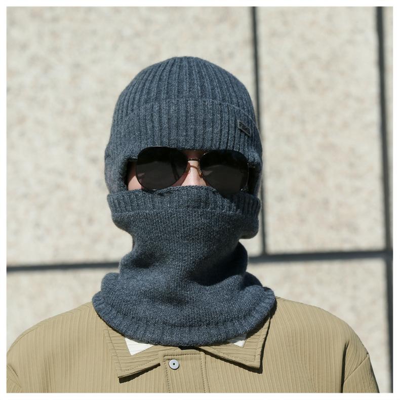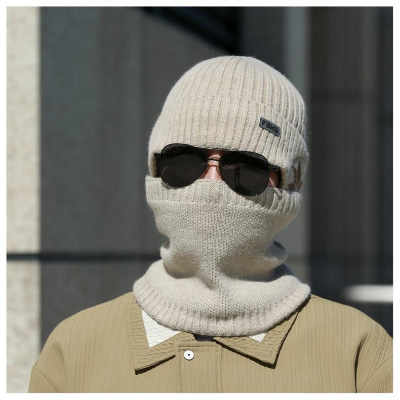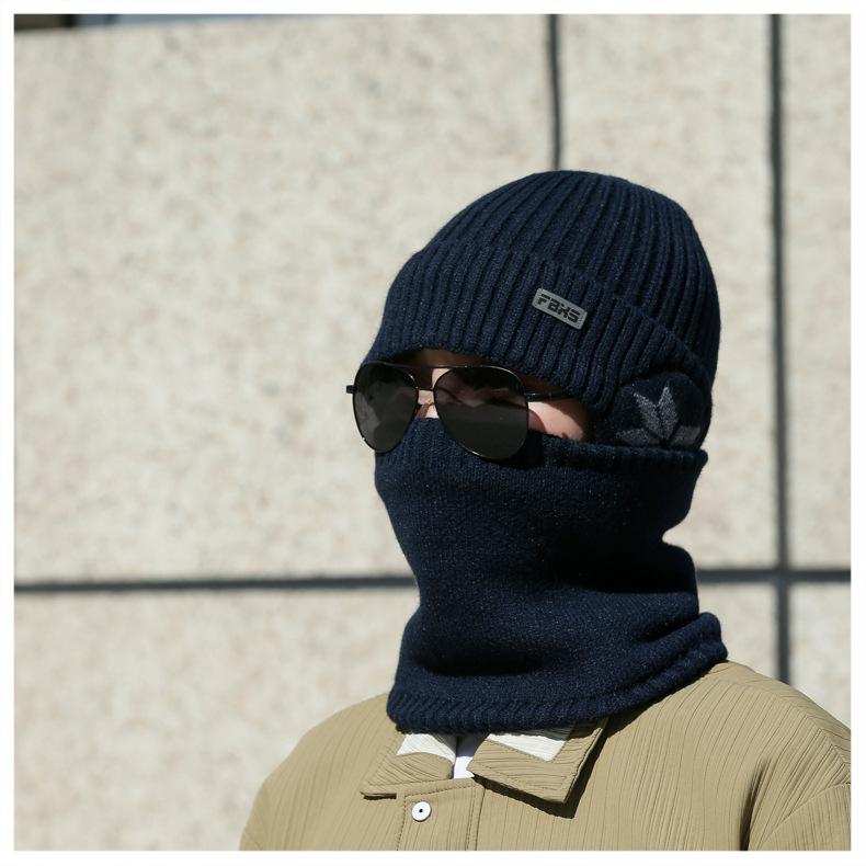 Gorro de invierno para hombre, forro polar grueso, cálido, con protección para el cuello, tejido, para los oídos, de lana resistente al frío, para ciclismo