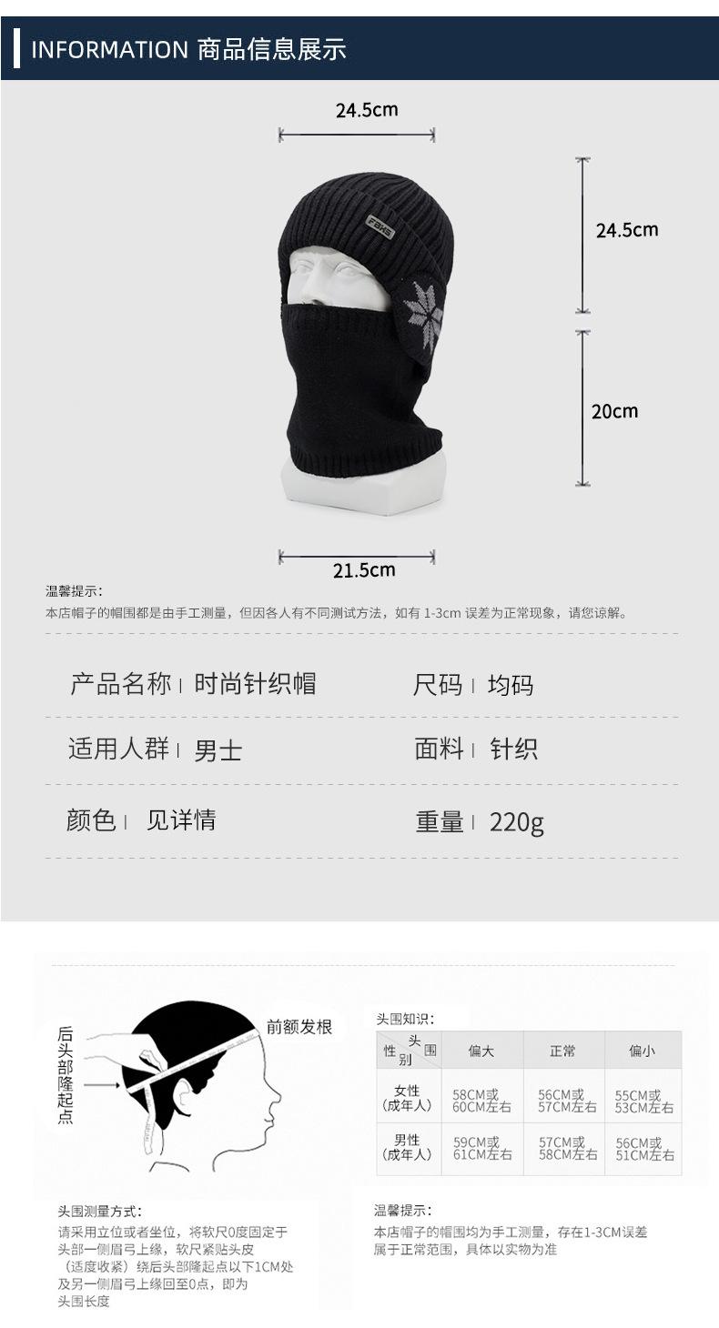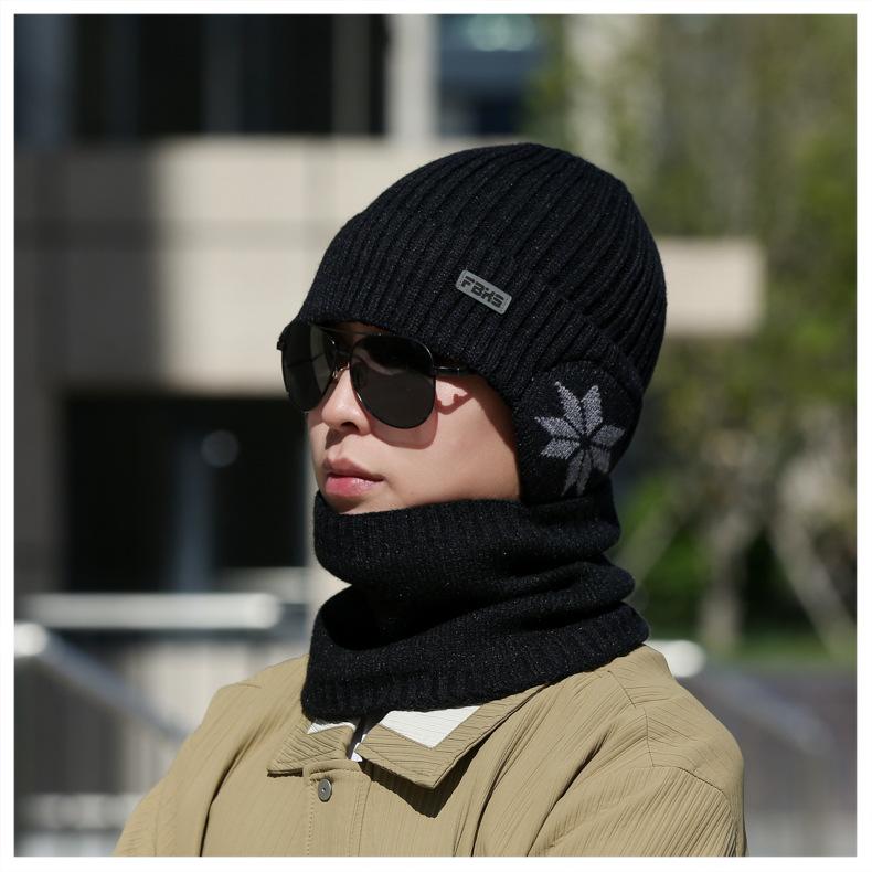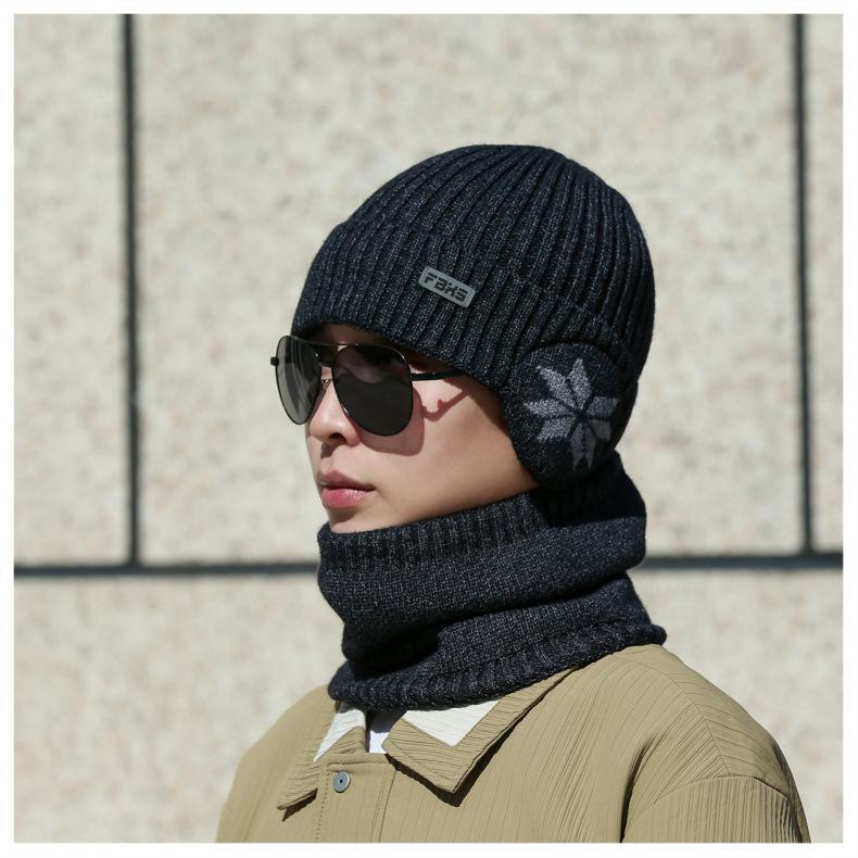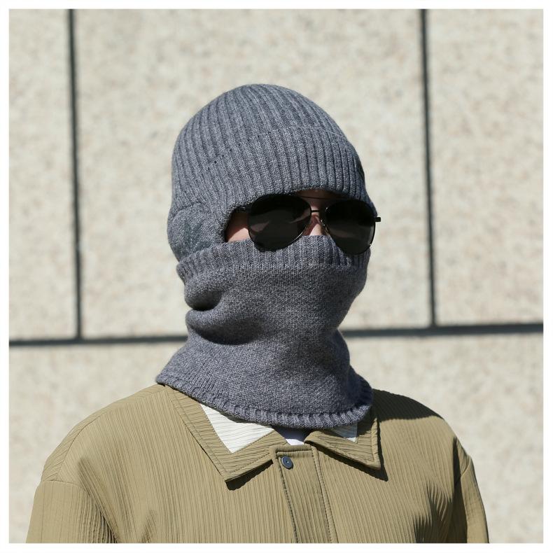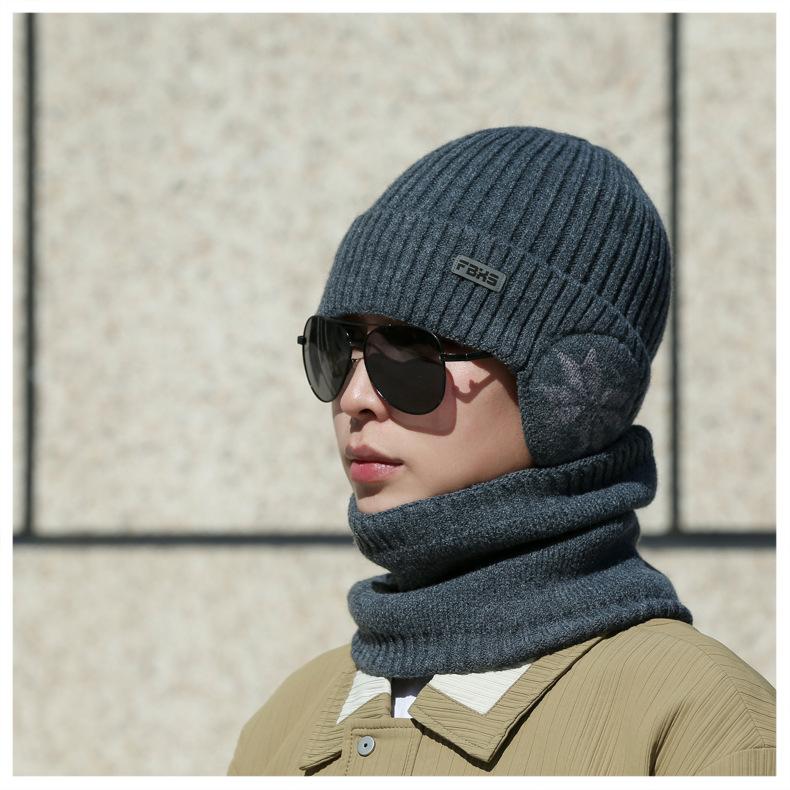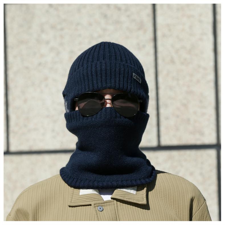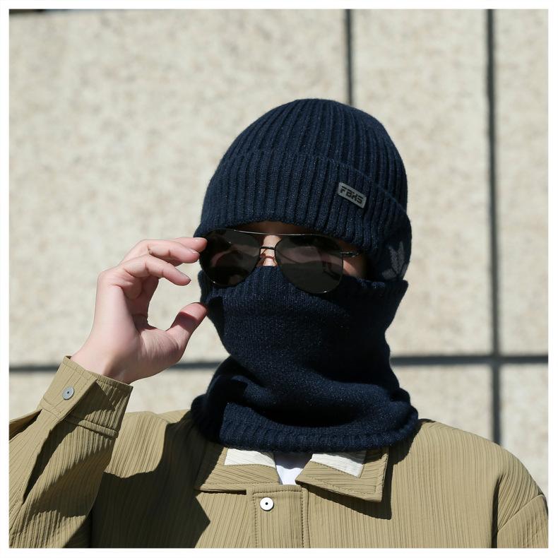 Gorro de invierno para hombre, forro polar grueso, cálido, con protección para el cuello, tejido, para los oídos, de lana resistente al frío, para ciclismo