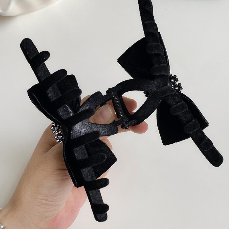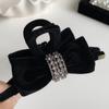 Pinza grande de terciopelo francés con forma de tiburón, accesorio para el cabello con lazo retro y diamantes de imitación, pinza versátil para el cabello, venta al por mayor