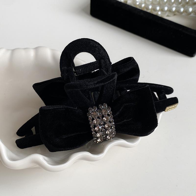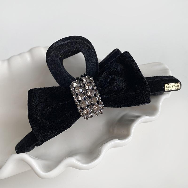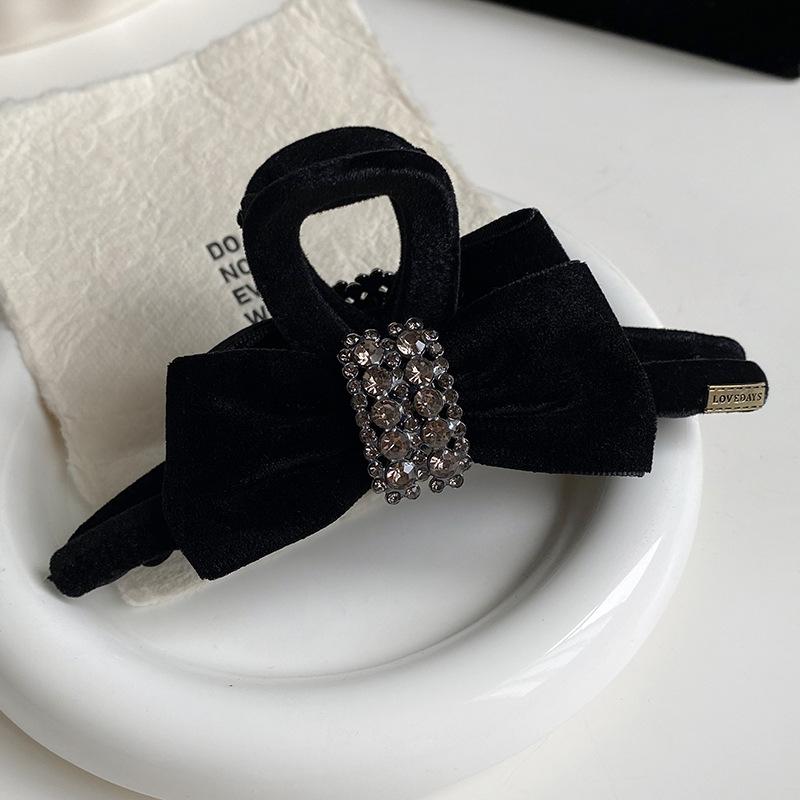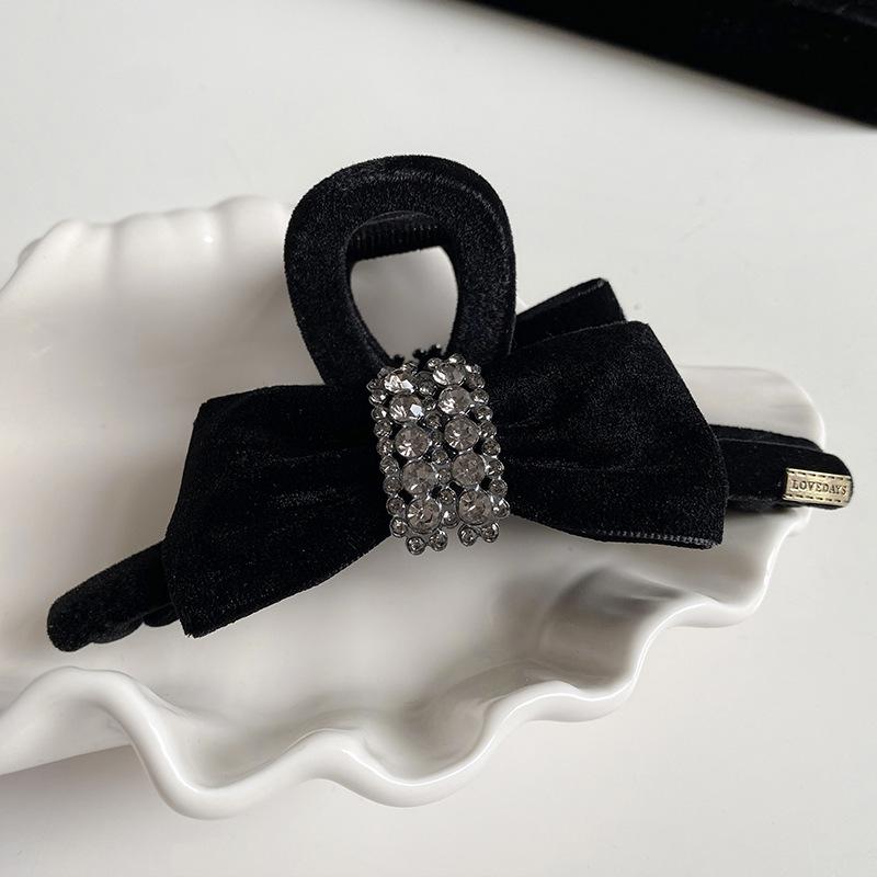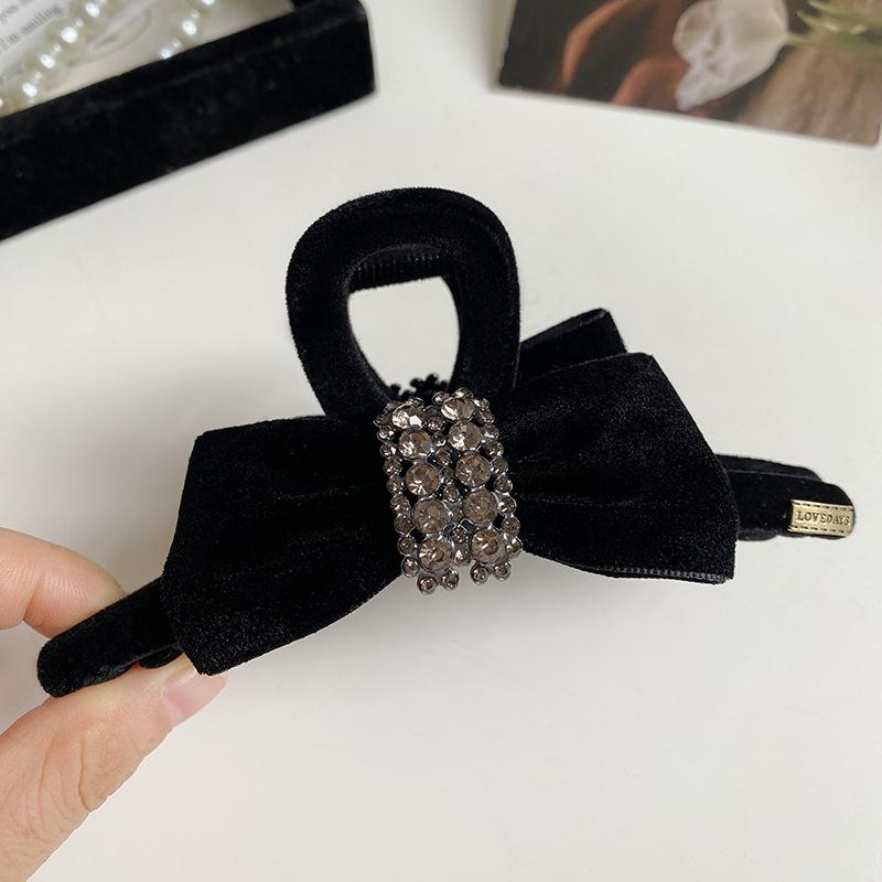 Compra Pinza grande de terciopelo francés con forma de tiburón, accesorio para el cabello con lazo retro y diamantes de imitación, pinza versátil para el cabello, venta al por mayor al por mayor en Joom.pro
