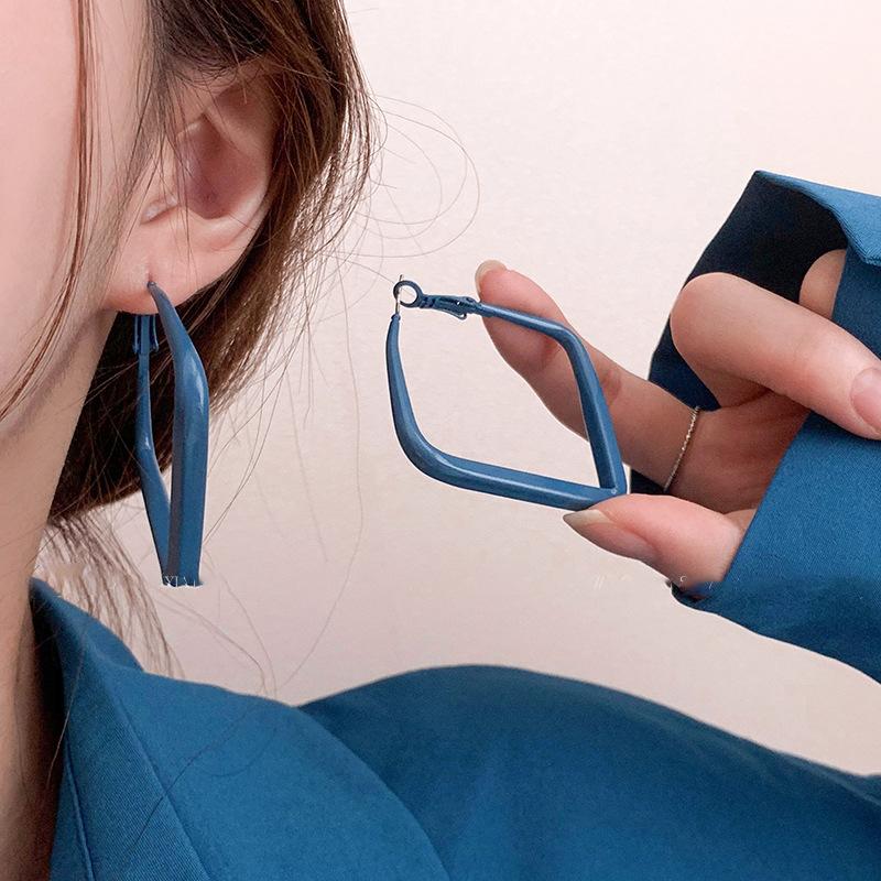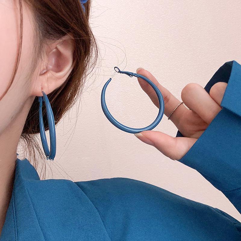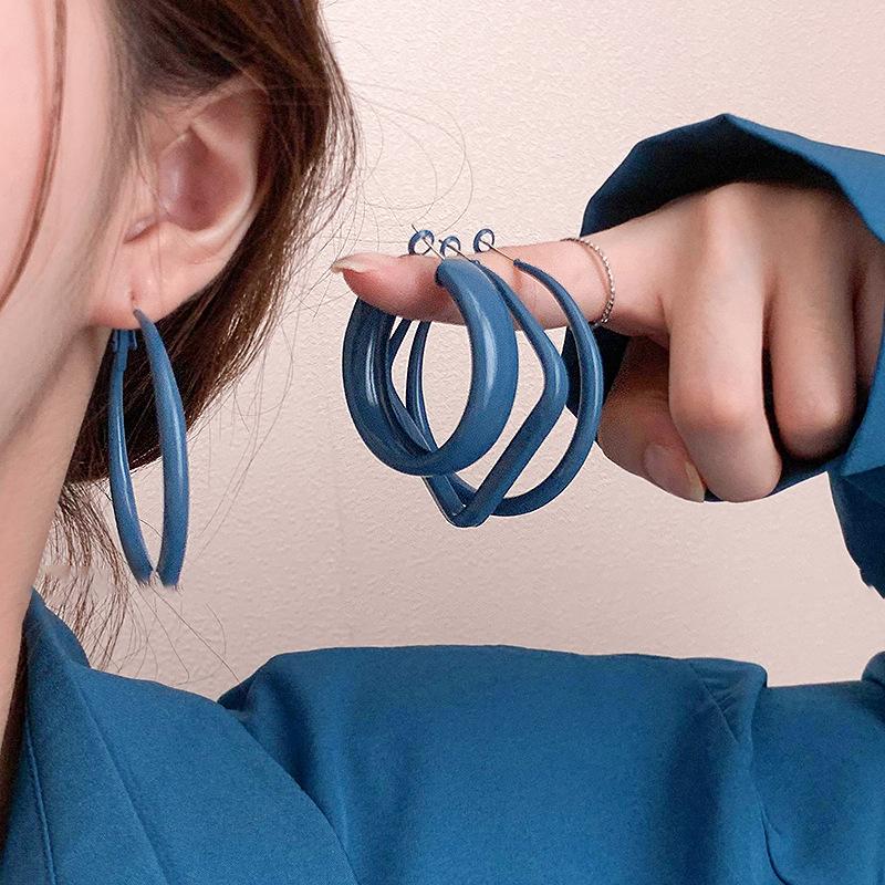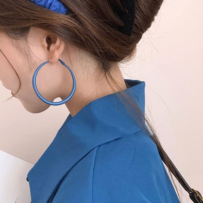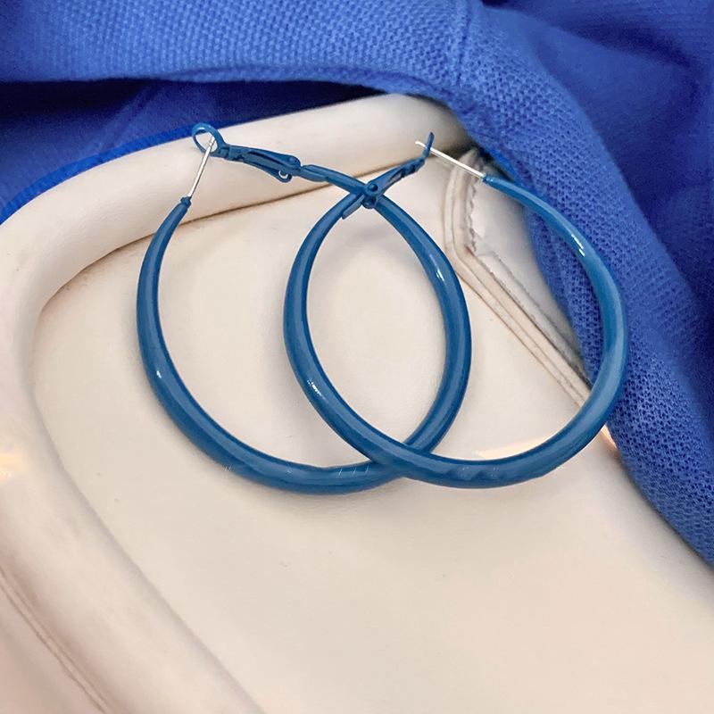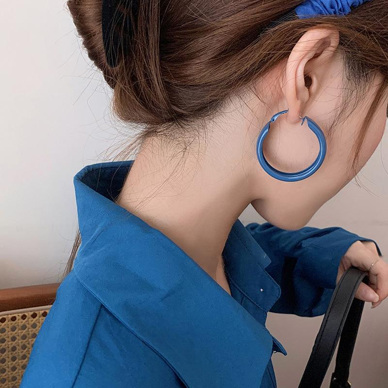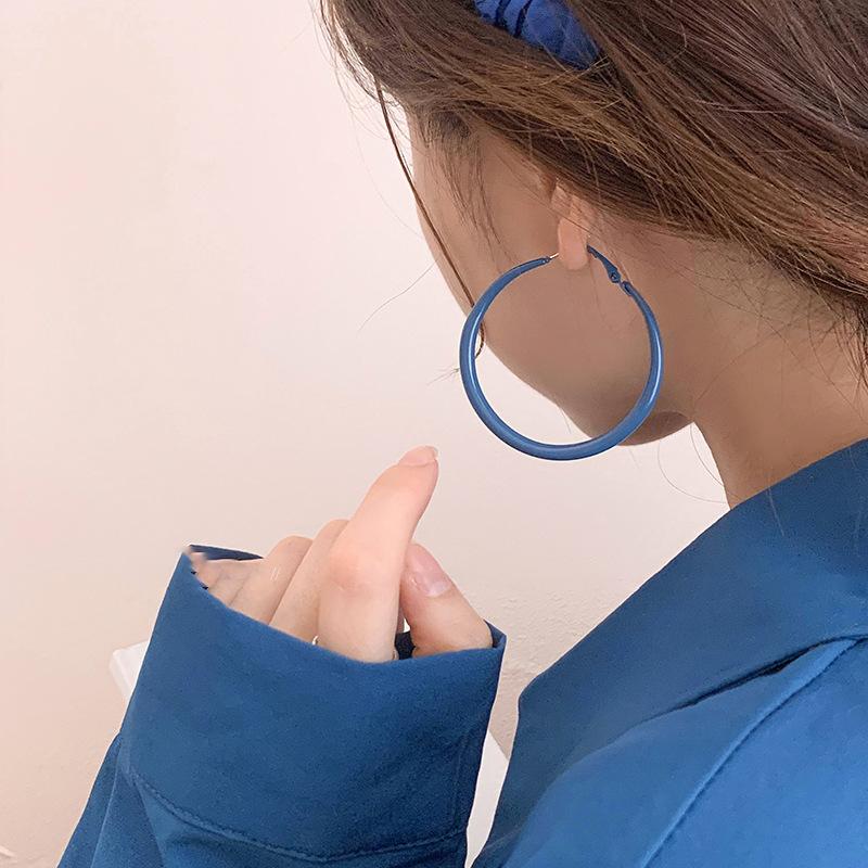 Pendientes de aro con diseño simple y nicho con pintura en aerosol Klein de aguja plateada, pendientes exagerados con personalidad de moda al por mayor