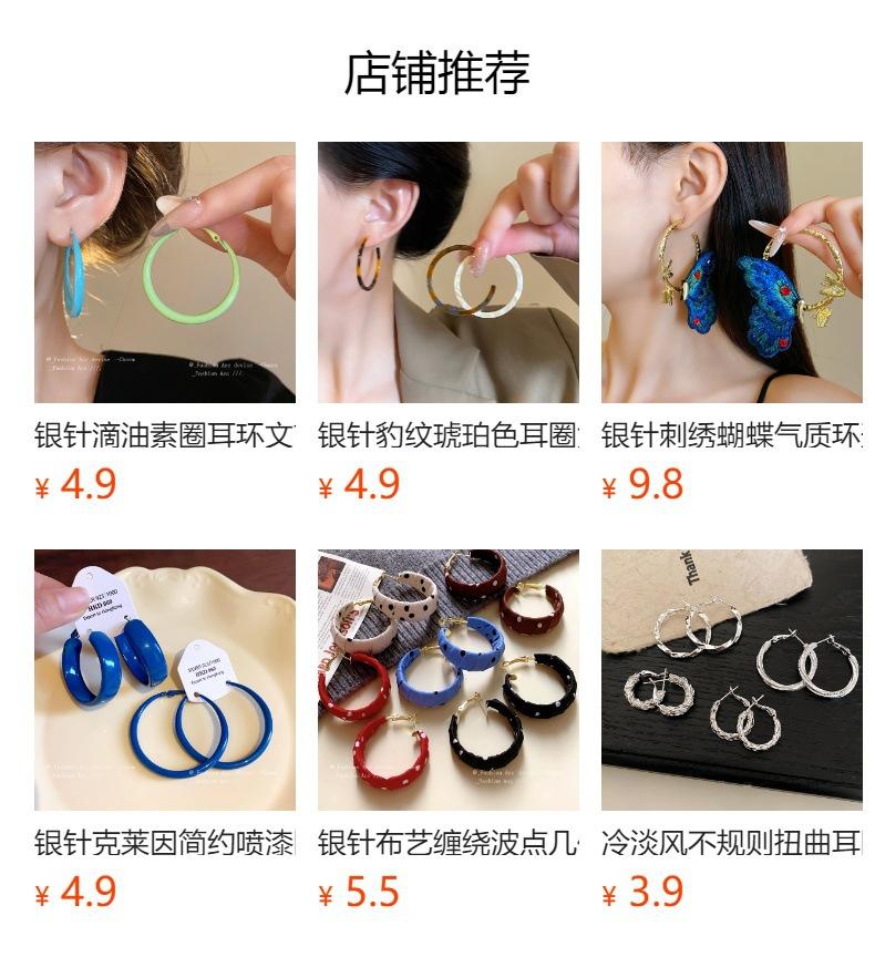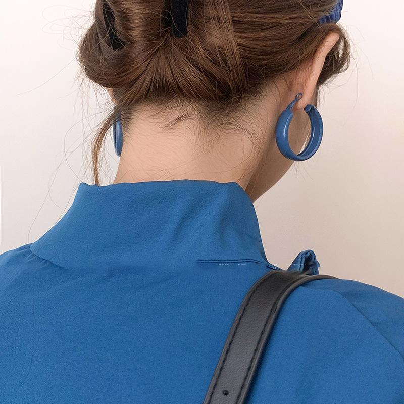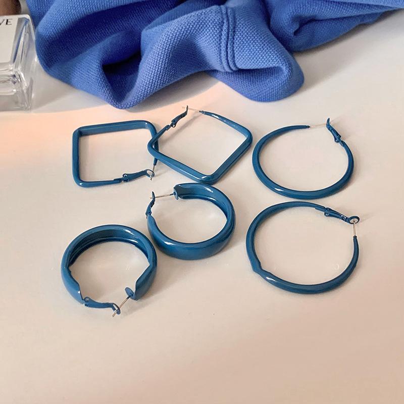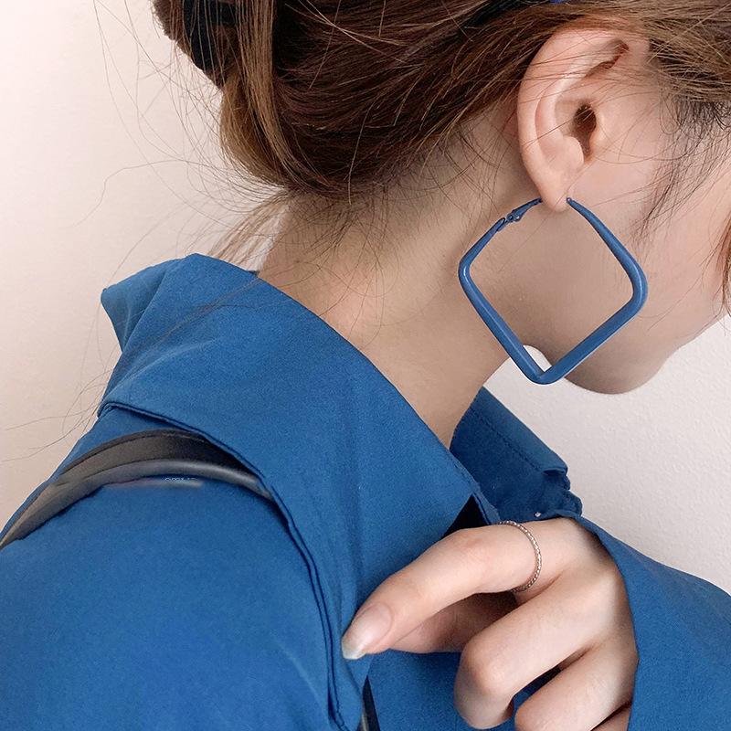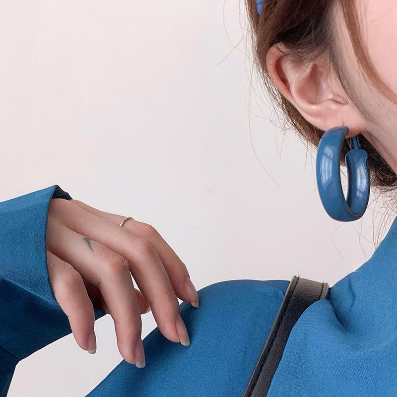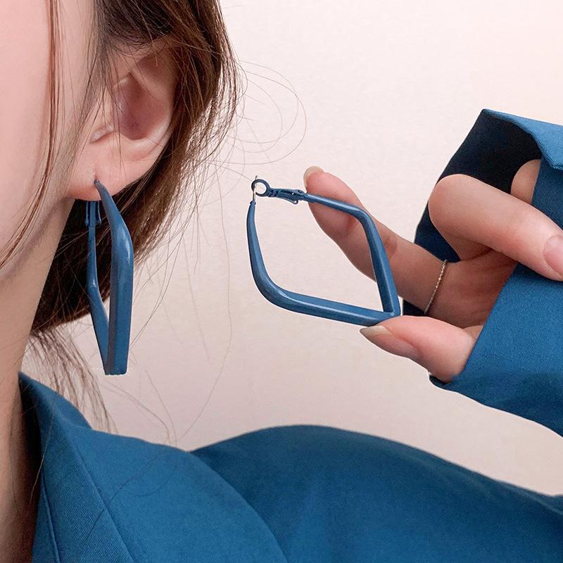 Pendientes de aro con diseño simple y nicho con pintura en aerosol Klein de aguja plateada, pendientes exagerados con personalidad de moda al por mayor