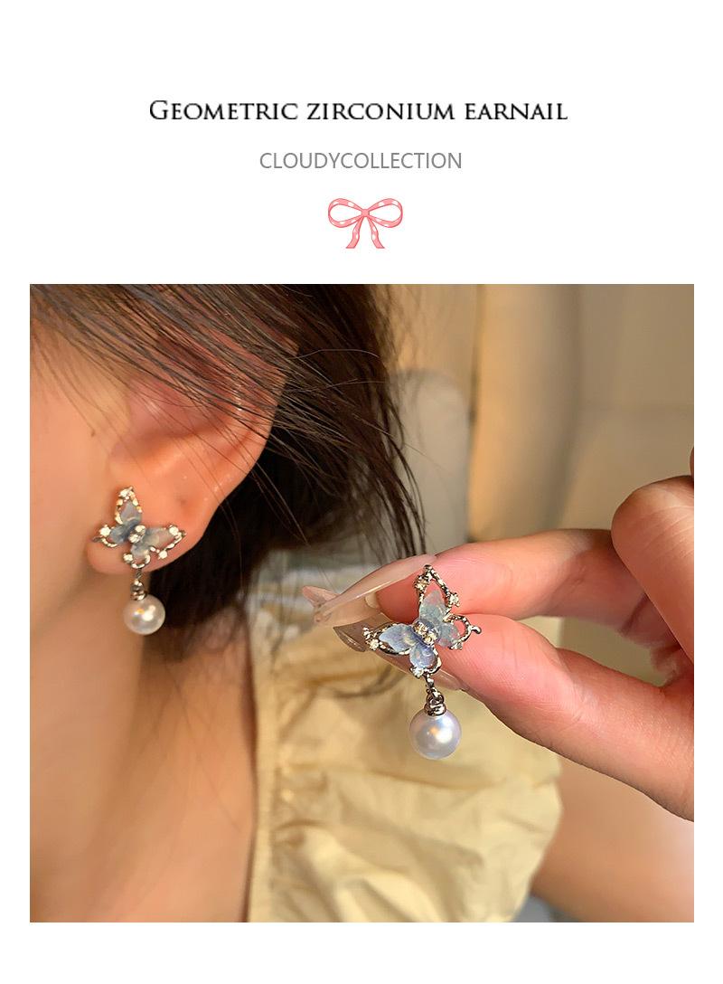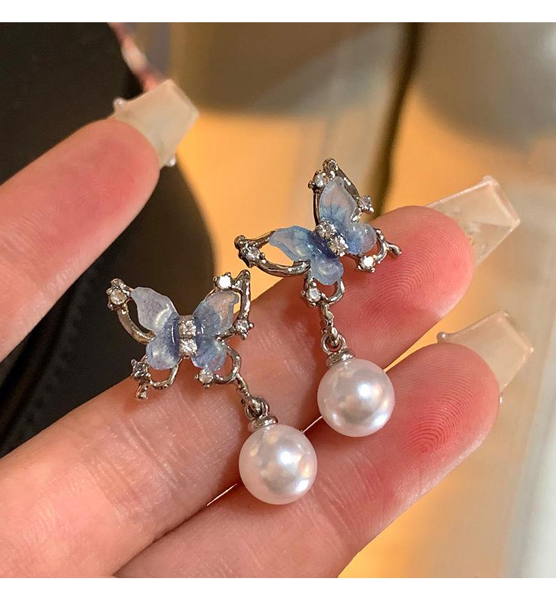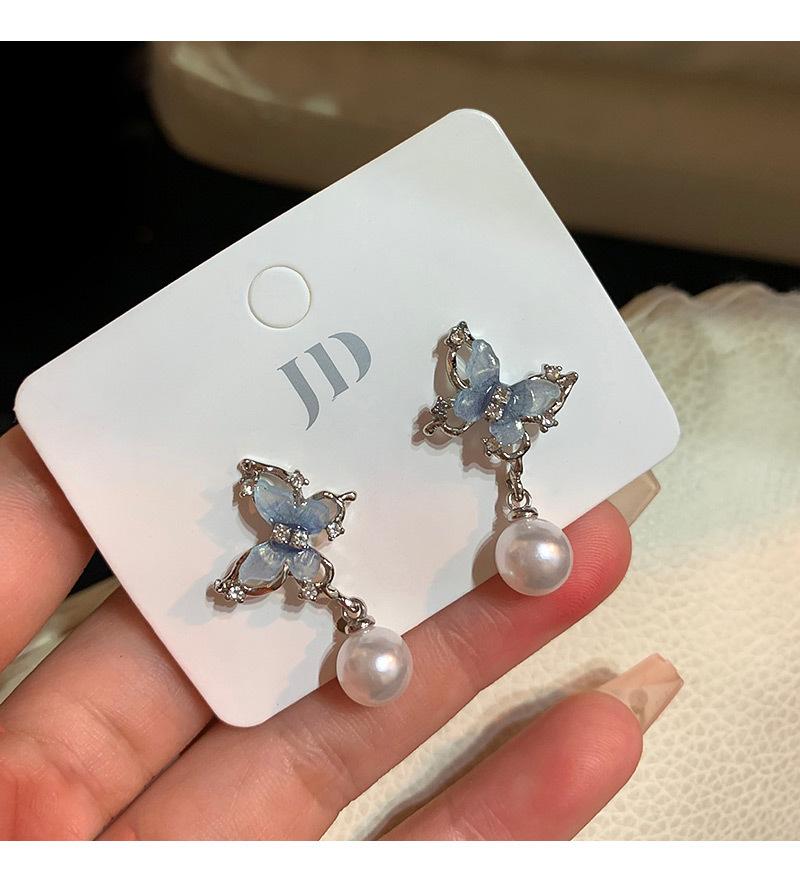 Pendientes de mariposa de verano con perlas de imitación para mujer, ligeros, lujosos, de alta gama, elegantes, con diseño de nicho, combinables con todo, joyería distintiva para las orejas.