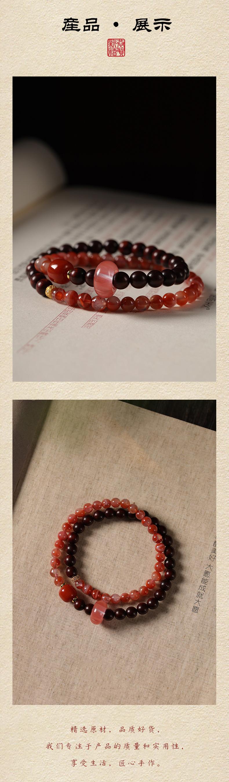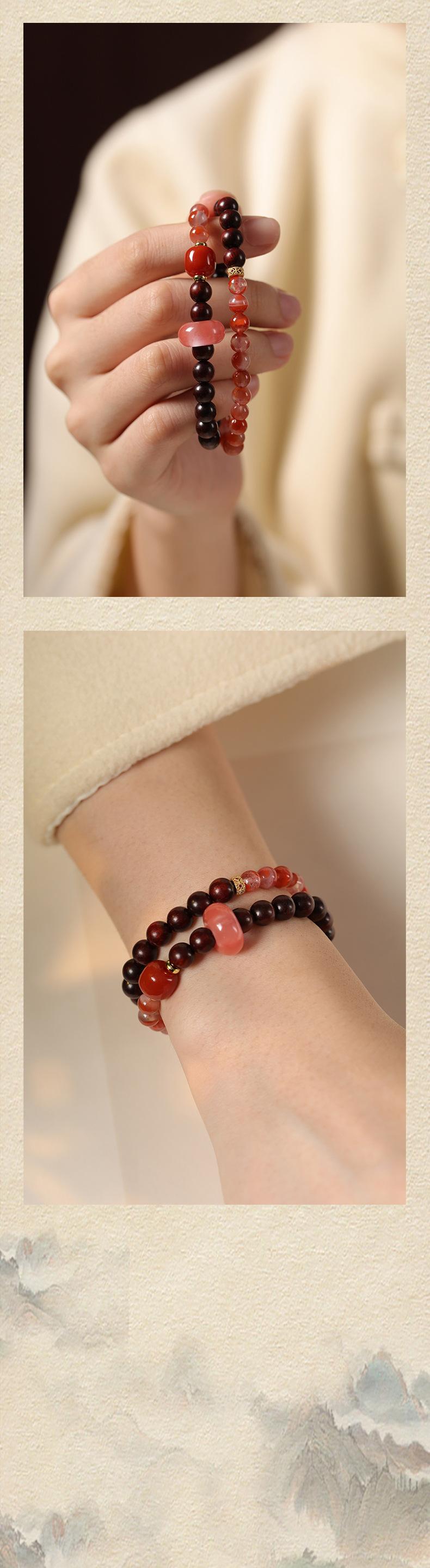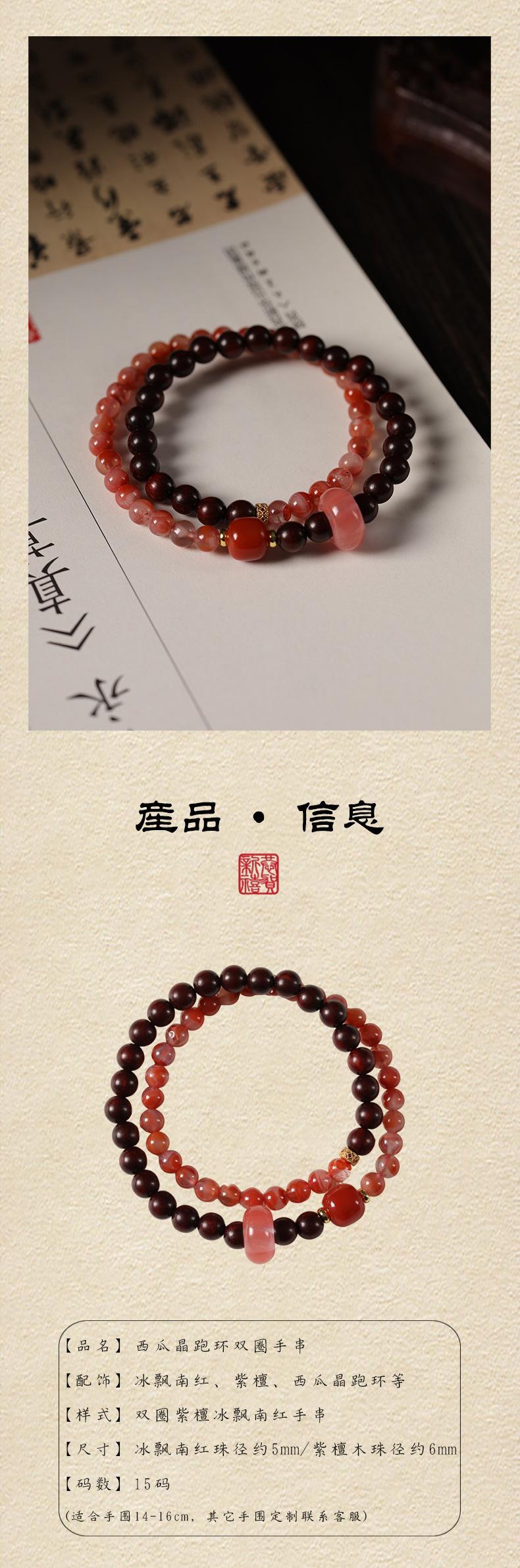 Anillo para correr de cristal de sandía anillo doble pulsera de ágata rojo palo de rosa marea nacional pulsera tejida cuentas cuentas suministro al por mayor