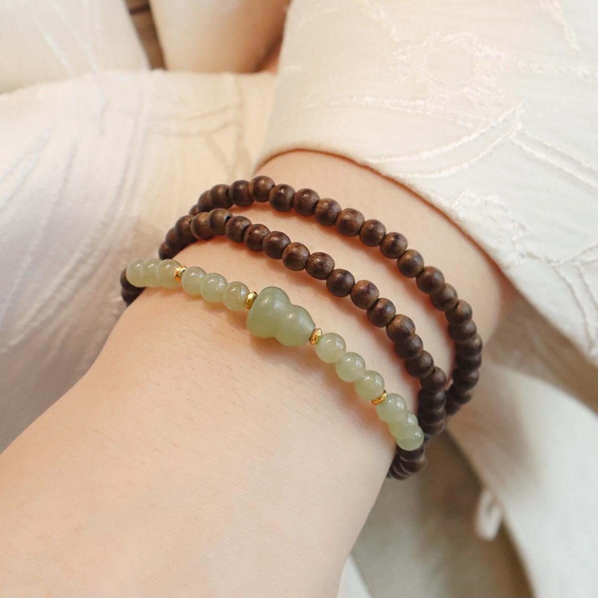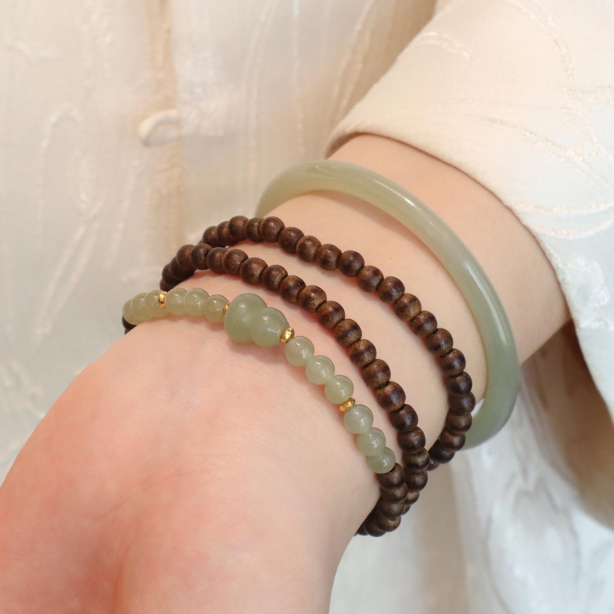 4mm three-circle natural agarwood hetian jade bring in wealth and treasure gourd bracelet