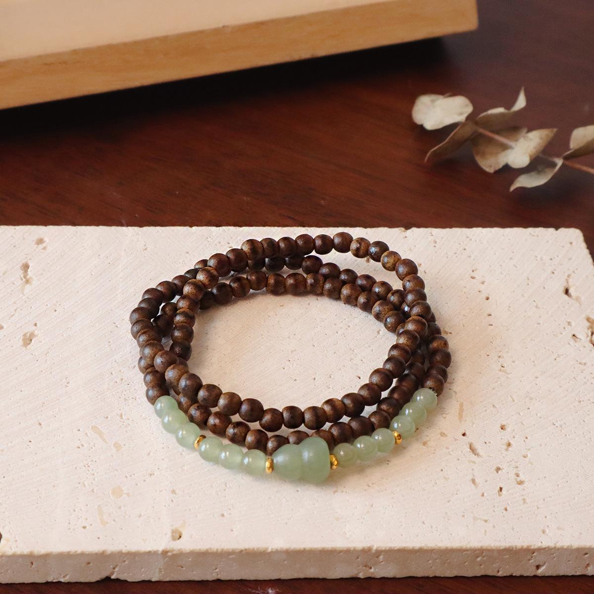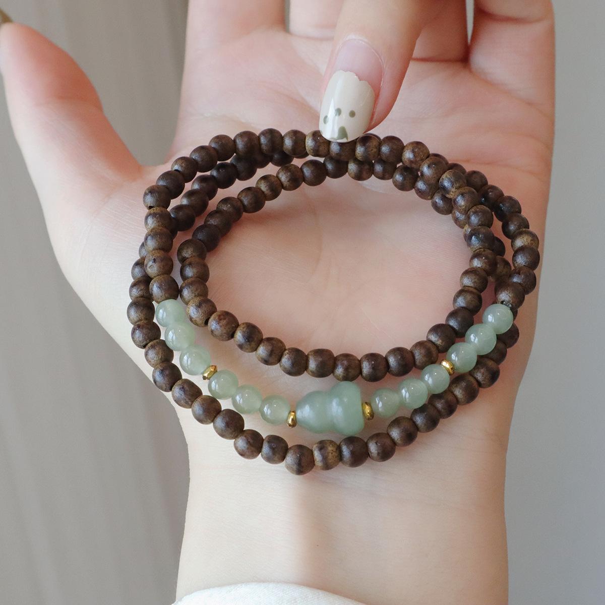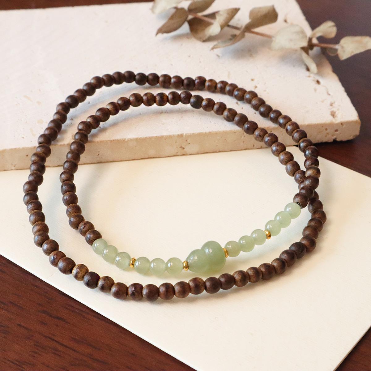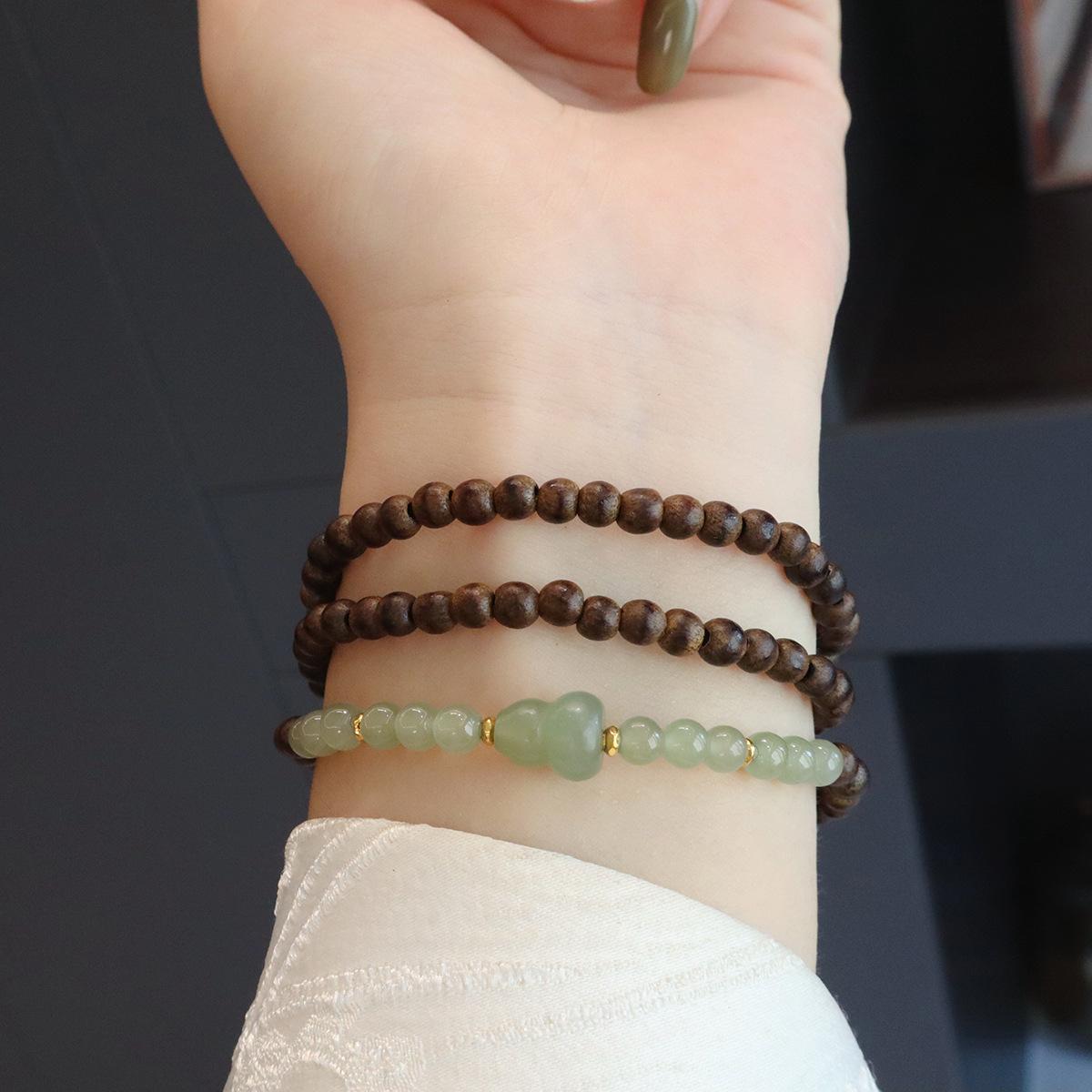 Pulsera de madera de agar natural productos de alta calidad cuentas de calabaza de jade Hetian pulsera de múltiples vueltas al por mayor pulsera para hombres y mujeres joyería para amantes
