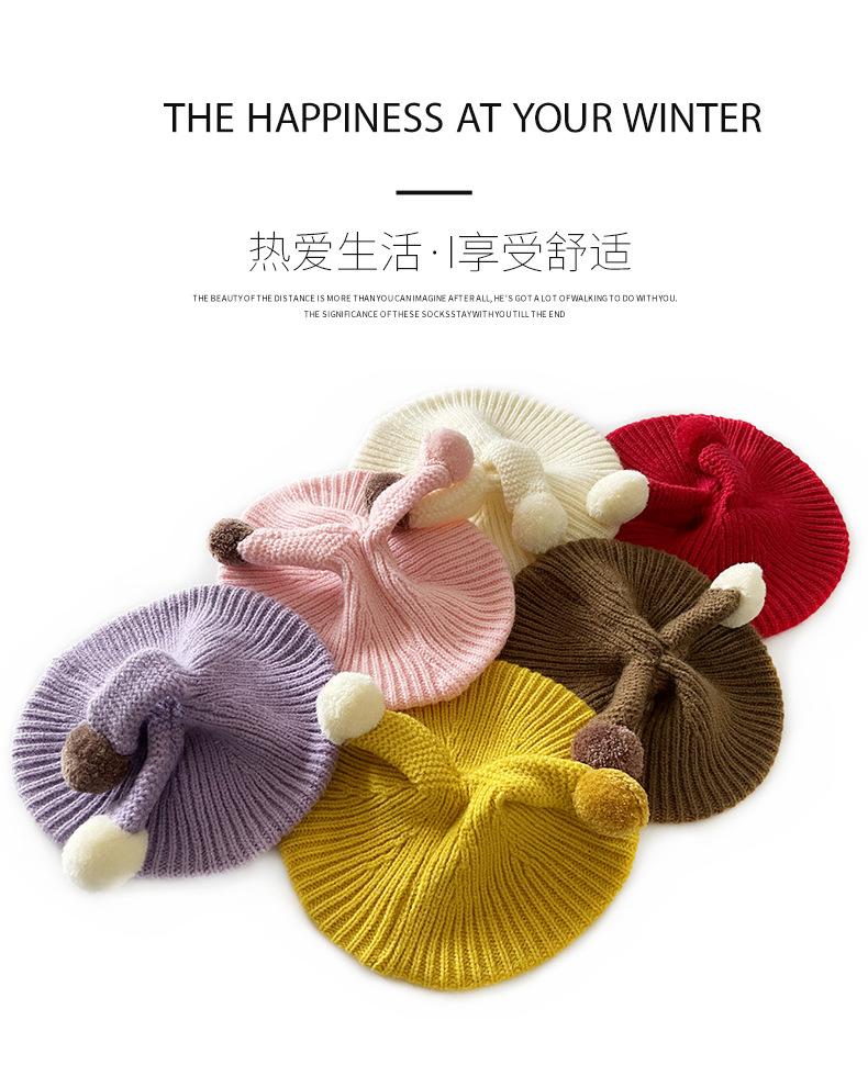 Sombrero Infantil de Gato Hermano Otoño e Invierno Dulce Lindo Boina de Bola Sombrero de Lana Niñas Elegante Moda Sombrero Tejido