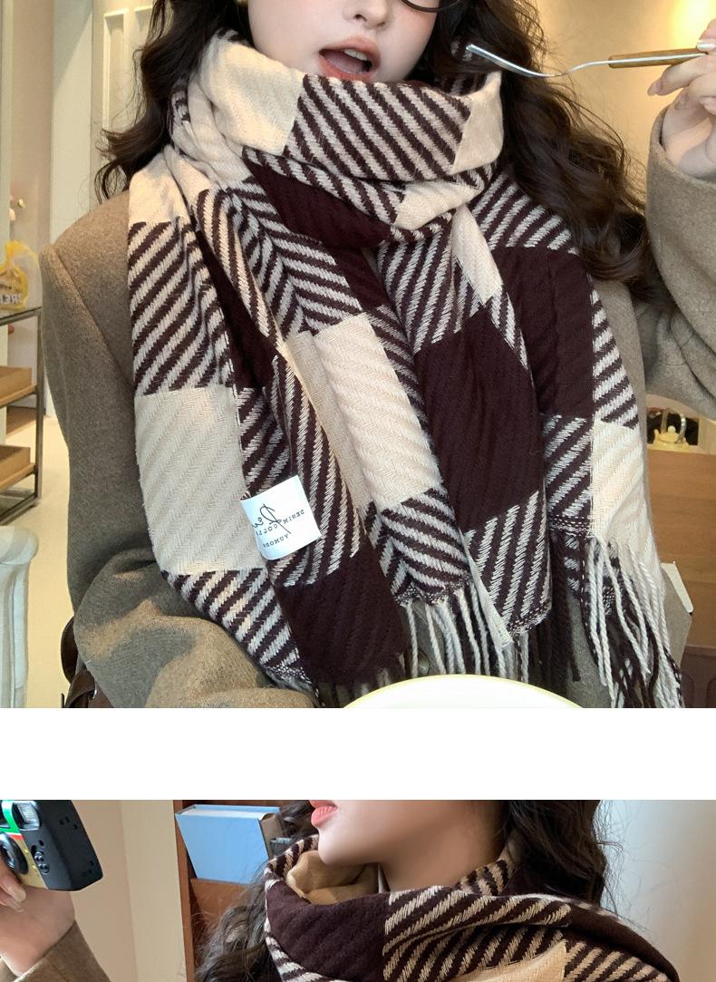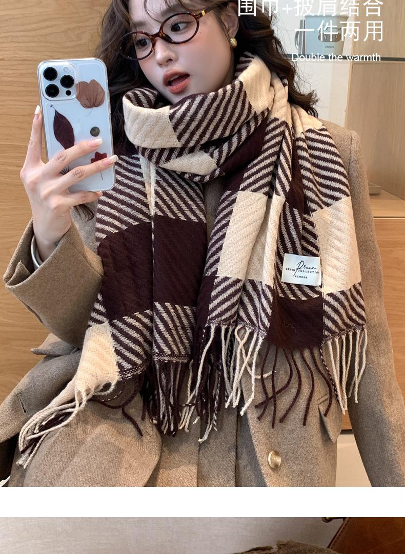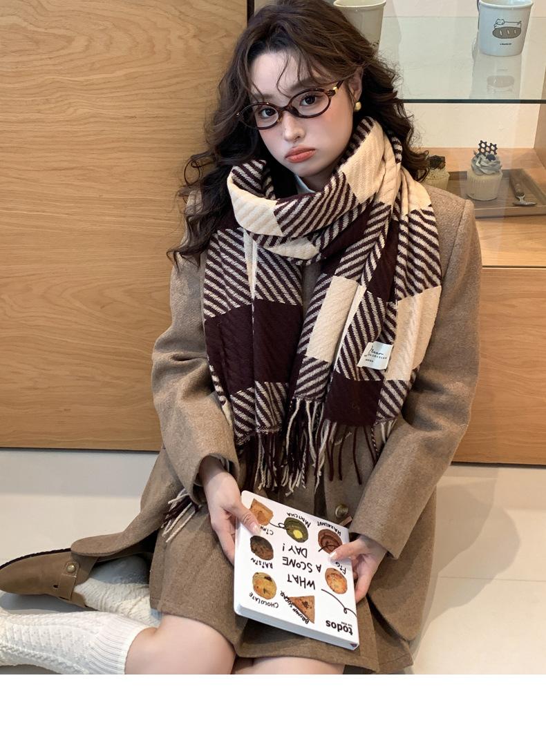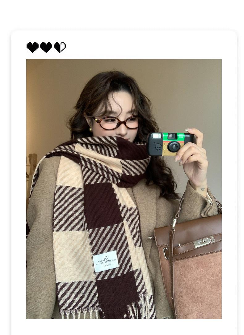 Bufanda Rayada de Contraste de Color Maillard Nueva 2025 Chal de Invierno para Mujer Más Fácil de Combinar Bufanda de Pareja a Cuadros