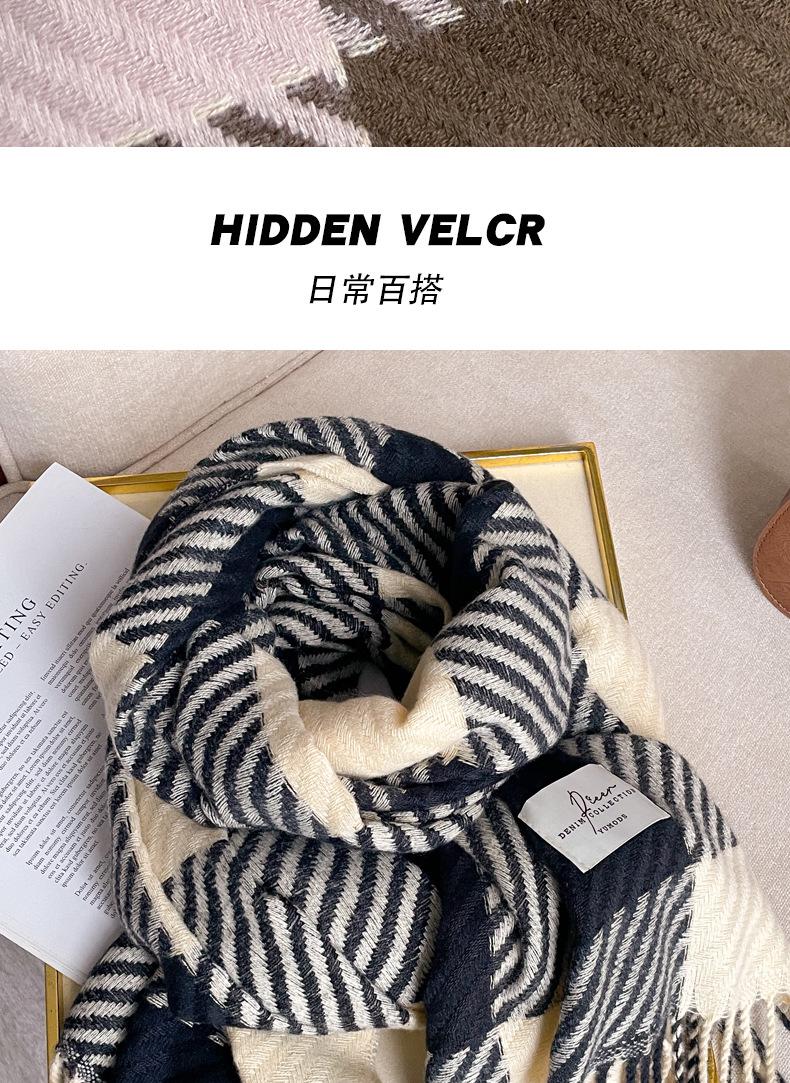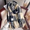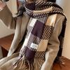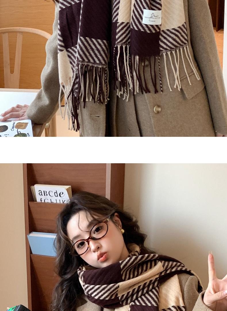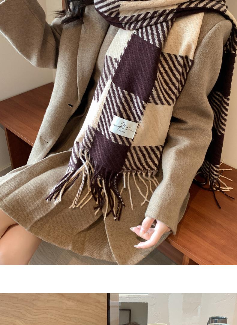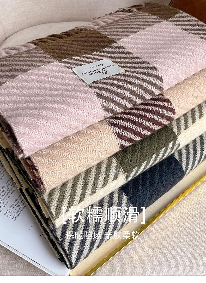 Bufanda Rayada de Contraste de Color Maillard Nueva 2025 Chal de Invierno para Mujer Más Fácil de Combinar Bufanda de Pareja a Cuadros