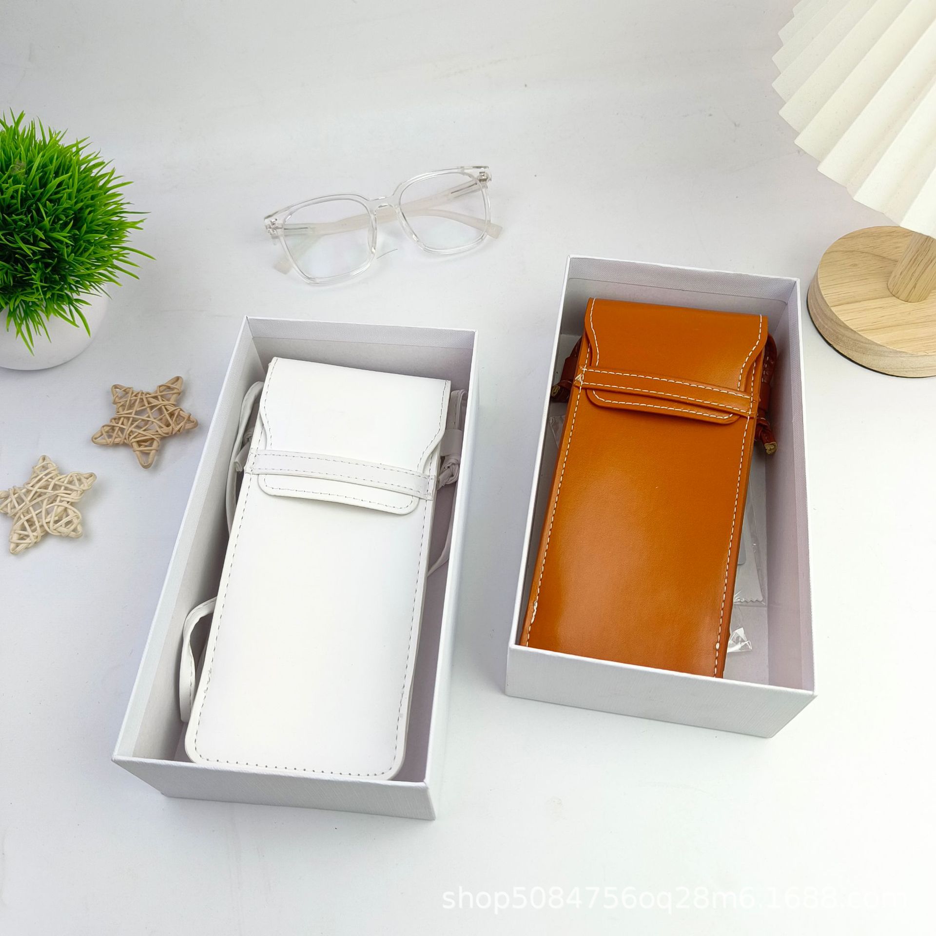 Venta al por mayor de caja de cuero para gafas, suave, portátil, sencilla, con logotipo imprimible