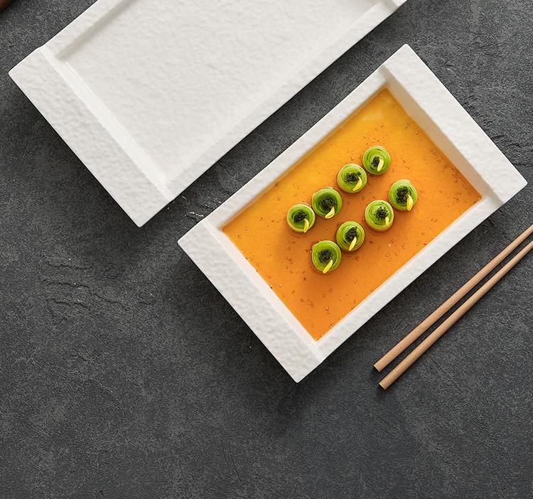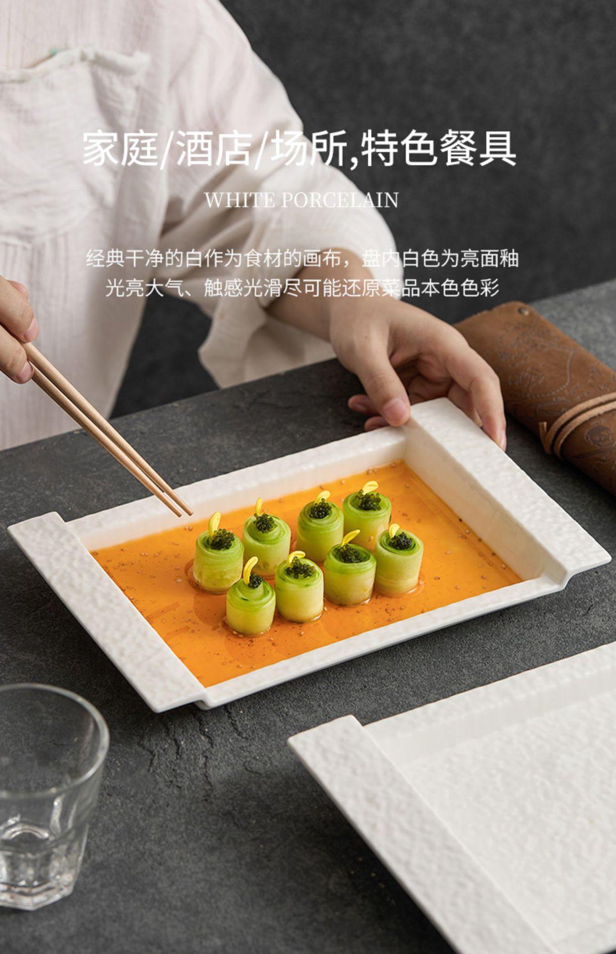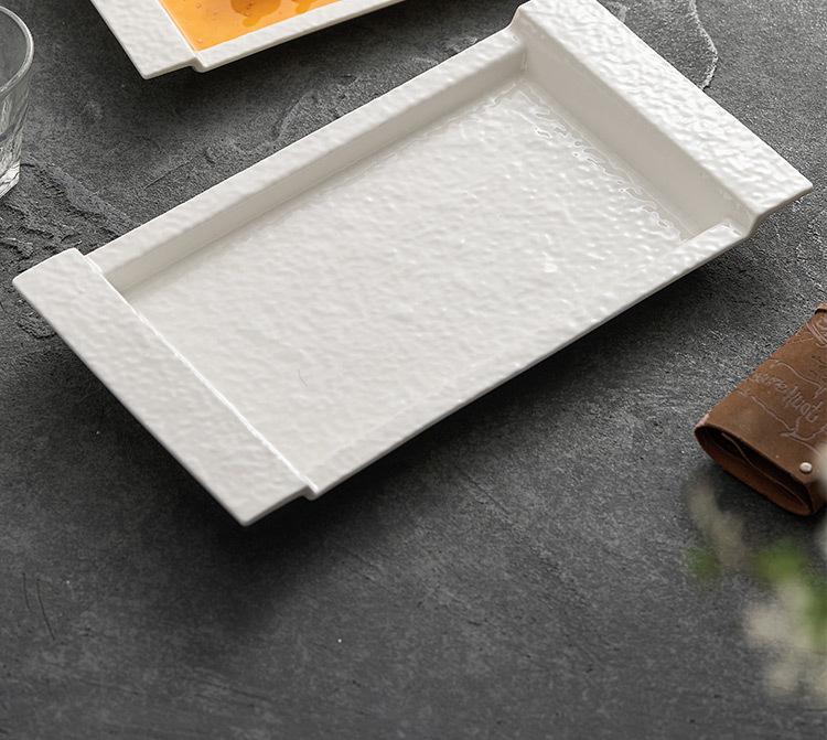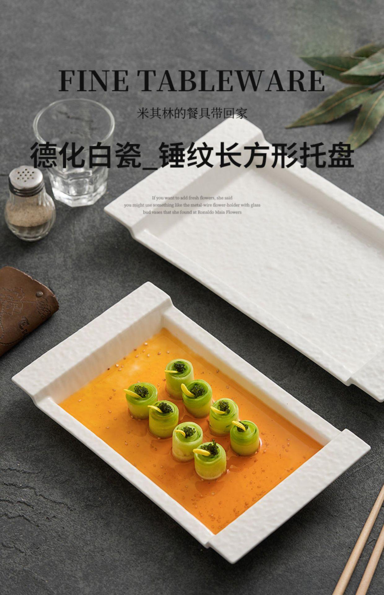 Plato de Cerámica Dehua Plato para el Hogar Plato para Servir Creativo Plato Destacado Plato Dulcero Vajilla con Sentido Avanzado Bandeja Rectangular