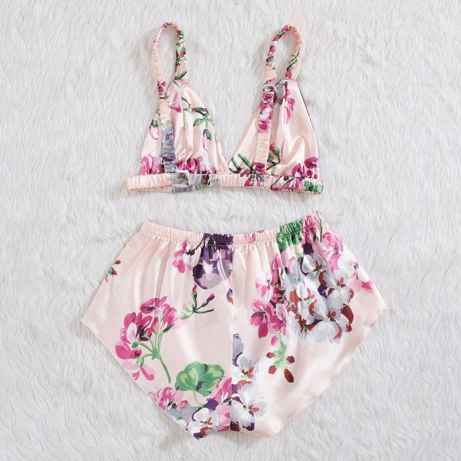 Nuevo Estilo de Comercio Exterior Conjunto de Dos Piezas de Ropa de Descanso Sexy Negra Europea y Americana, Conjunto de Pijama Moderno y Cómodo con Adorno de Encaje