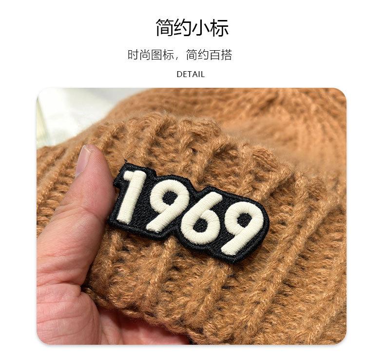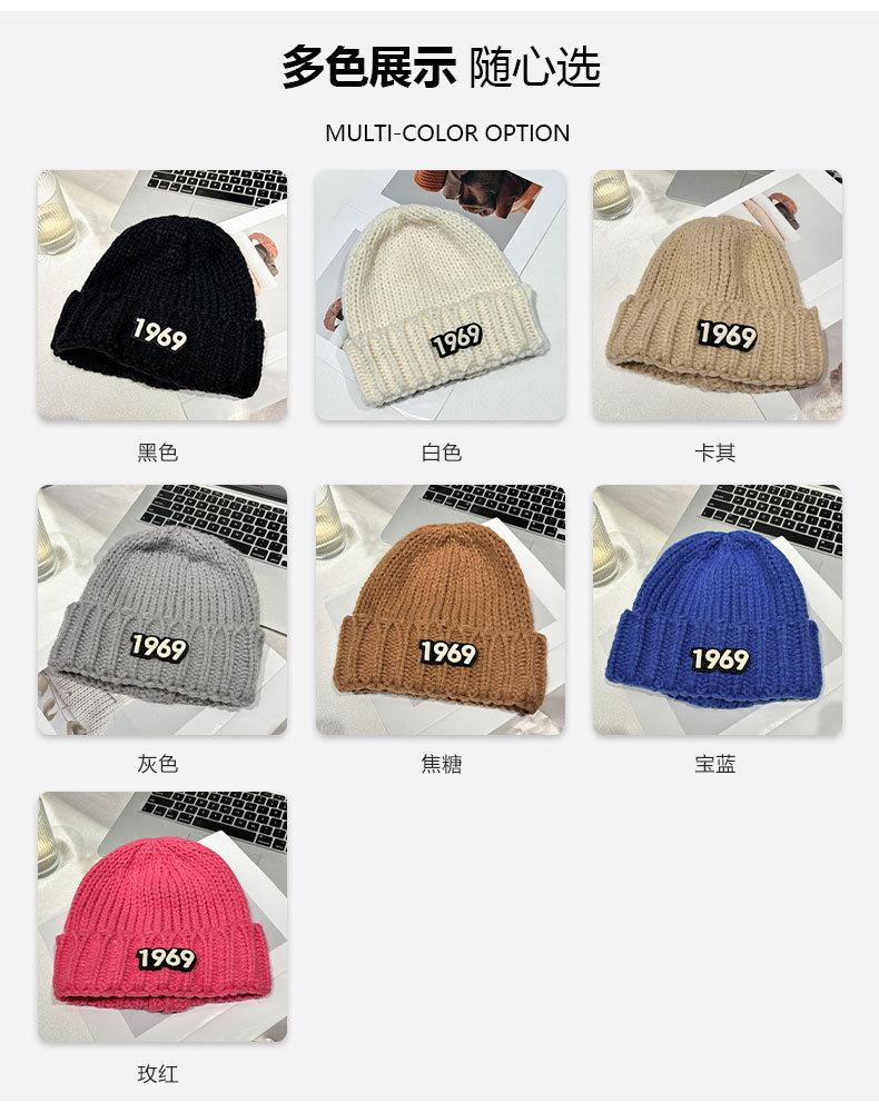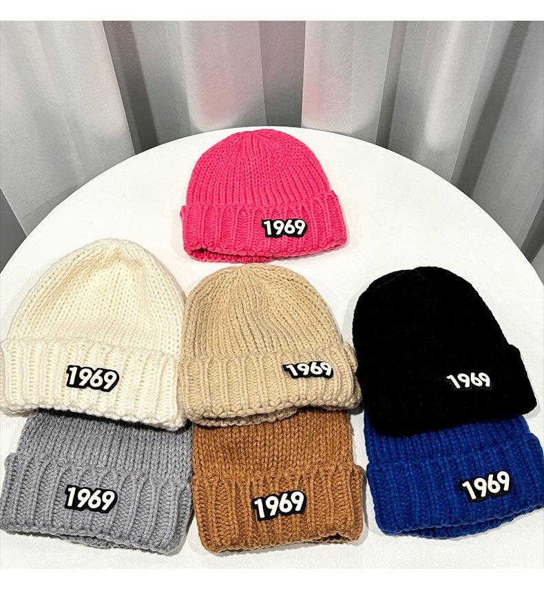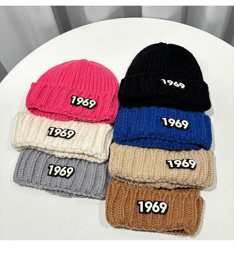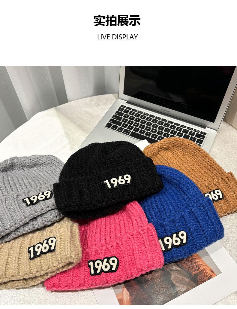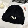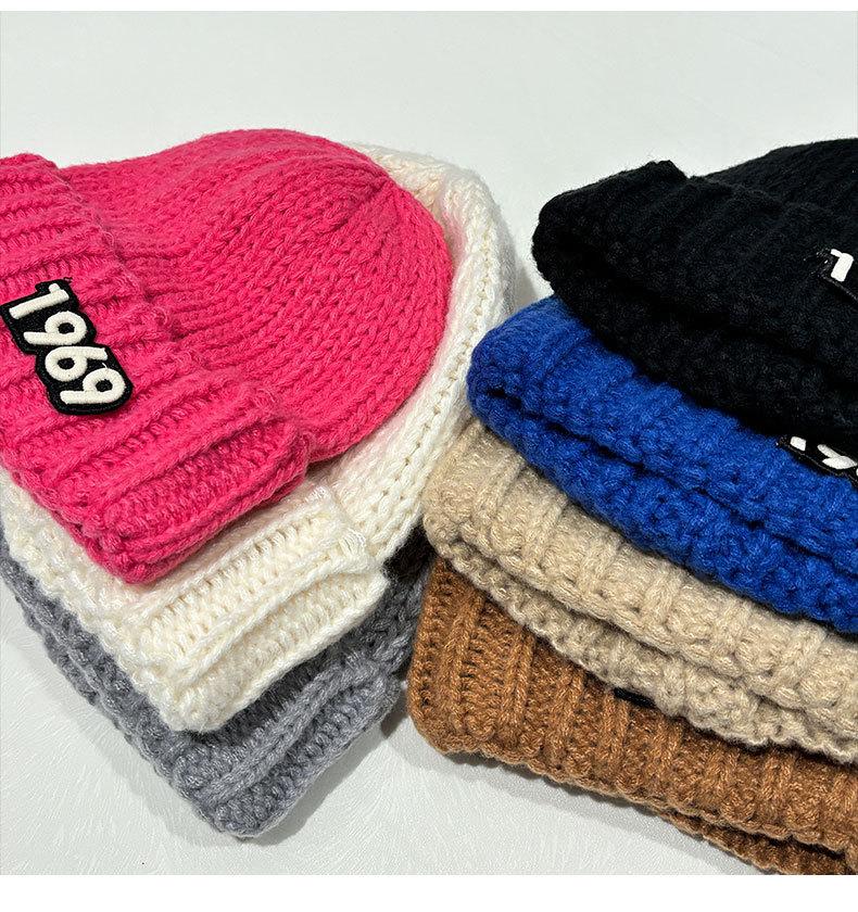 Gorro de Lana Nuevo Digital 1969 Raya Gruesa Combinable Grueso Cálido Gorro Pulóver Invierno A Prueba de Frío Protección para las Orejas Gorro de Punto
