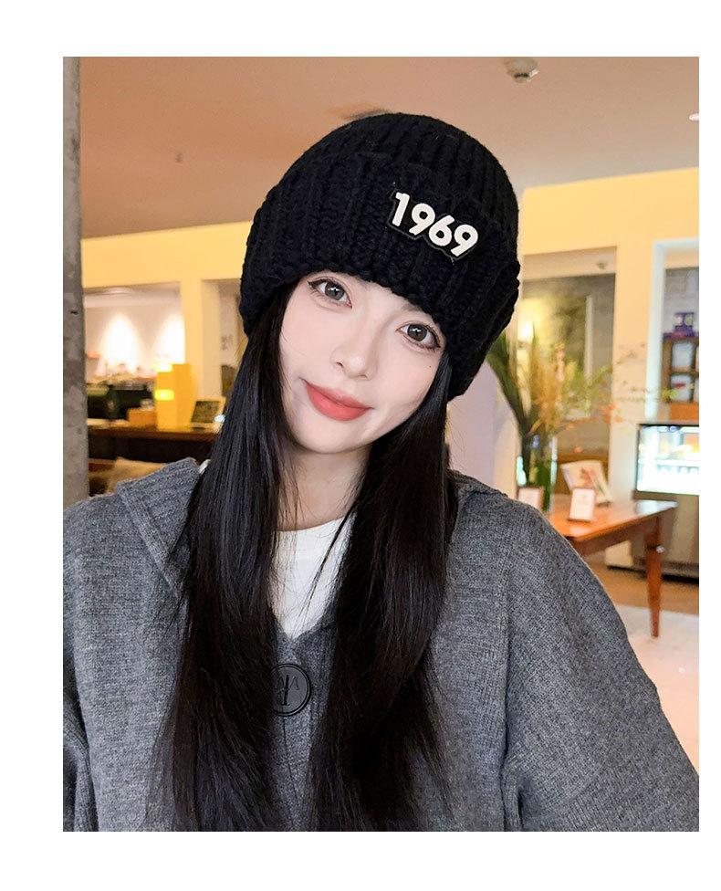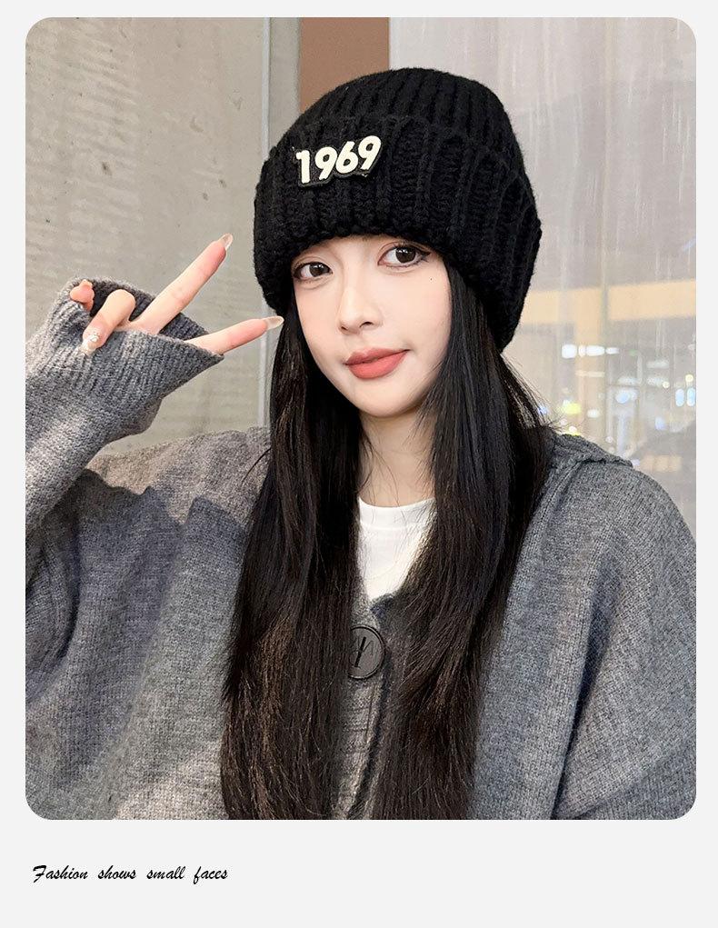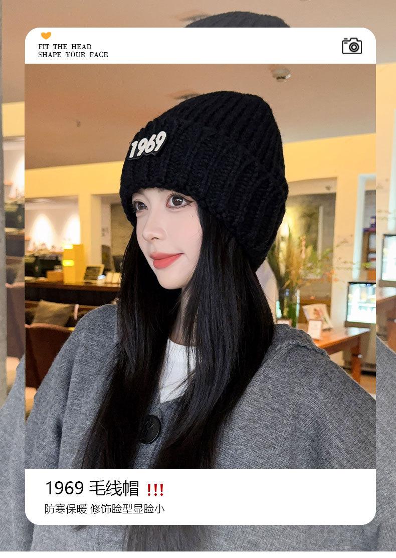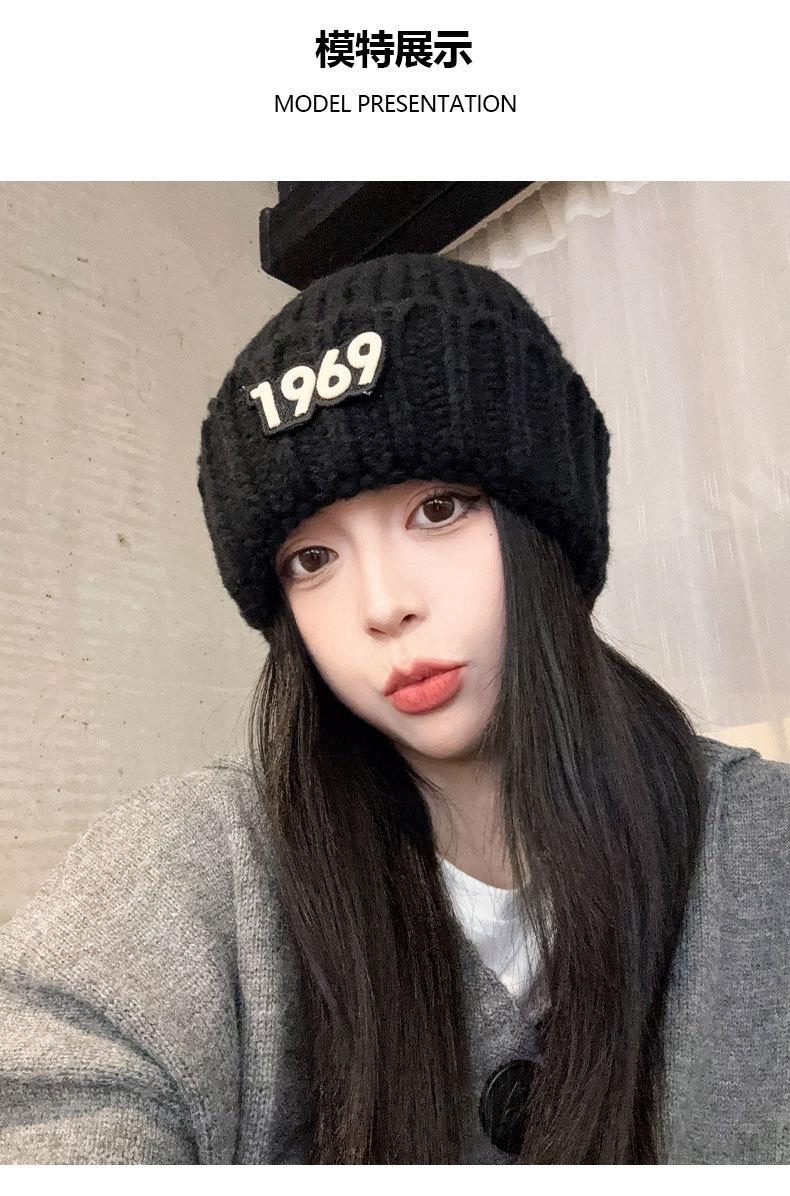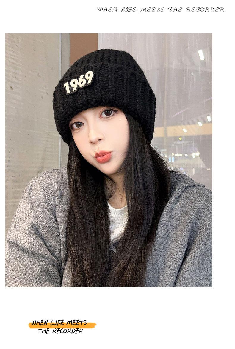 Gorro de Lana Nuevo Digital 1969 Raya Gruesa Combinable Grueso Cálido Gorro Pulóver Invierno A Prueba de Frío Protección para las Orejas Gorro de Punto