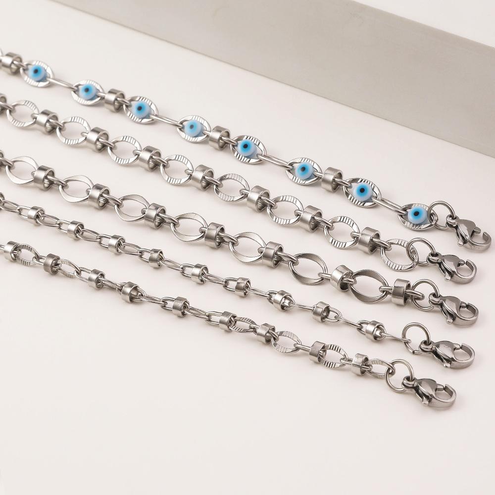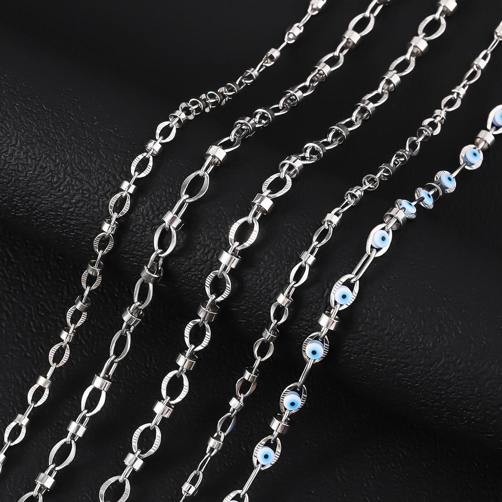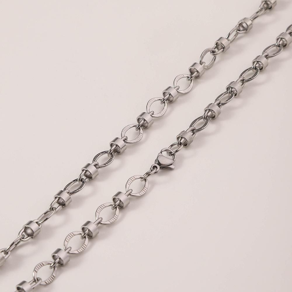 Collar de cadena en forma de O de acero inoxidable con costuras en relieve, nueva moda transfronteriza, cadena de lana combinable, pulsera sencilla de acero de titanio para mujer