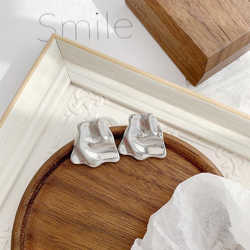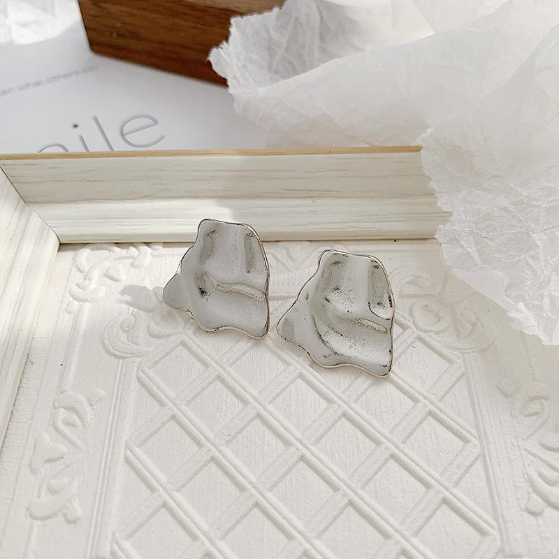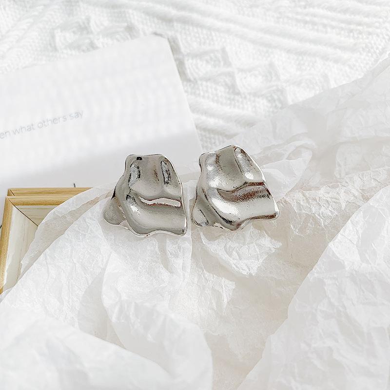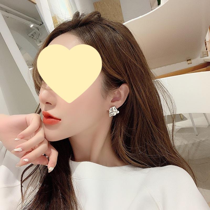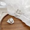 Pendientes de metal plisado de diseño simple de Corea del Sur, pendientes geométricos cuadrados de viento frío, clip de oreja de temperamento versátil para mujer