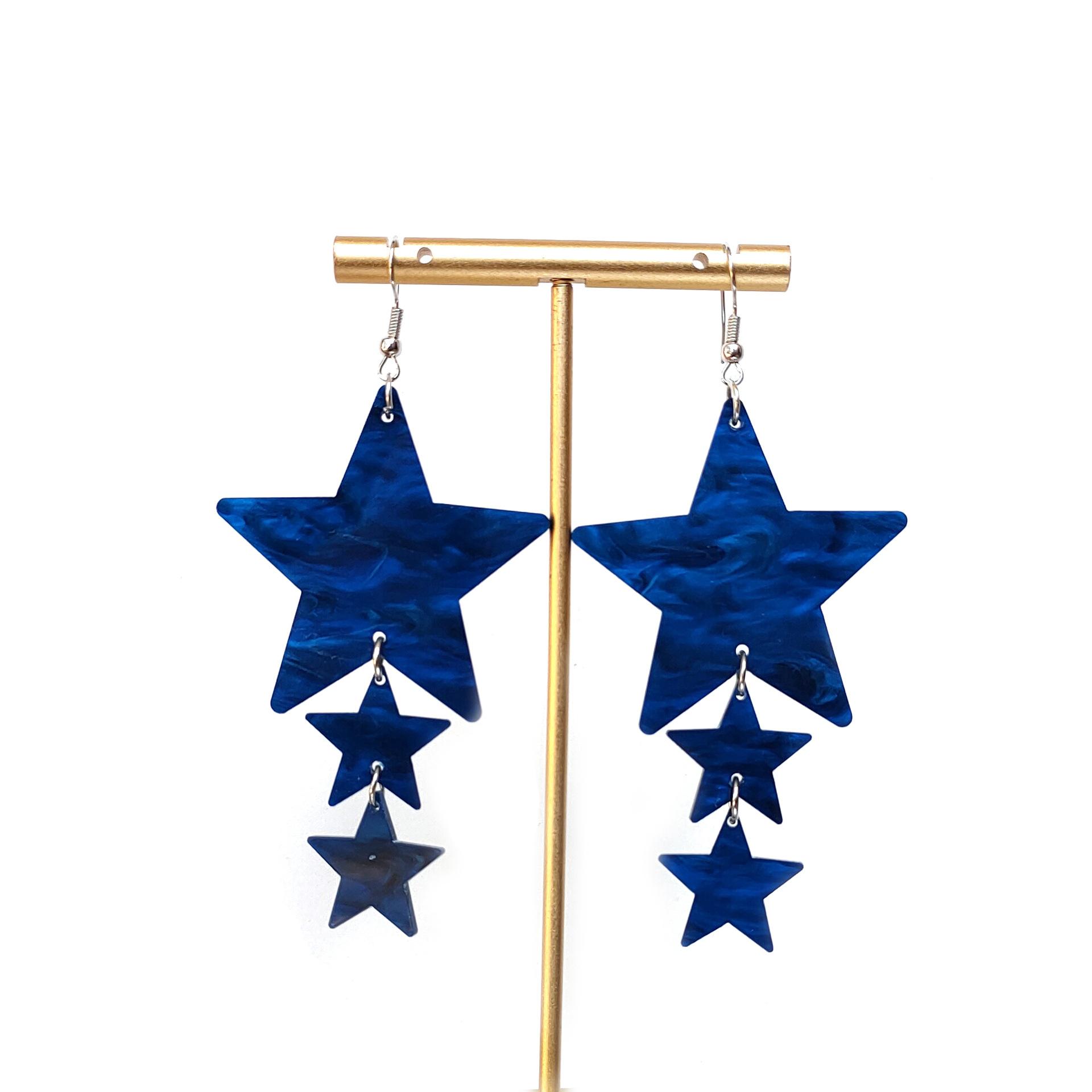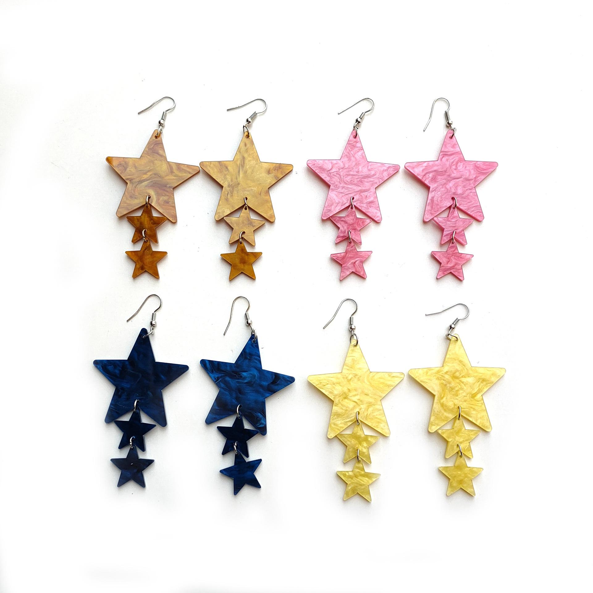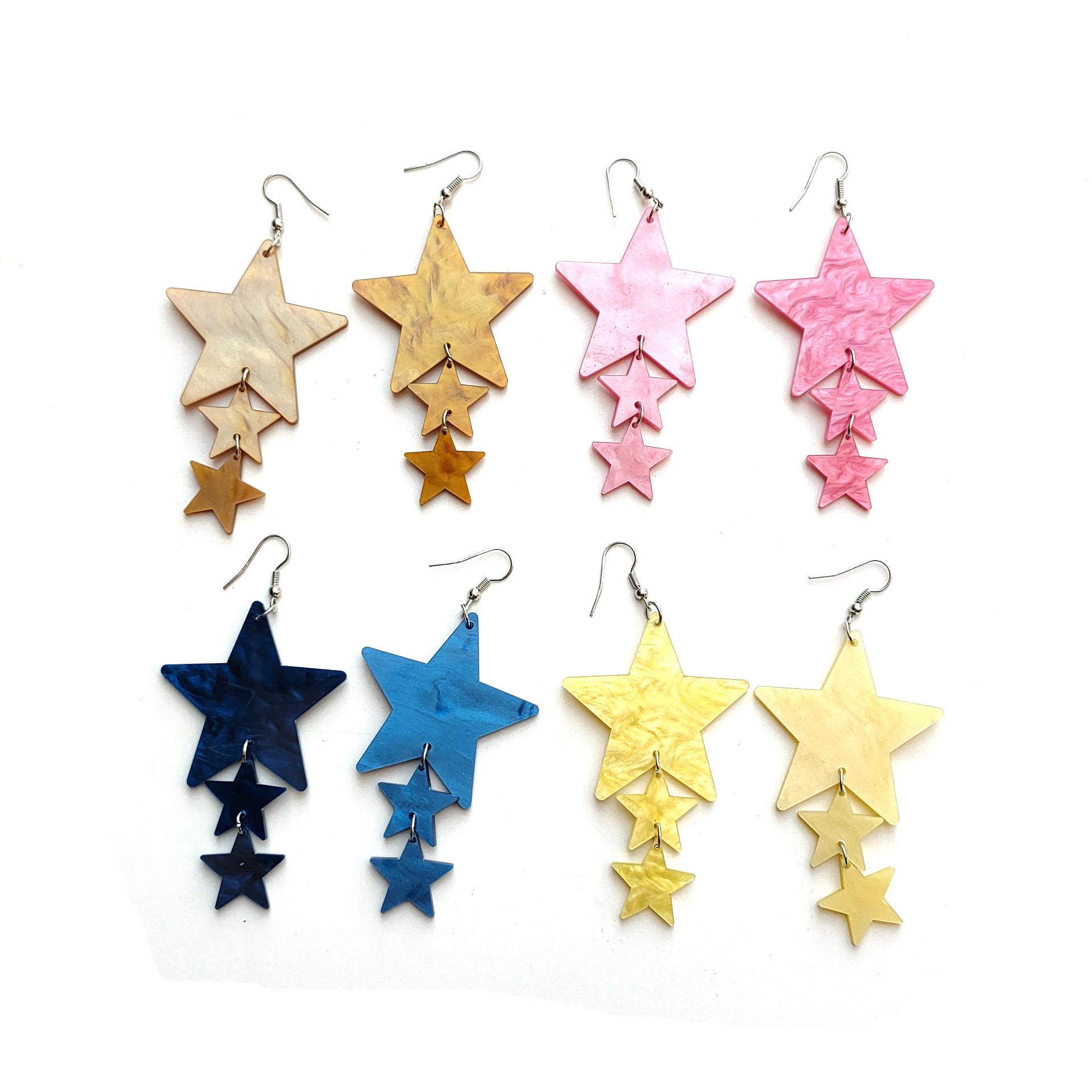 Pendientes geométricos de estrella de cinco puntas con diseño de agua acrílica multicolor personalizados de Amazon para mujer.