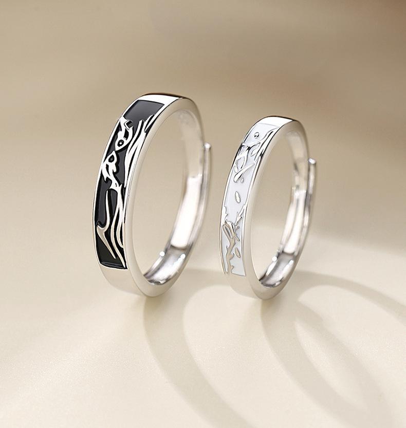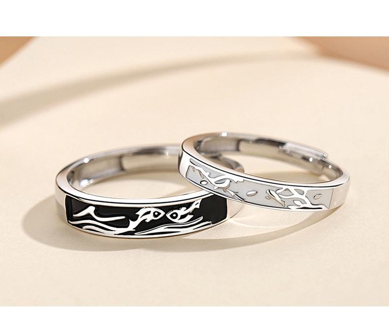 Anillo de pareja de pájaro y pez, anillo abierto con personalidad de moda de nicho para hombres y mujeres, regalo de anillo de pareja de epoxi