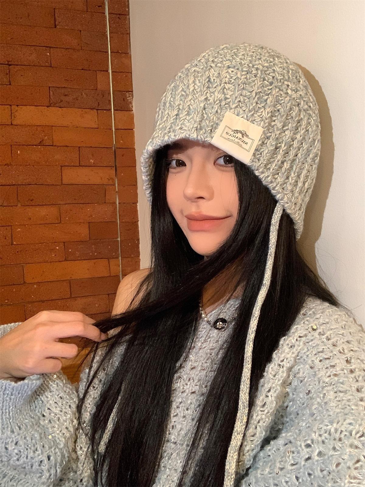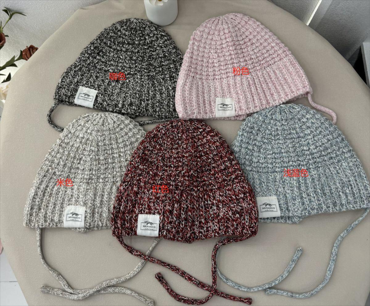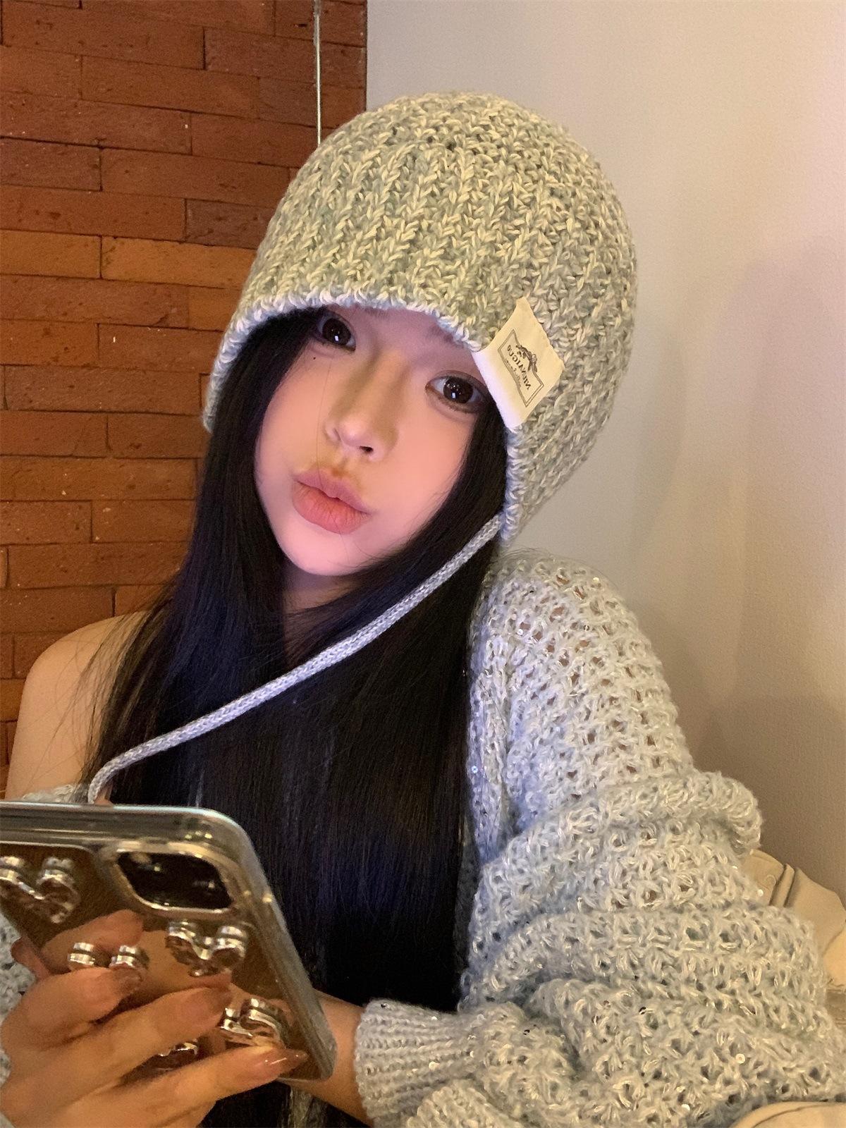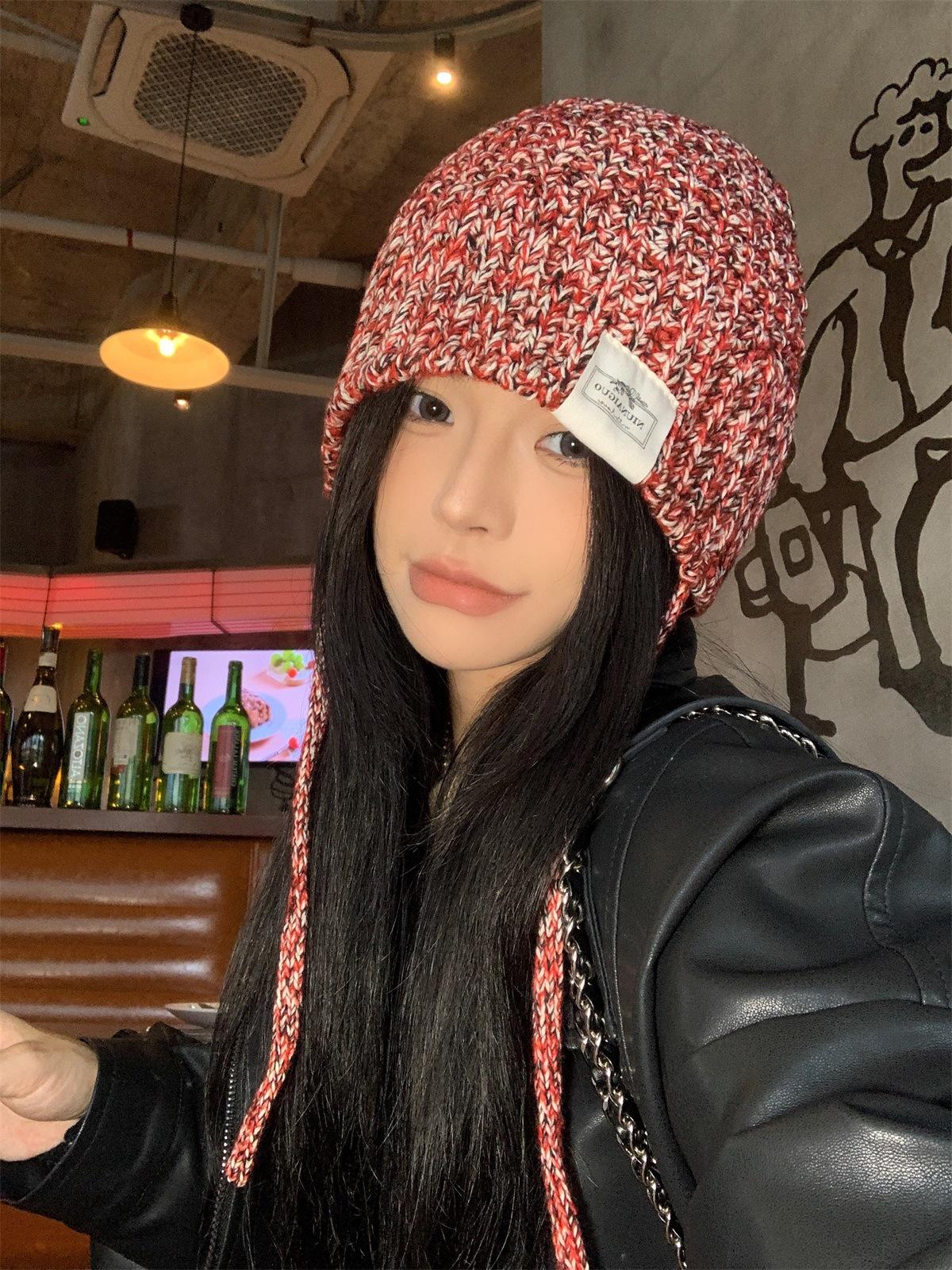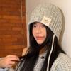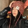 Corea del Sur Ins Color de Contraste Vintage Sombrero de Pescador de Punto para Mujer Otoño e Invierno Sombrero de Lana con Cordones Cálido Protector de Orejas Sombrero para la Cabeza