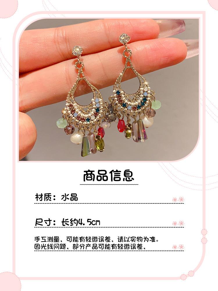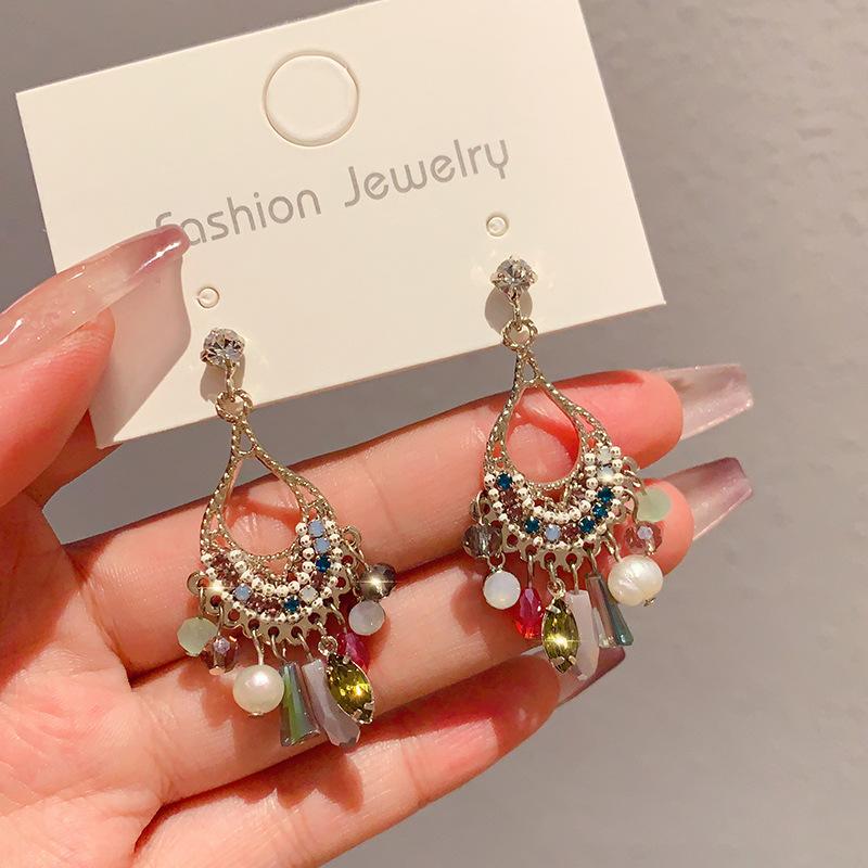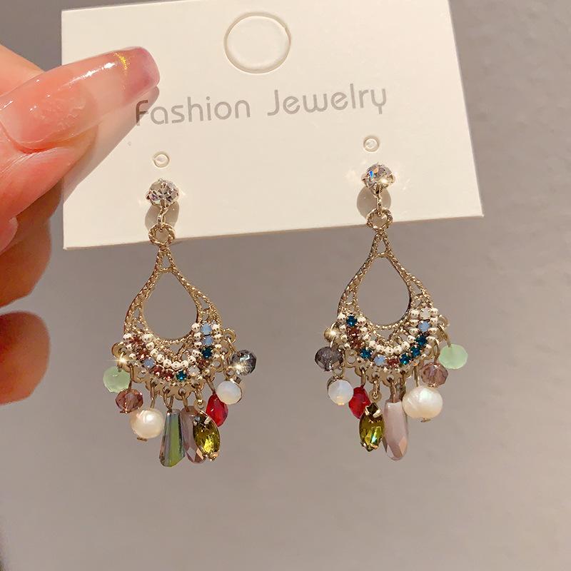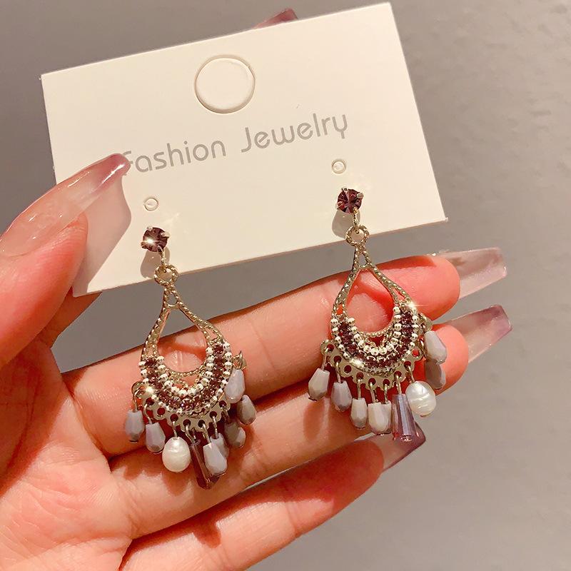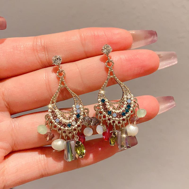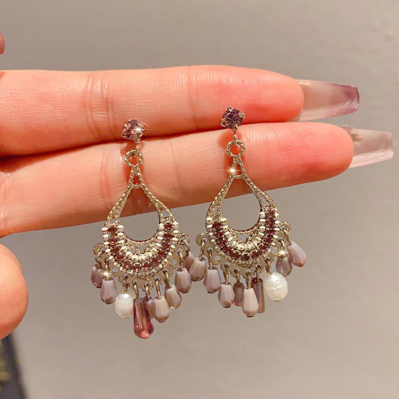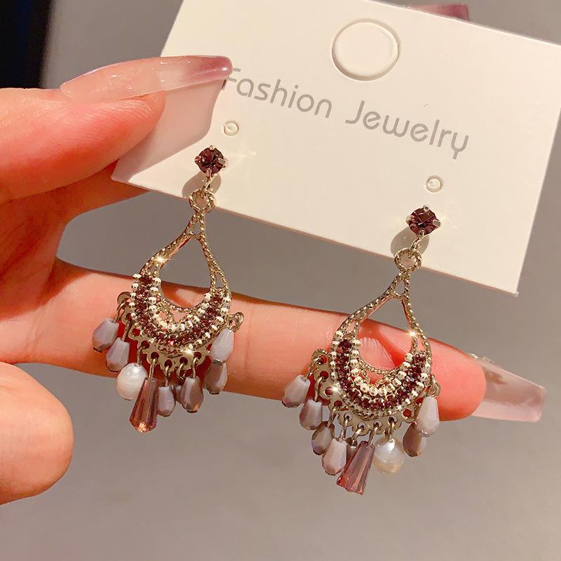 Pendientes de estilo vintage con nicho y borlas de cristal con un toque de amor. Pendientes elegantes y combinables a la moda para mujer.