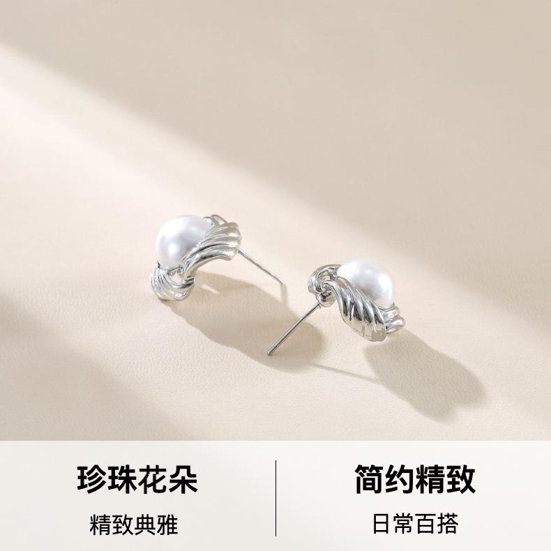 Aretes de Perlas para Mujer, Aretes de Diseño Nicho de Flores, Aretes de Lujo Ligero