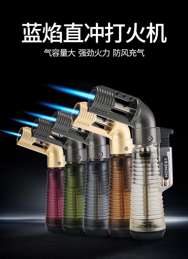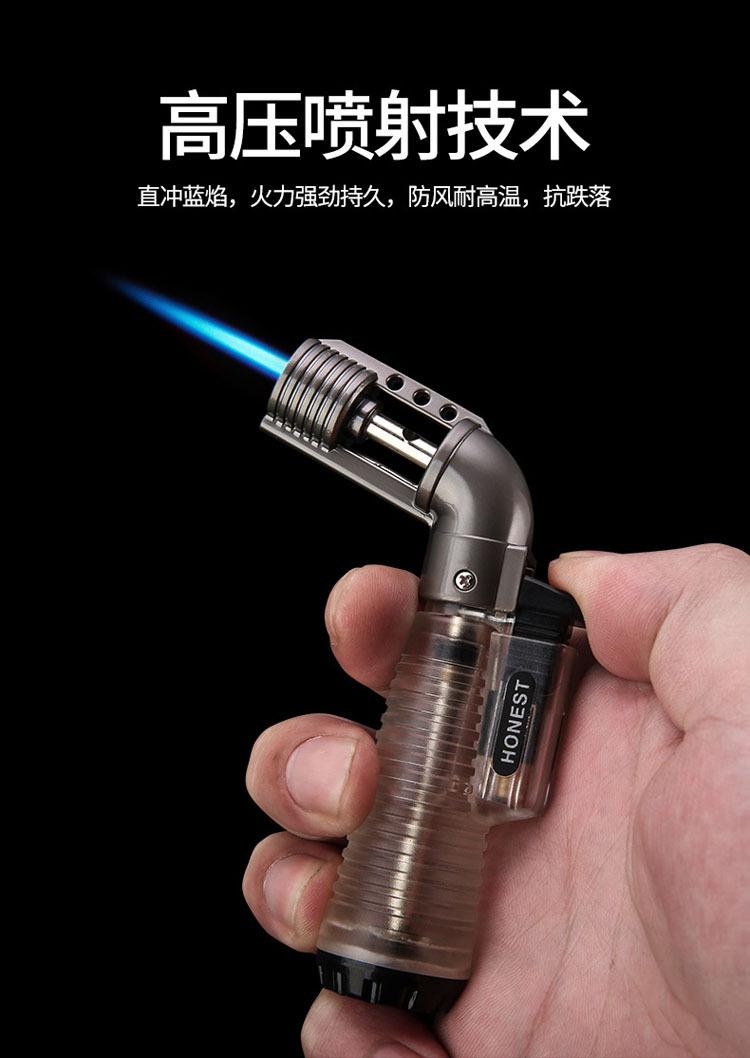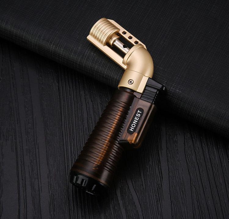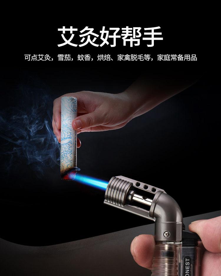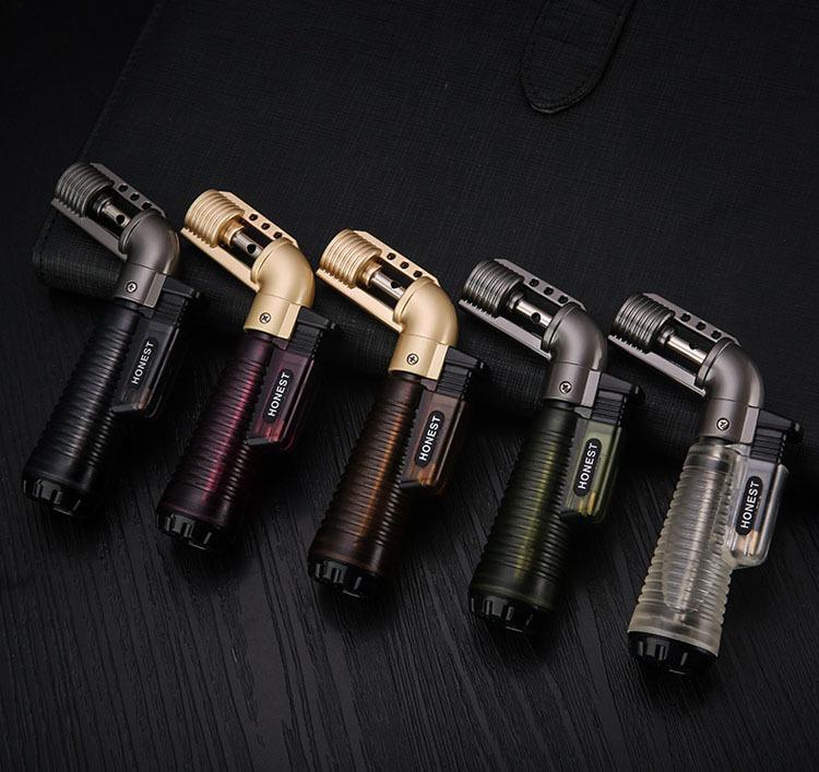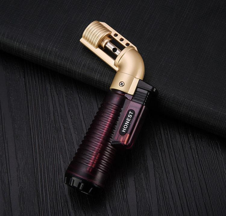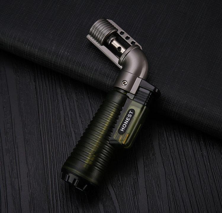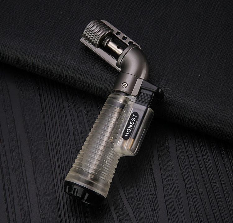 Baicheng nuevo codo perforación directa encendedor inflable pipa transparente mini soplete soporte para cigarrillo encendedor de sándalo para puros