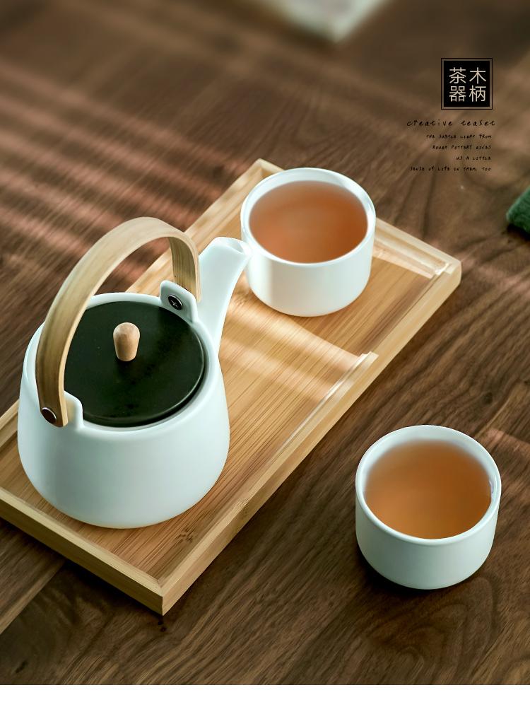 XYT Tetera de Cerámica de Una Olla Dos Tazas Hogar Simple Oficina Tetera Taza Bandeja Viento Ins Cola Viaje Té