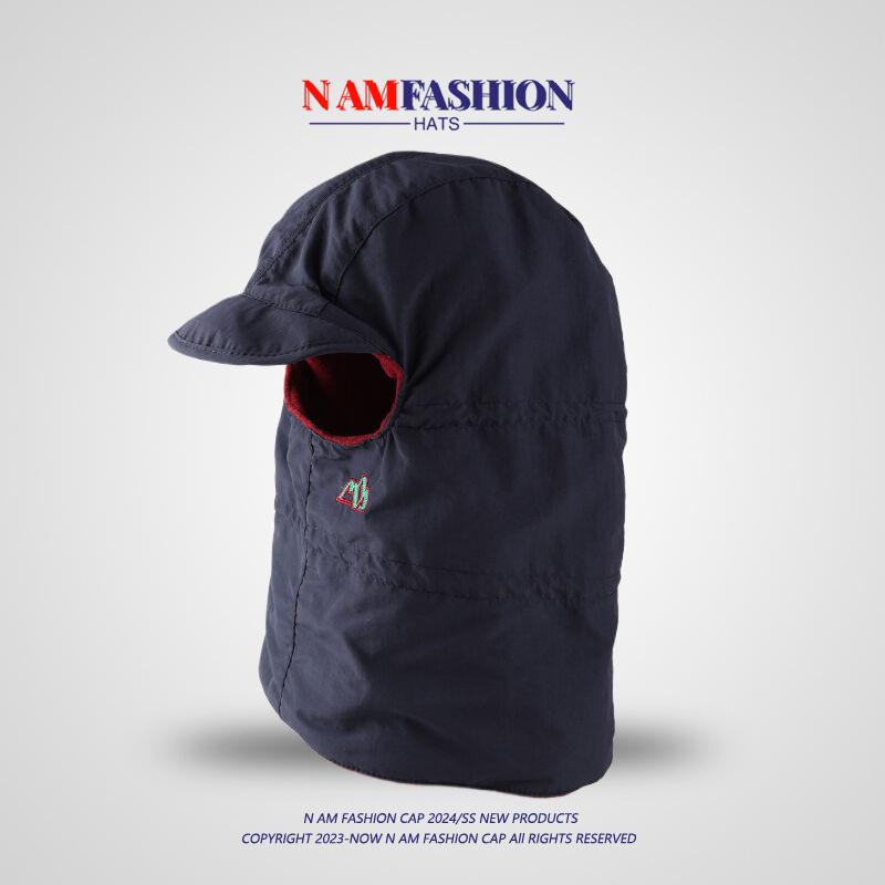 Outdoor functional wind mask neck protector integrated hat navy blue