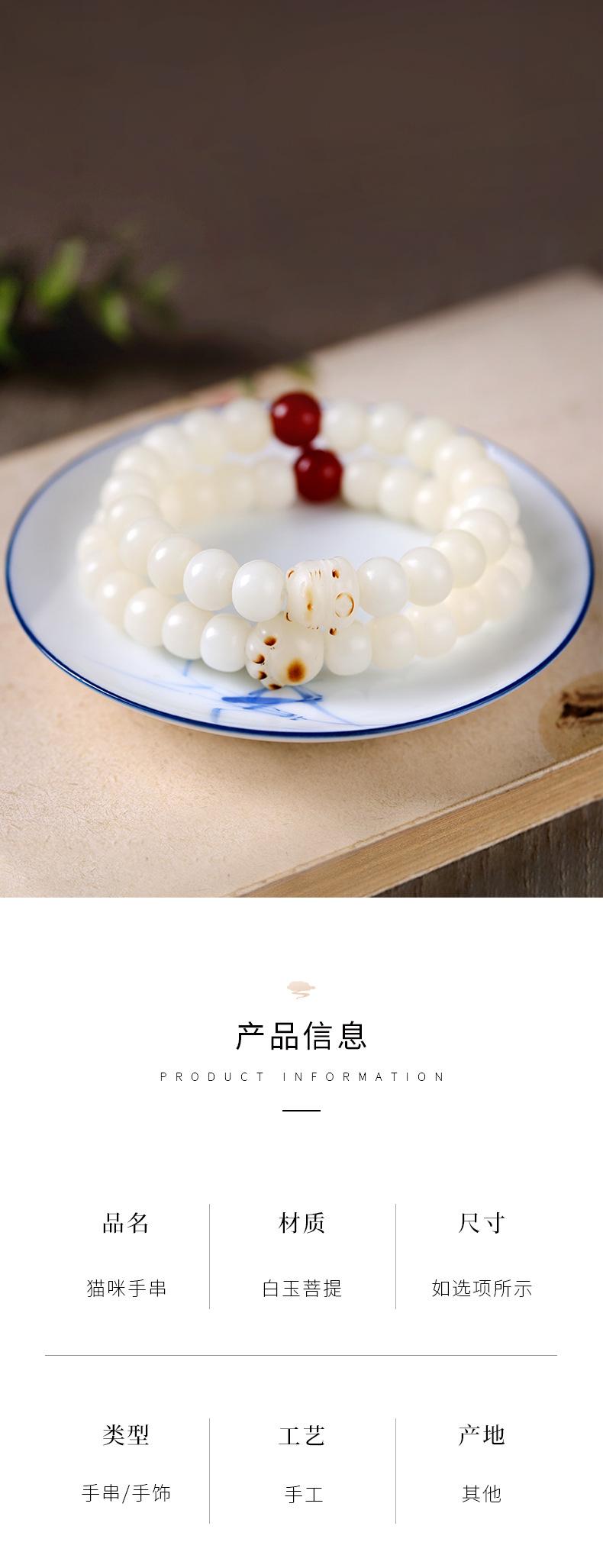Pulsera de Gatito de Carbón de Jade Blanco Bodhi Garra de Gatito Bodhi Bucle Sencillo Pulsera Linda Pulsera Joker Venta al por Mayor
