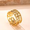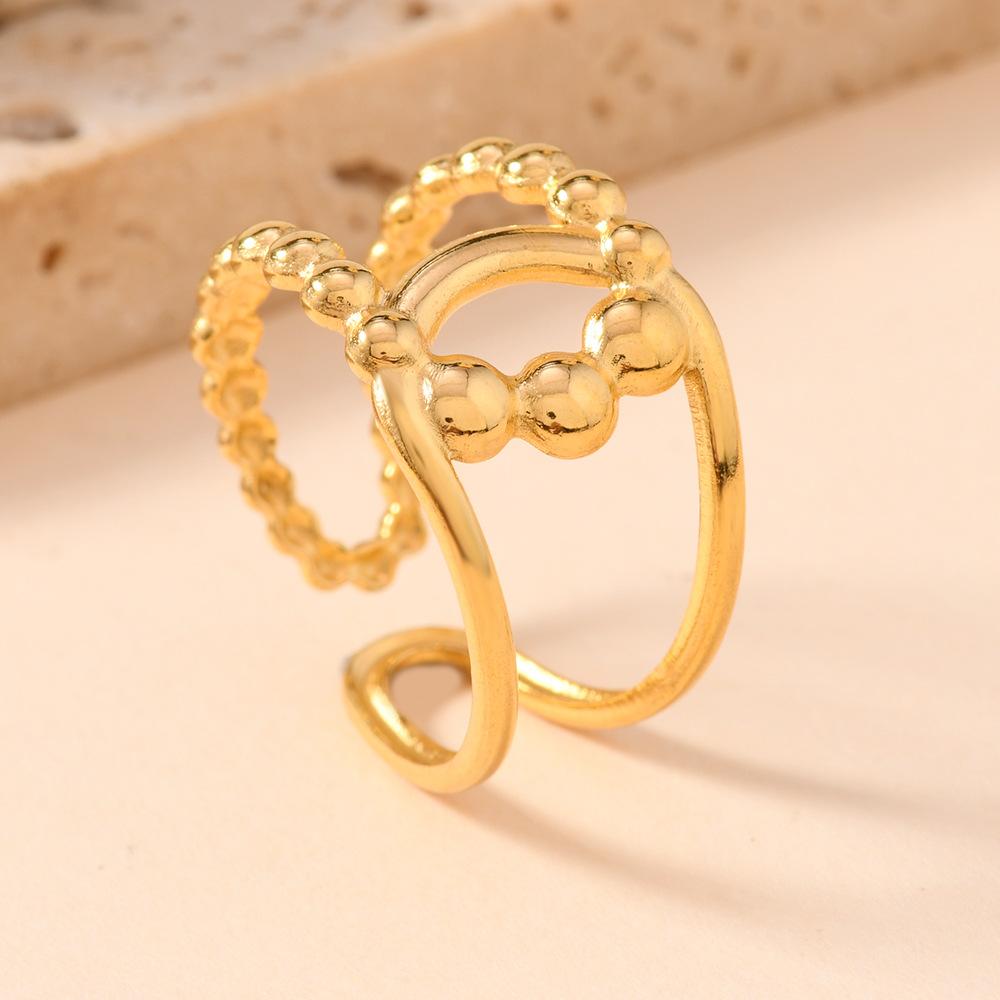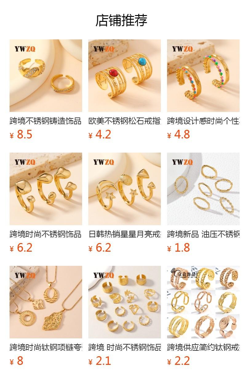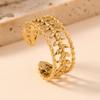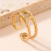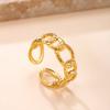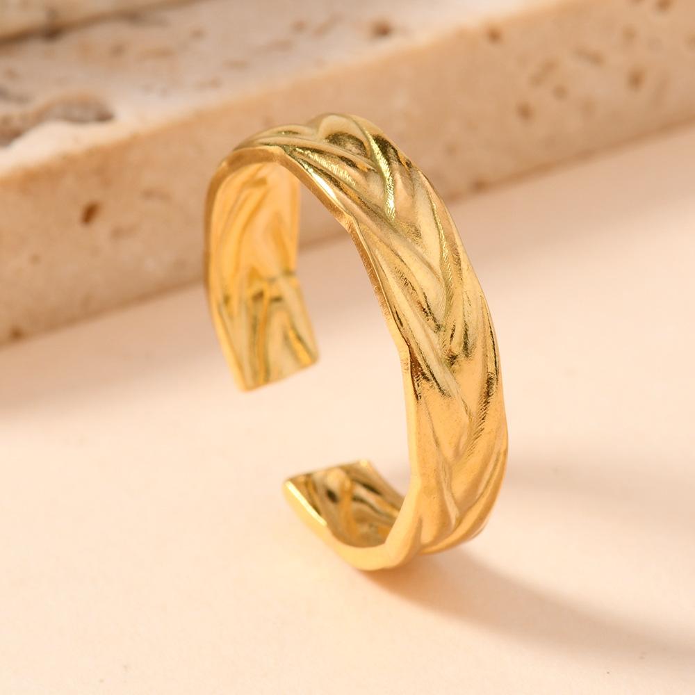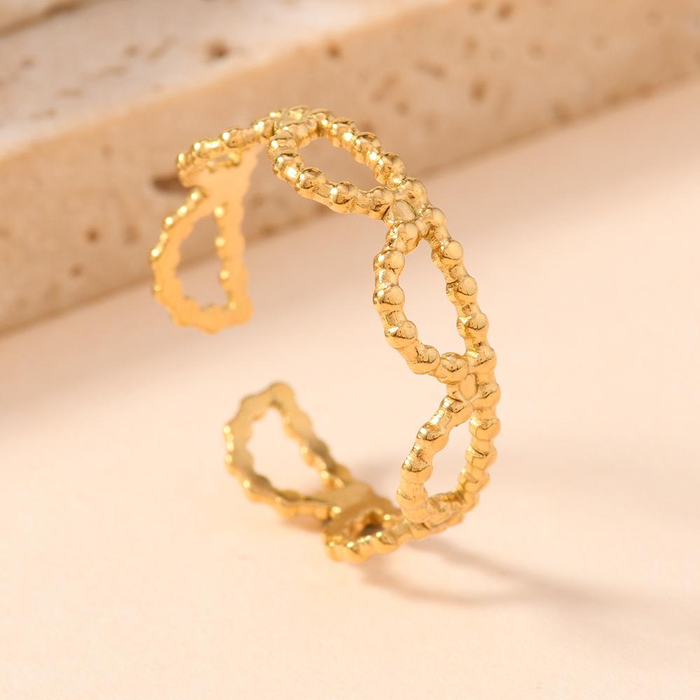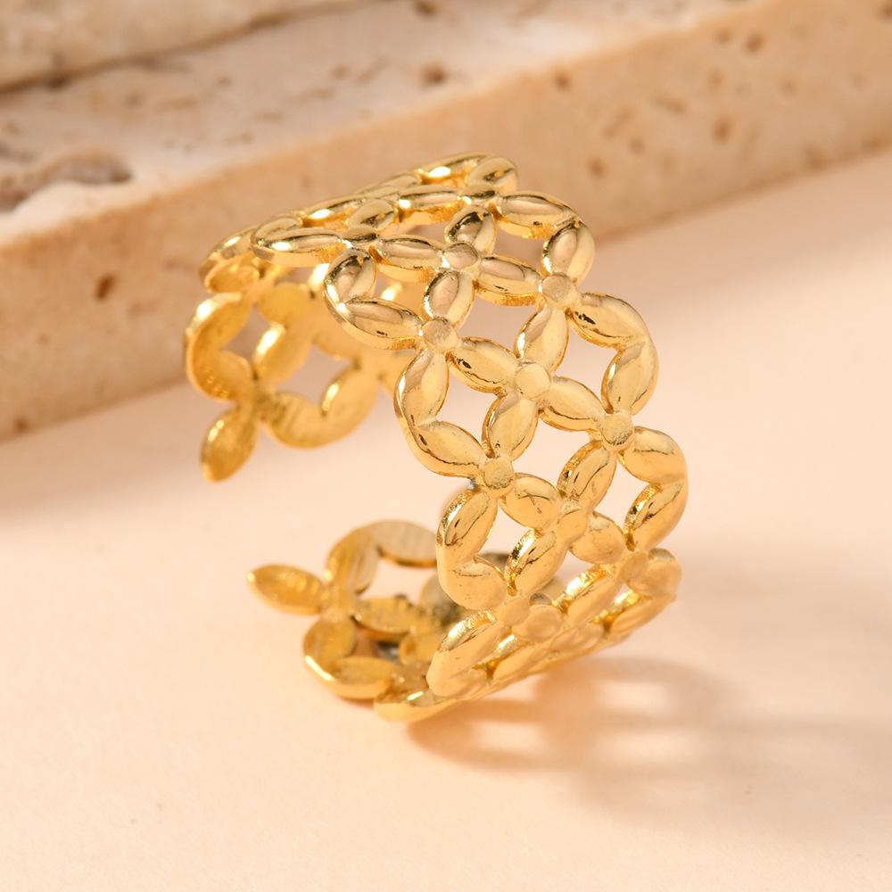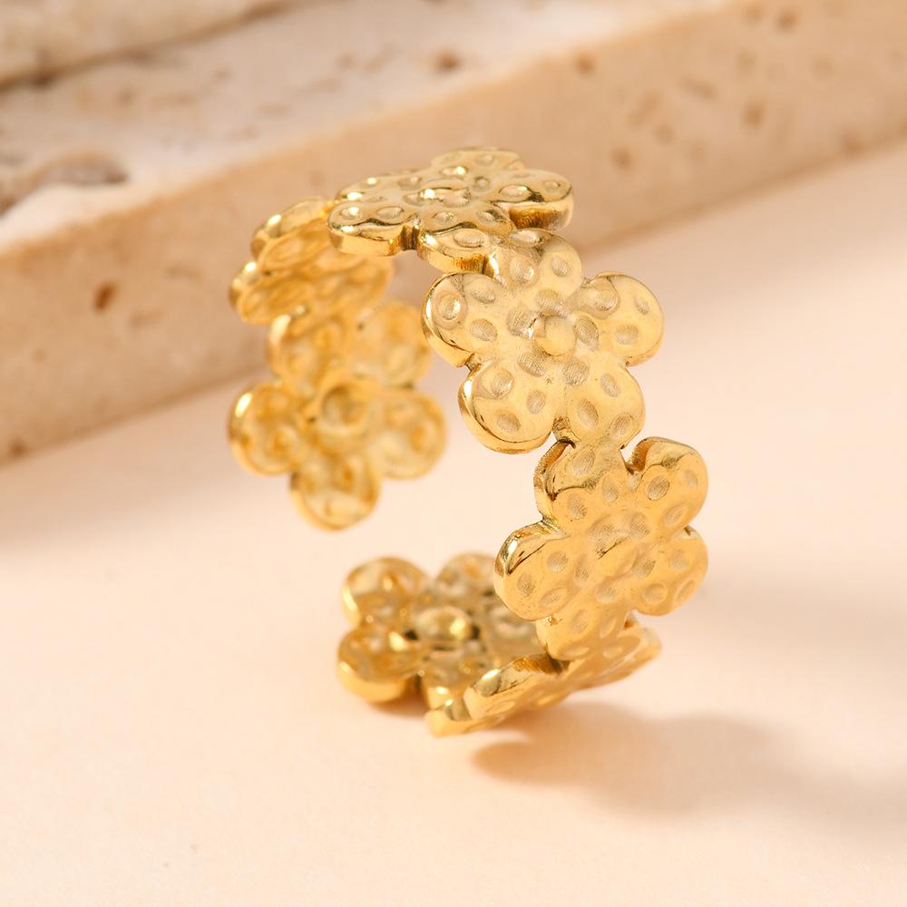 Popular Europeo y Americano Acero Inoxidable Anillo Abierto Moda Simple Presión de Aceite Flor Hoja Anillo Chapado Oro 18K Joyería